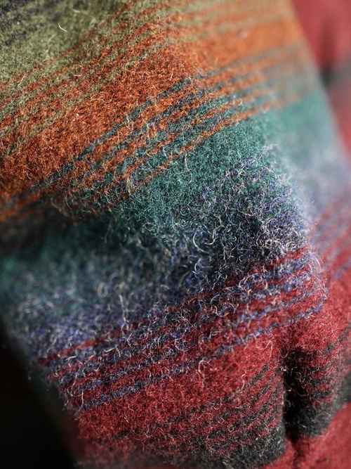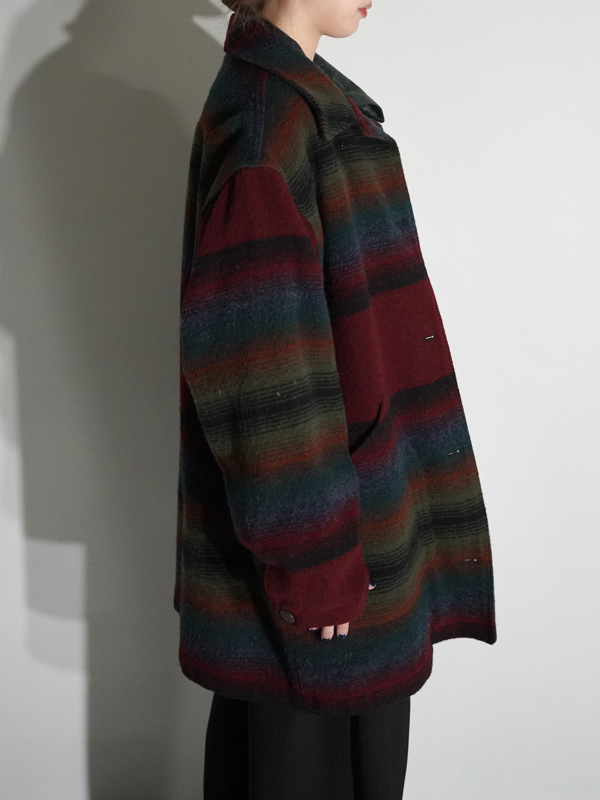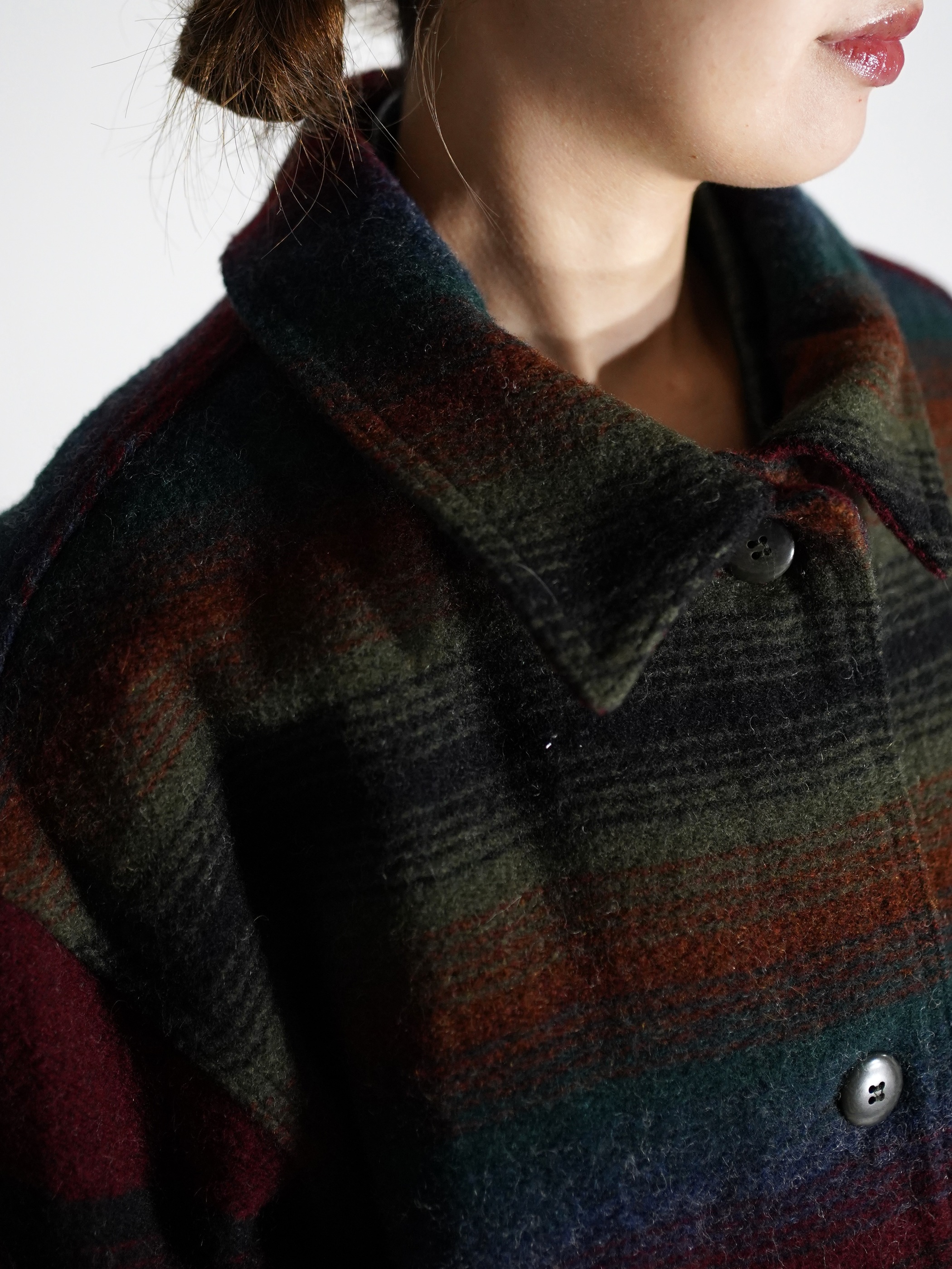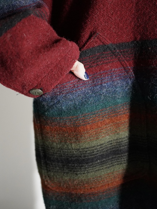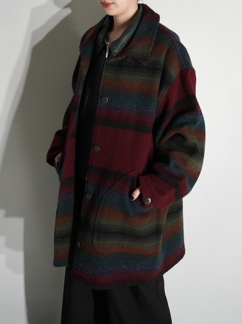 深みのあるマルチカラーで構成されたブランケットファブリックのハーフコート