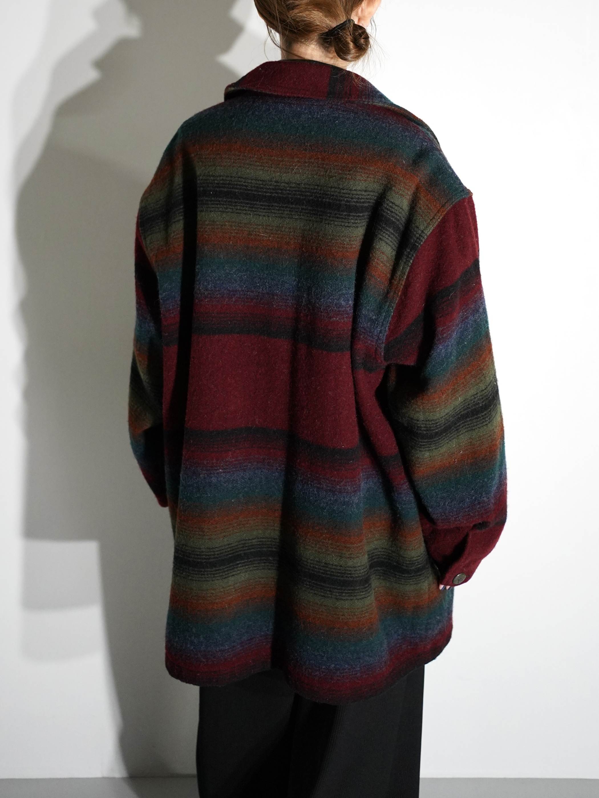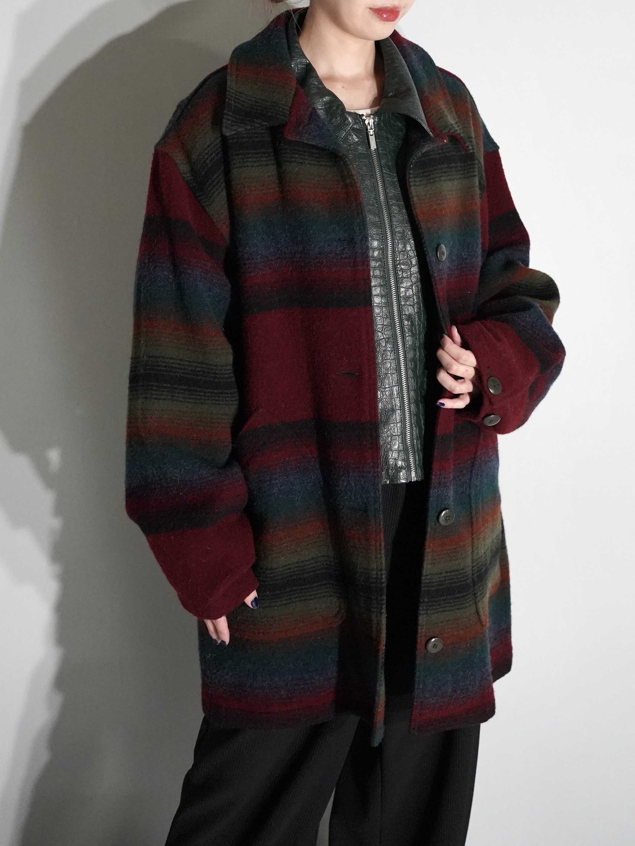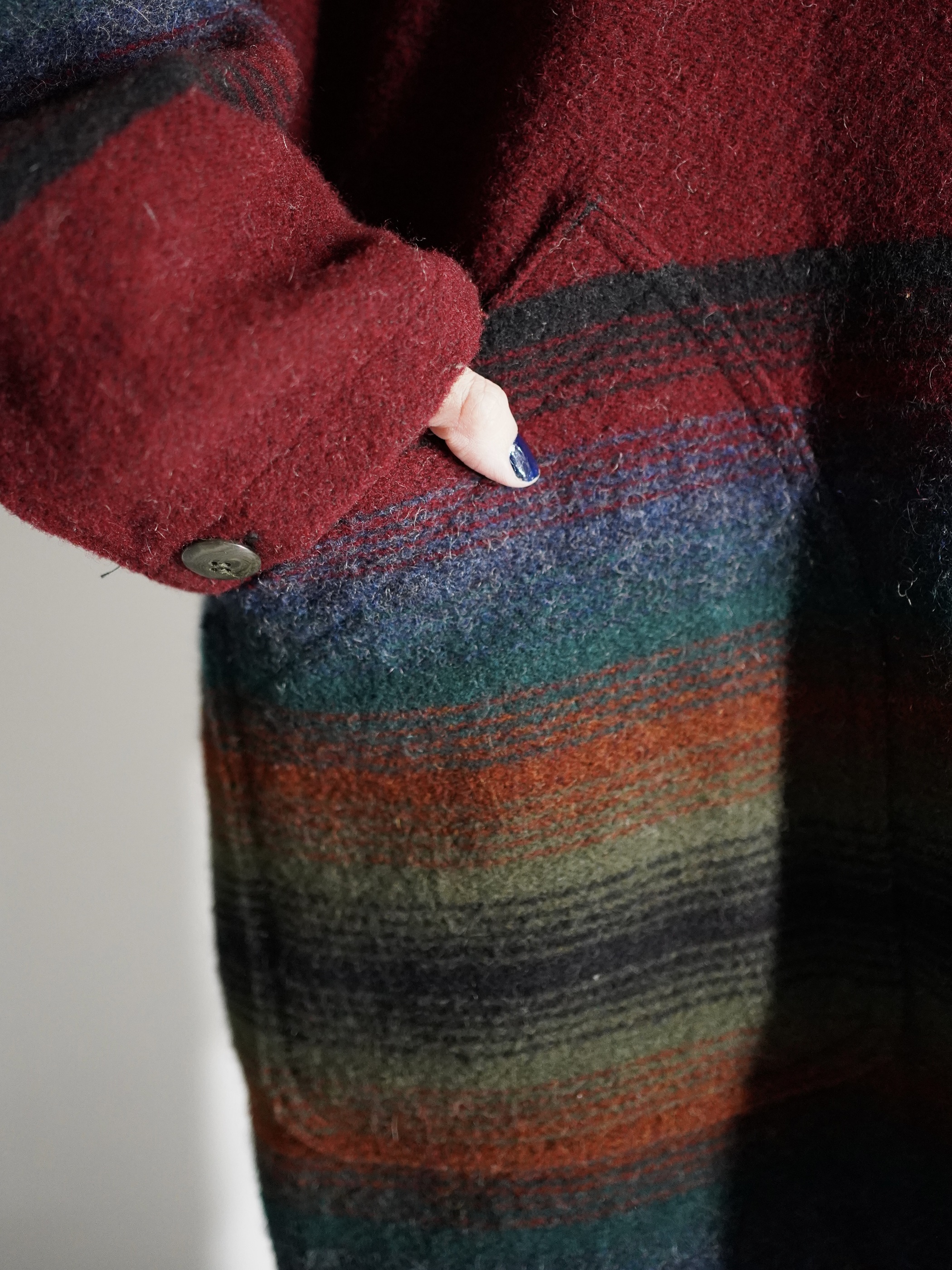 深みのあるマルチカラーで構成されたブランケットファブリックのハーフコート