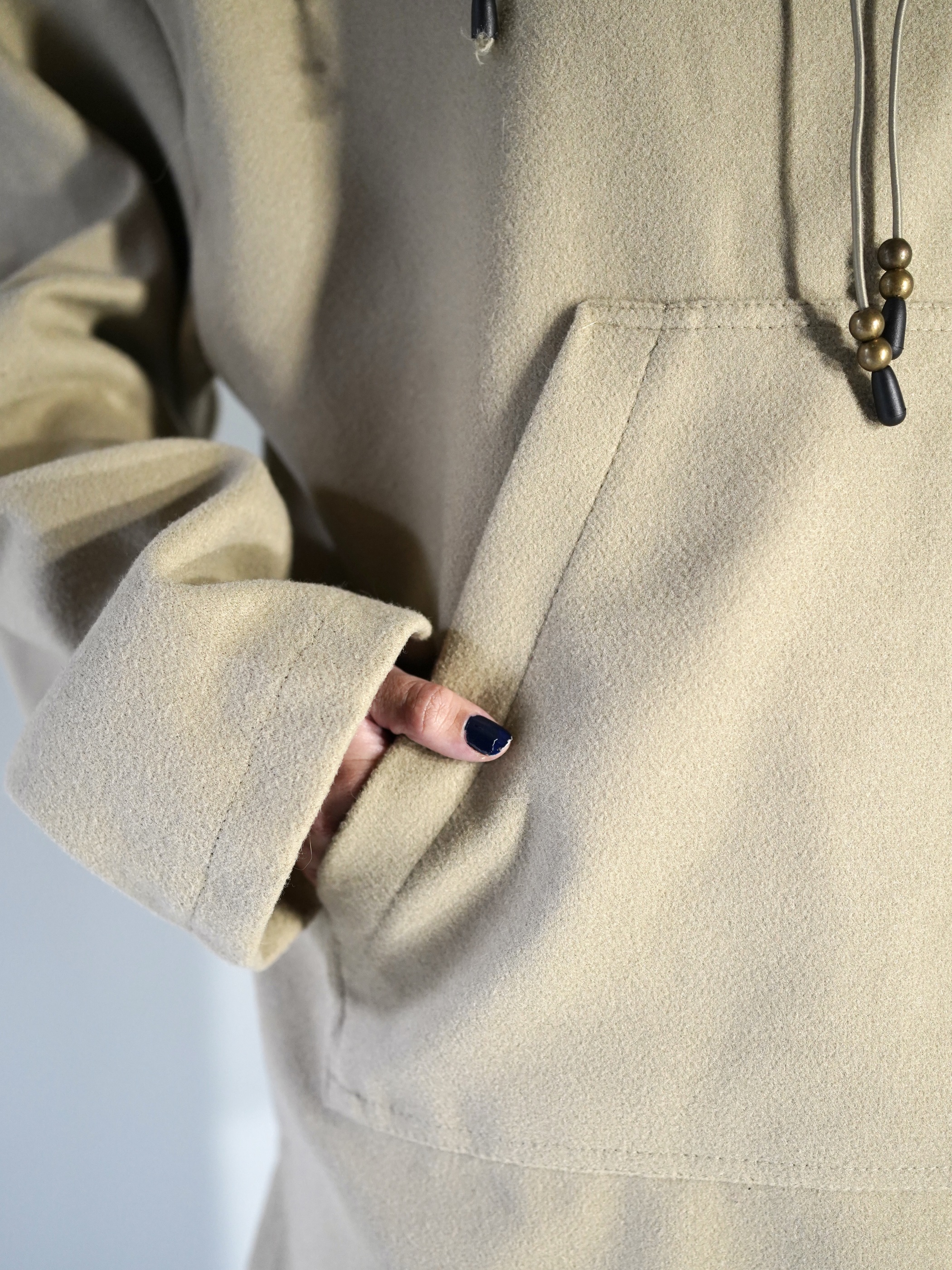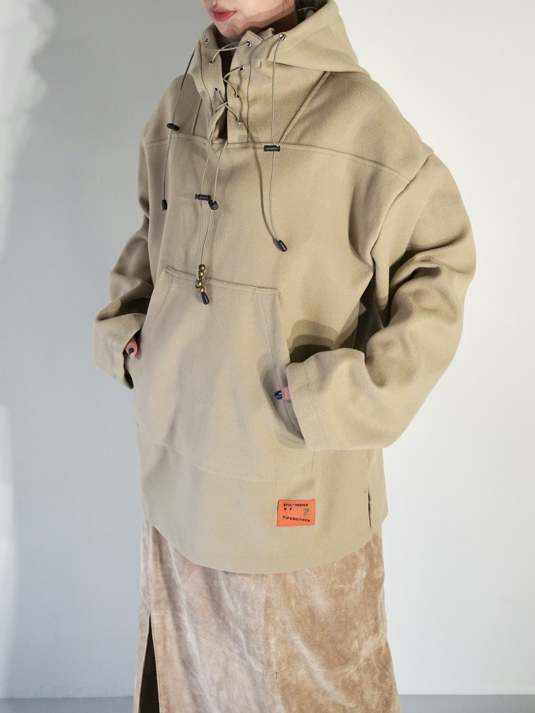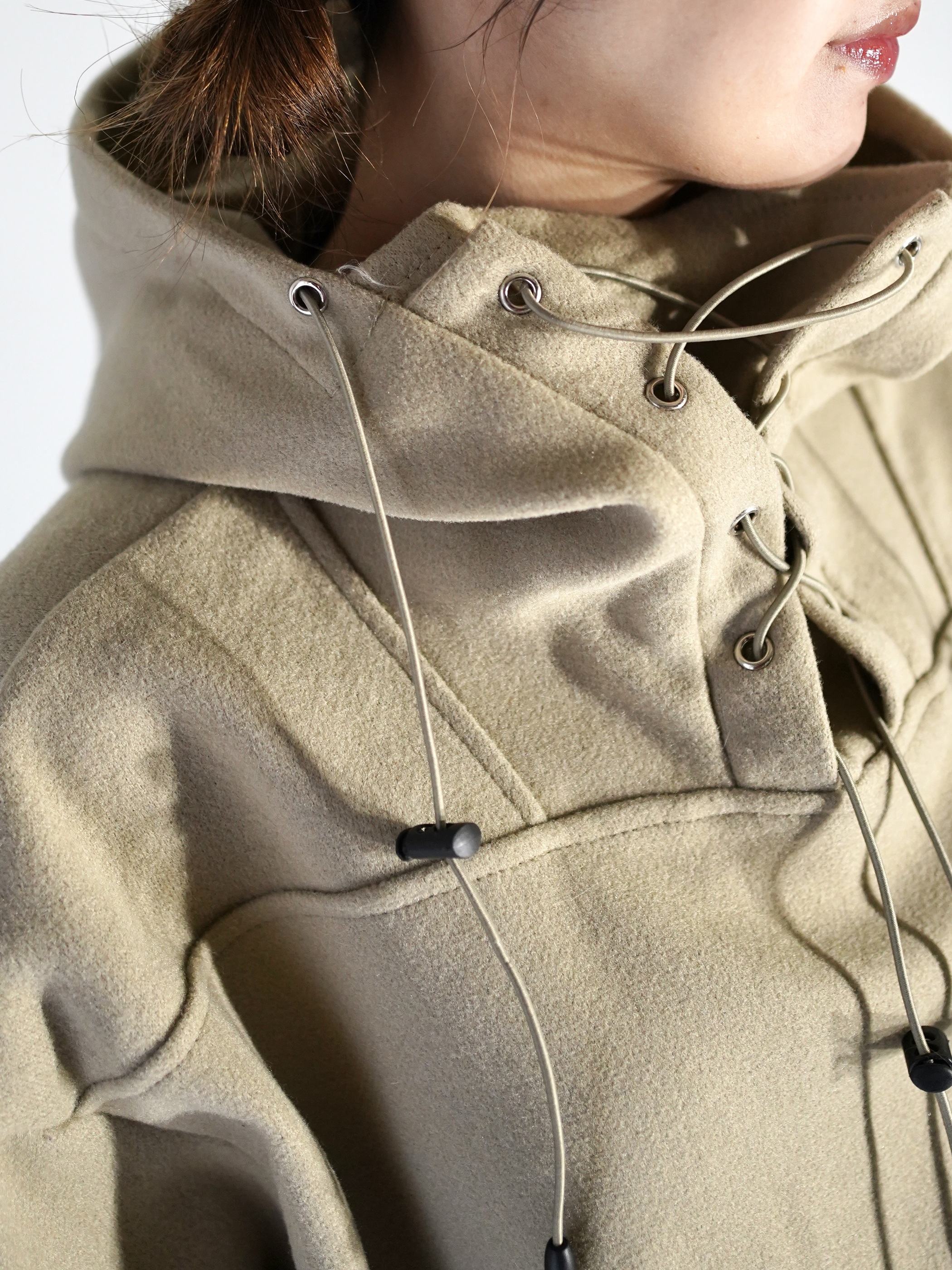保温性も高く、オーバーなサイズ感も相まって中に着込むことが出来、1種のアノラックの様な認識で着ても良さそうです