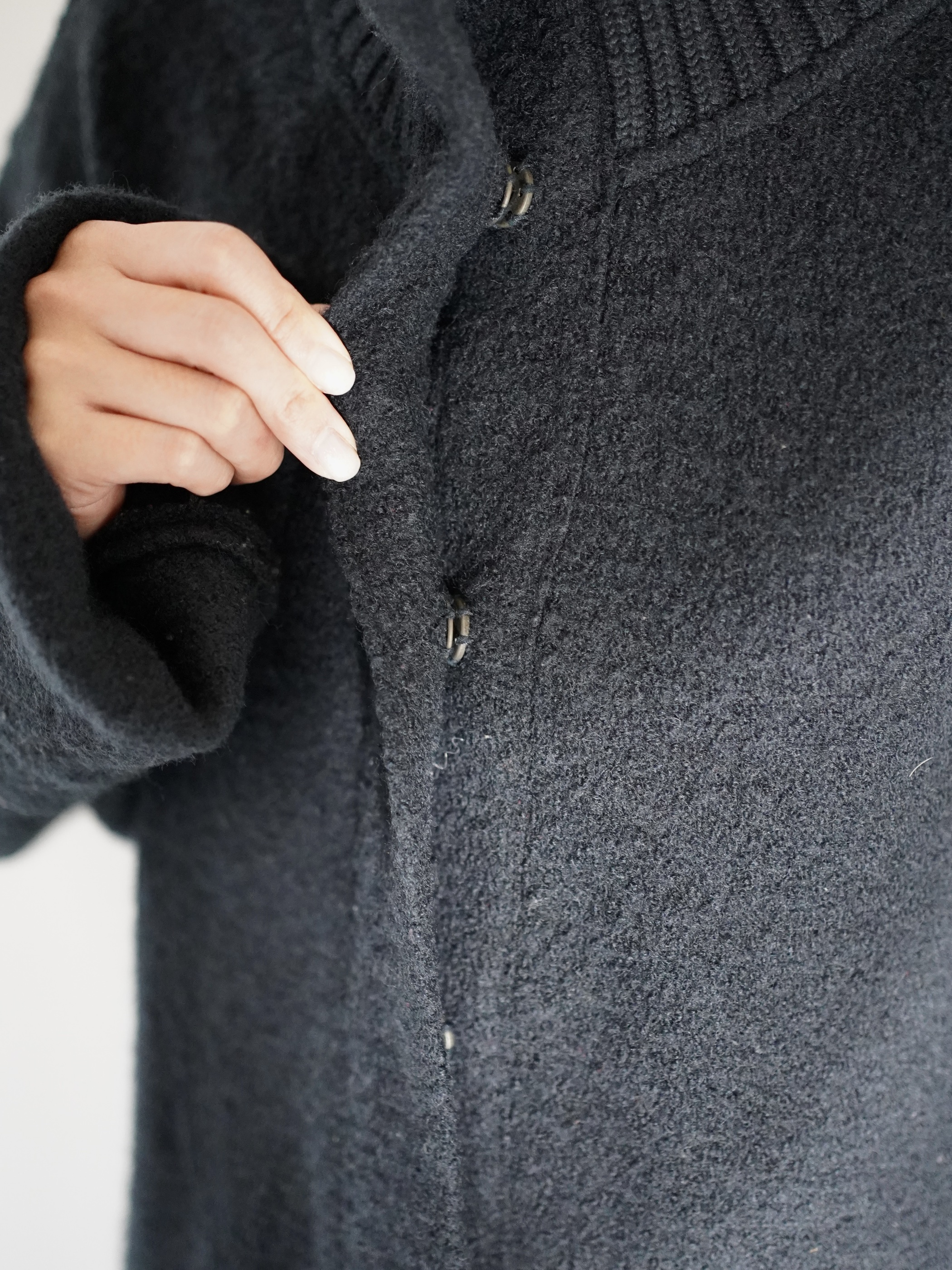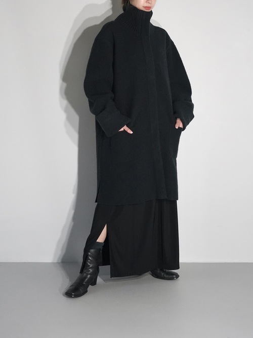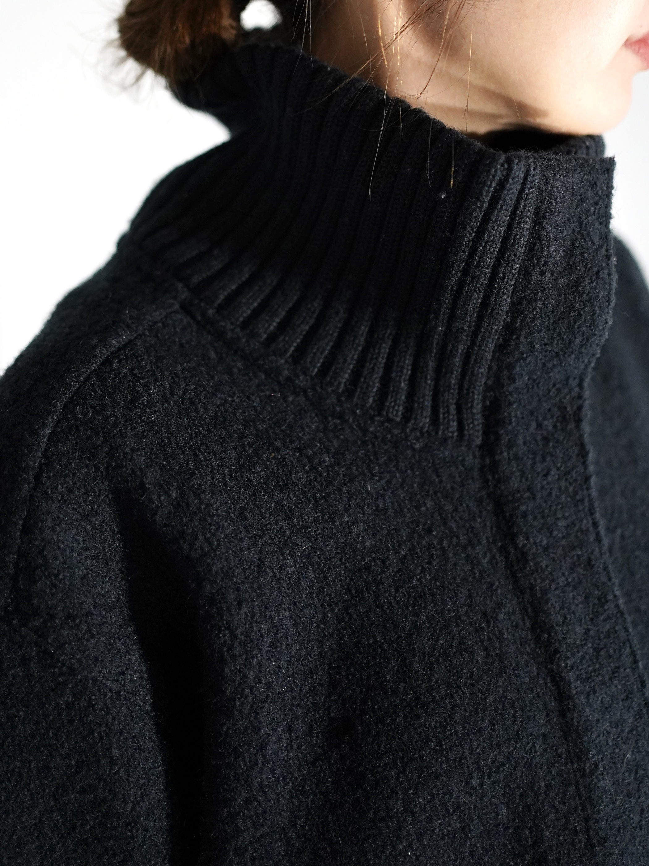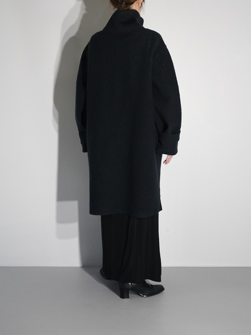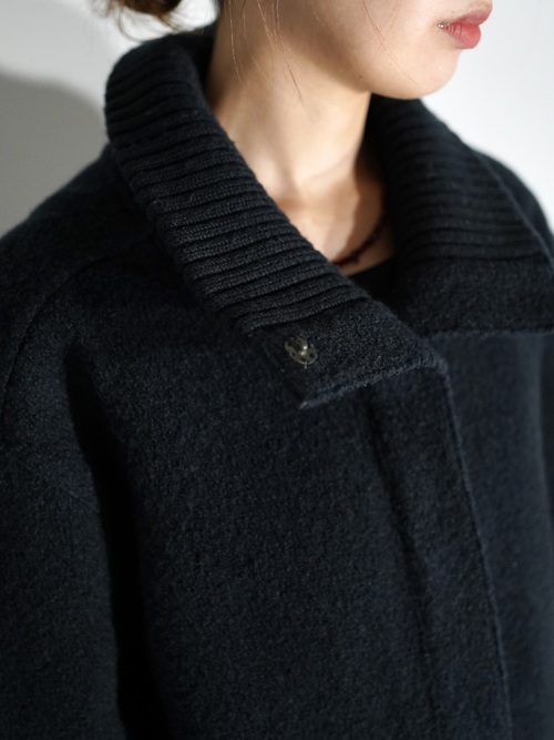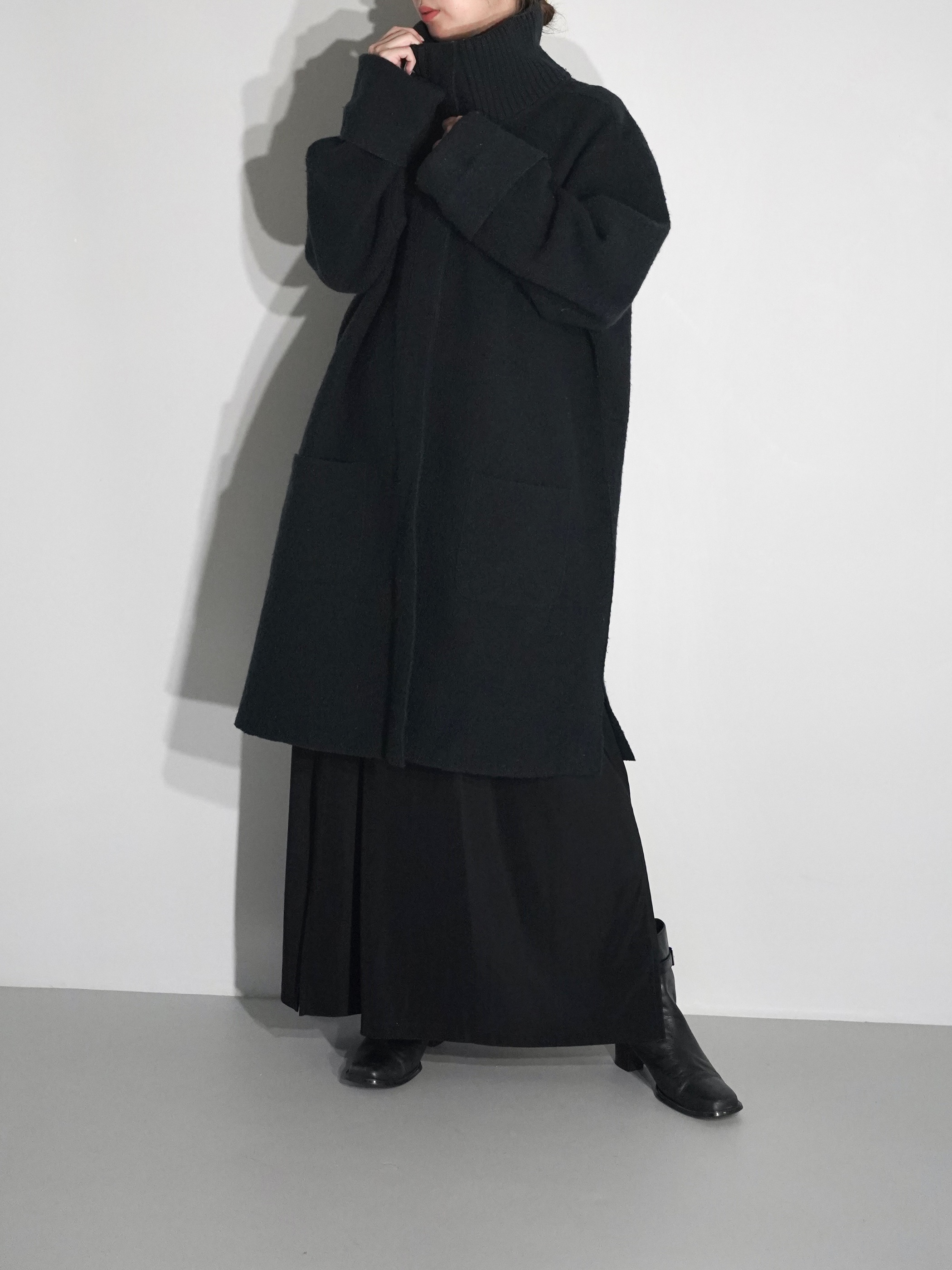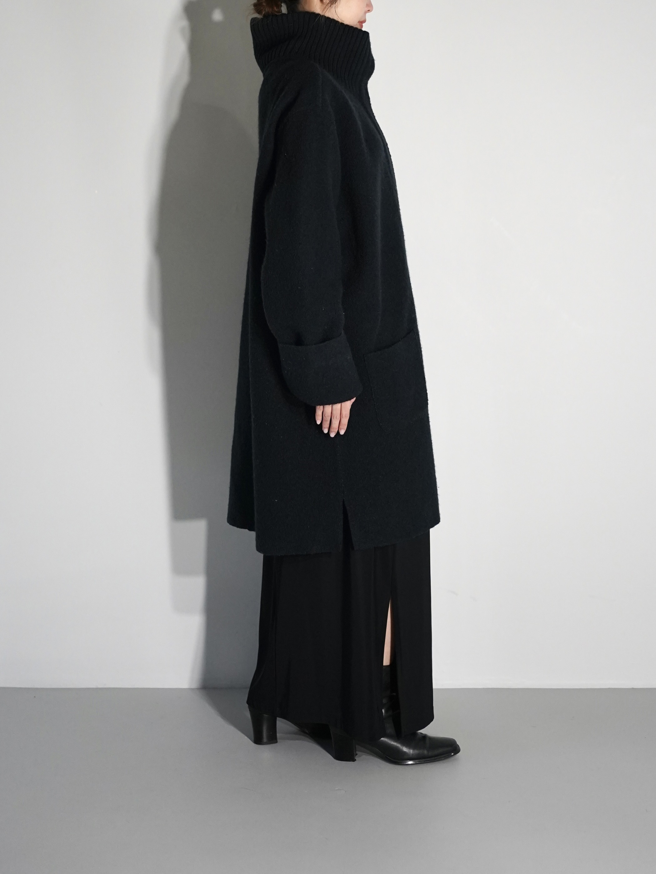 Loop Yarn Wool Rib Knit High Neck Half Coat