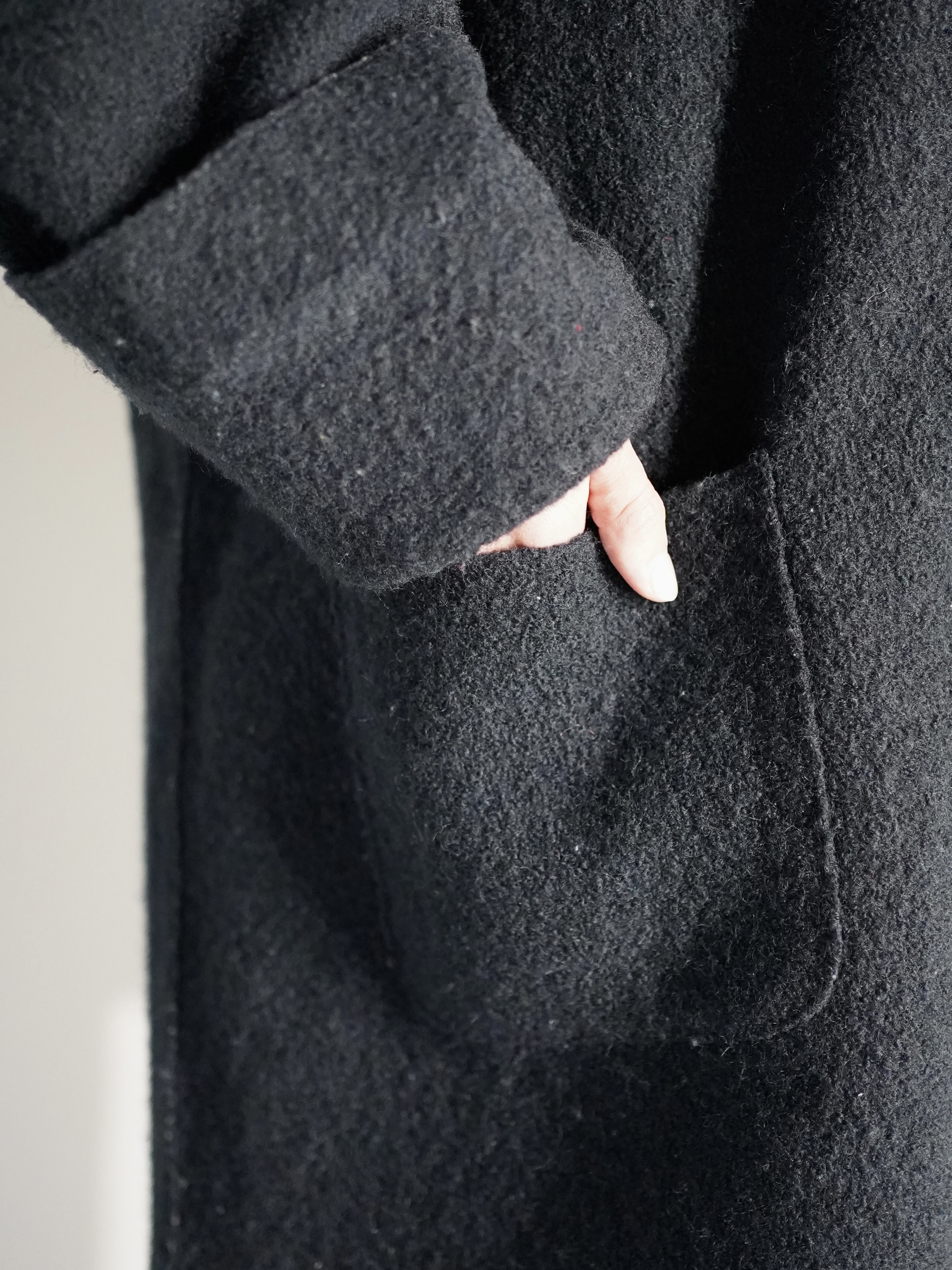 身幅はしっかりとワイドなので、今時期から様々なインナーで長い時期着回しの効くコートです。