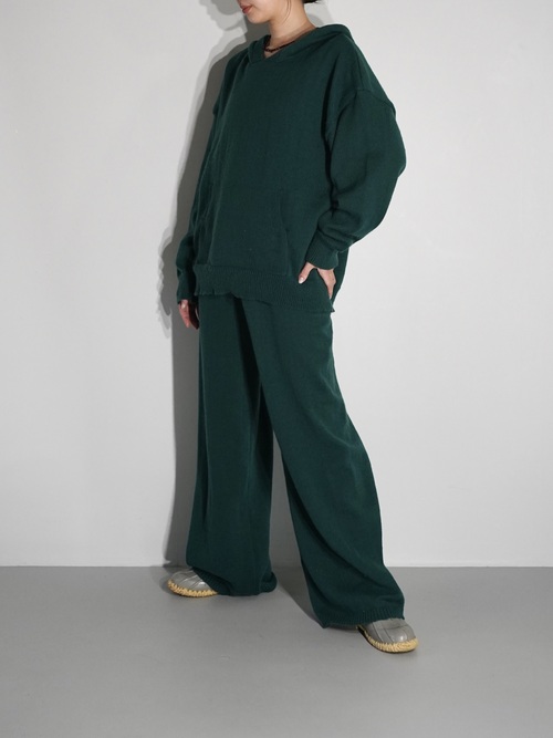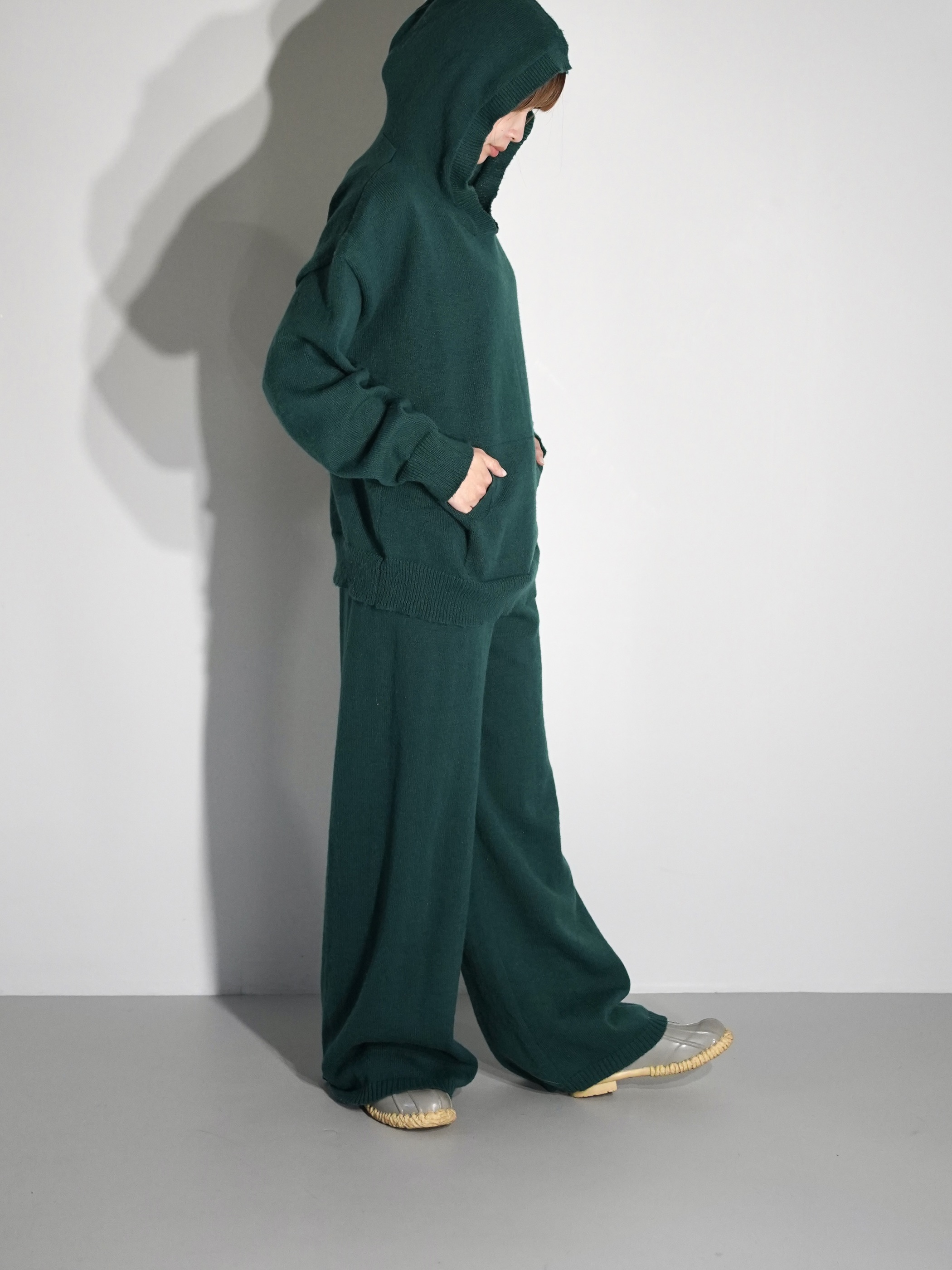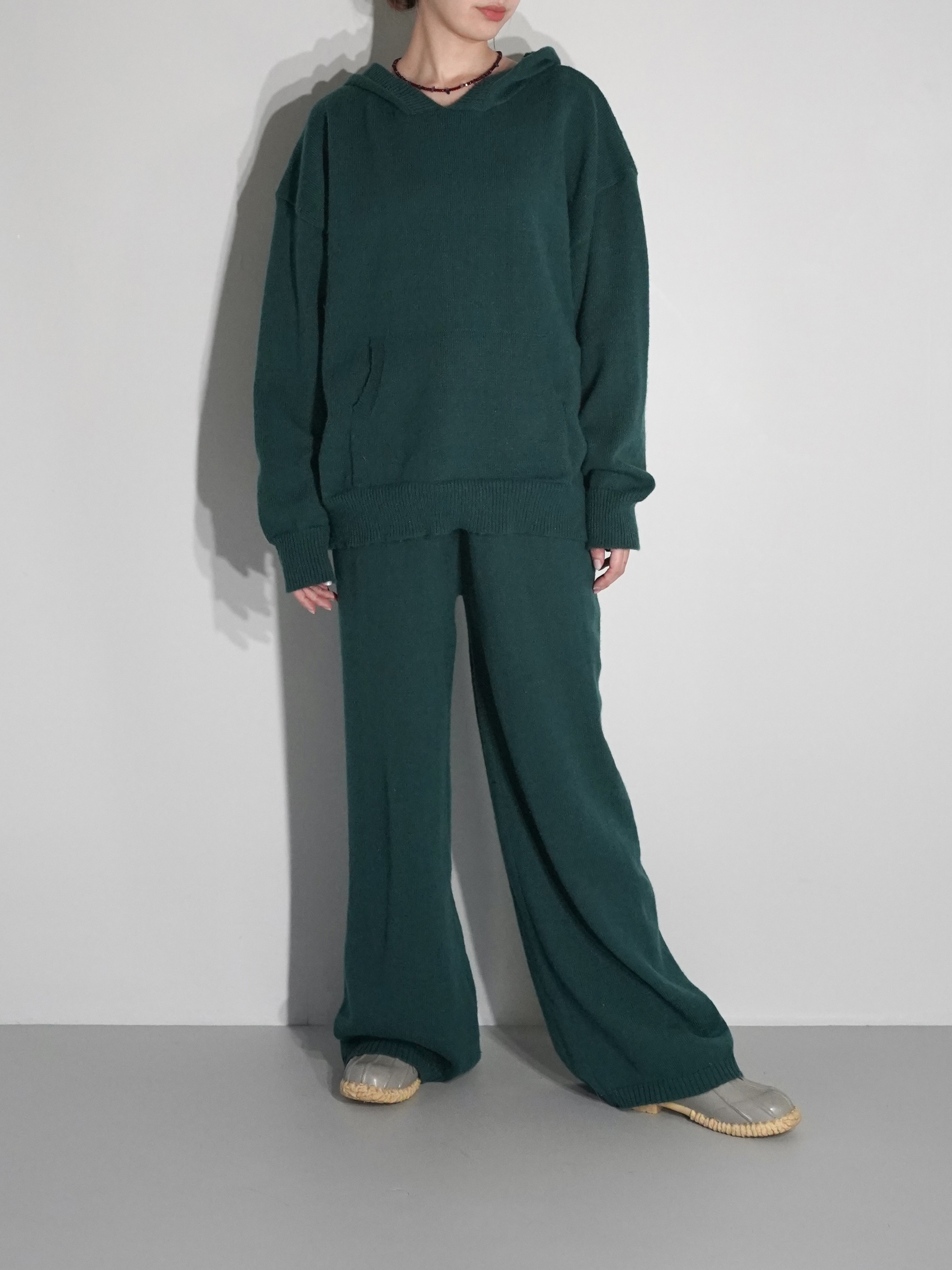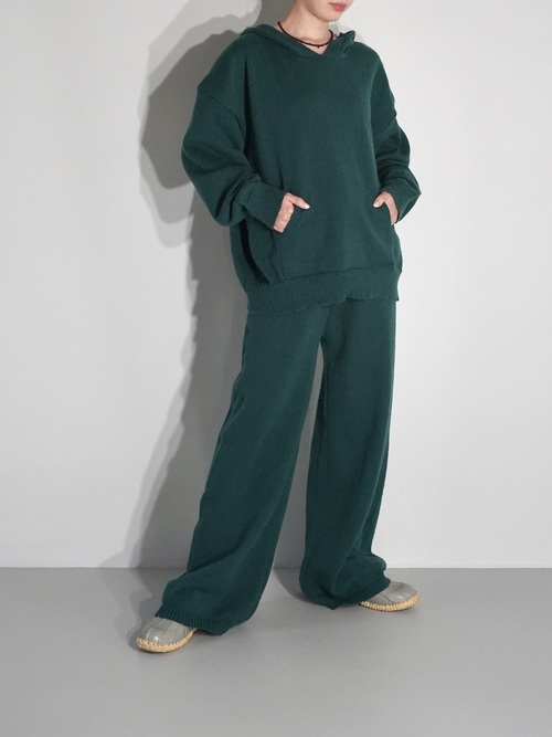 緩さのあるニットフーディーとイージーパンツの2ピース