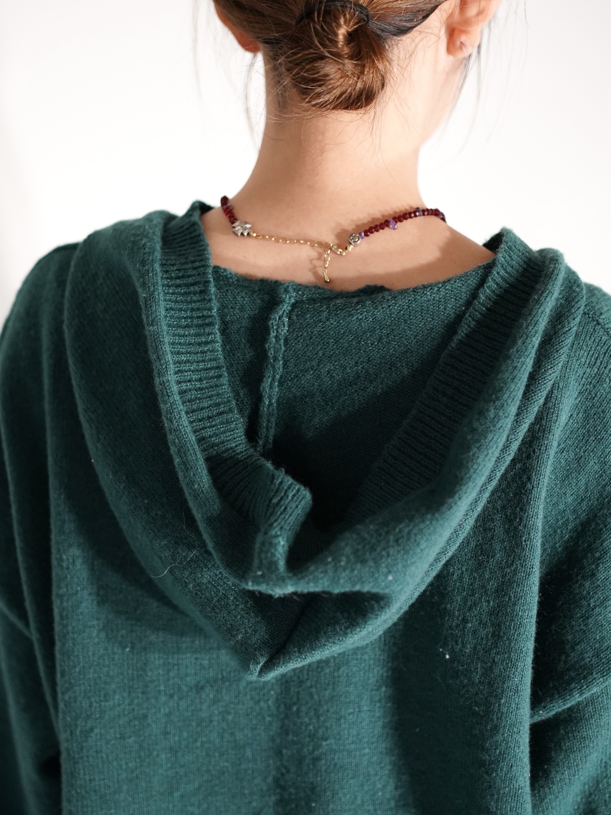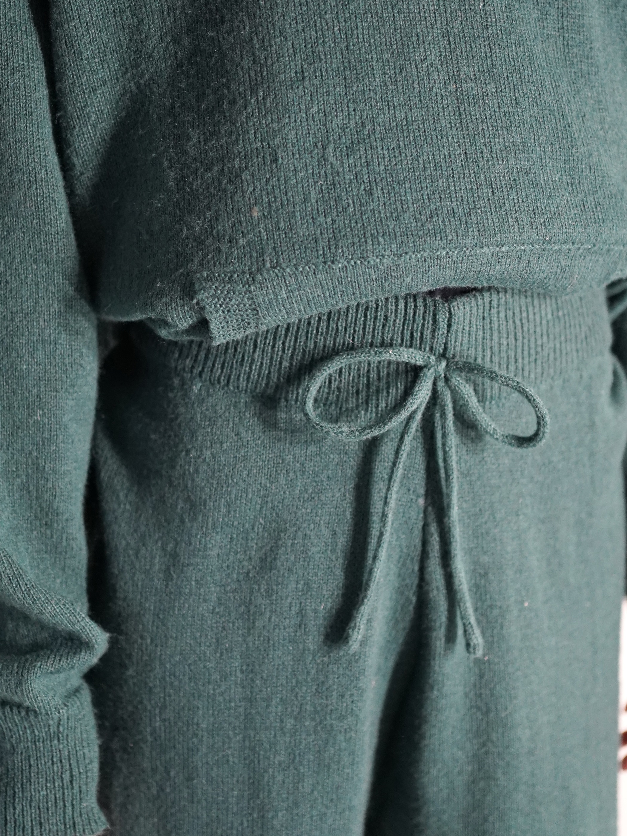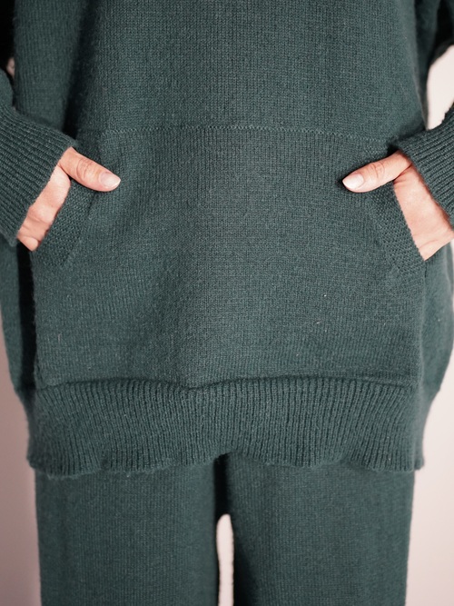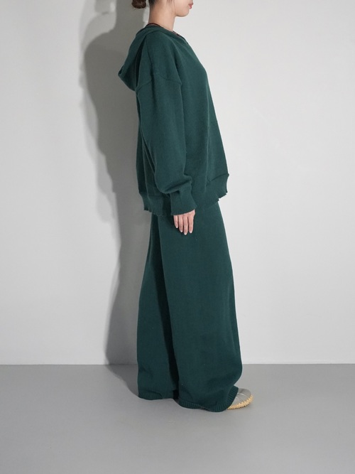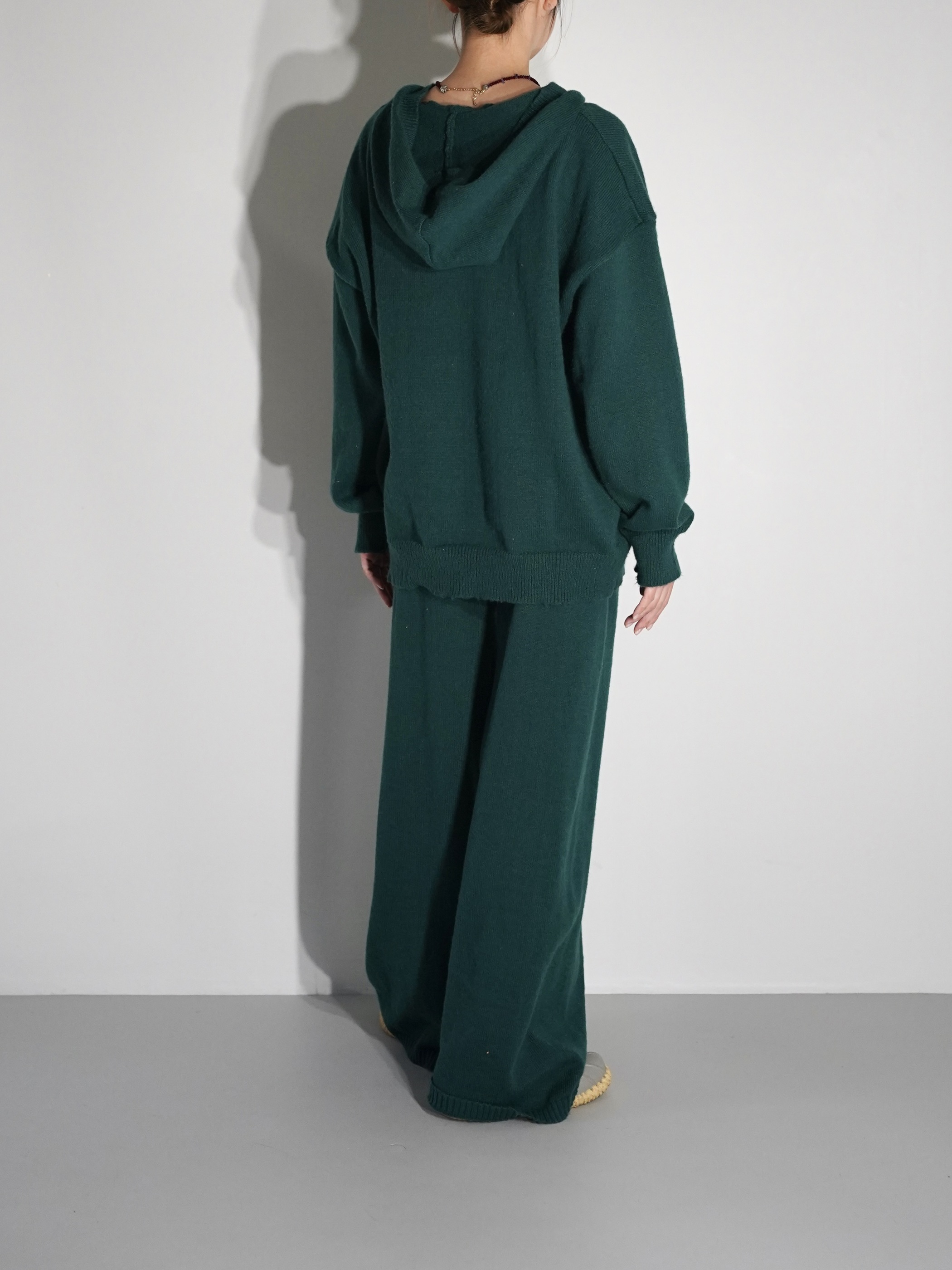 緩さのあるニットフーディーとイージーパンツの2ピース