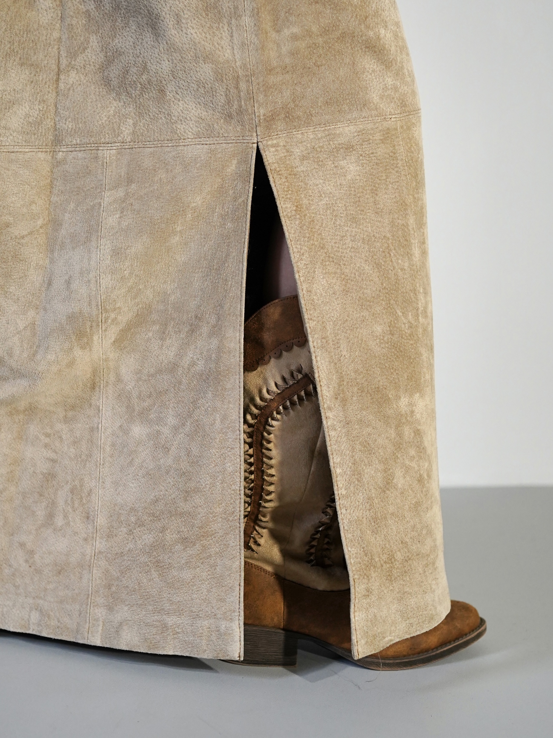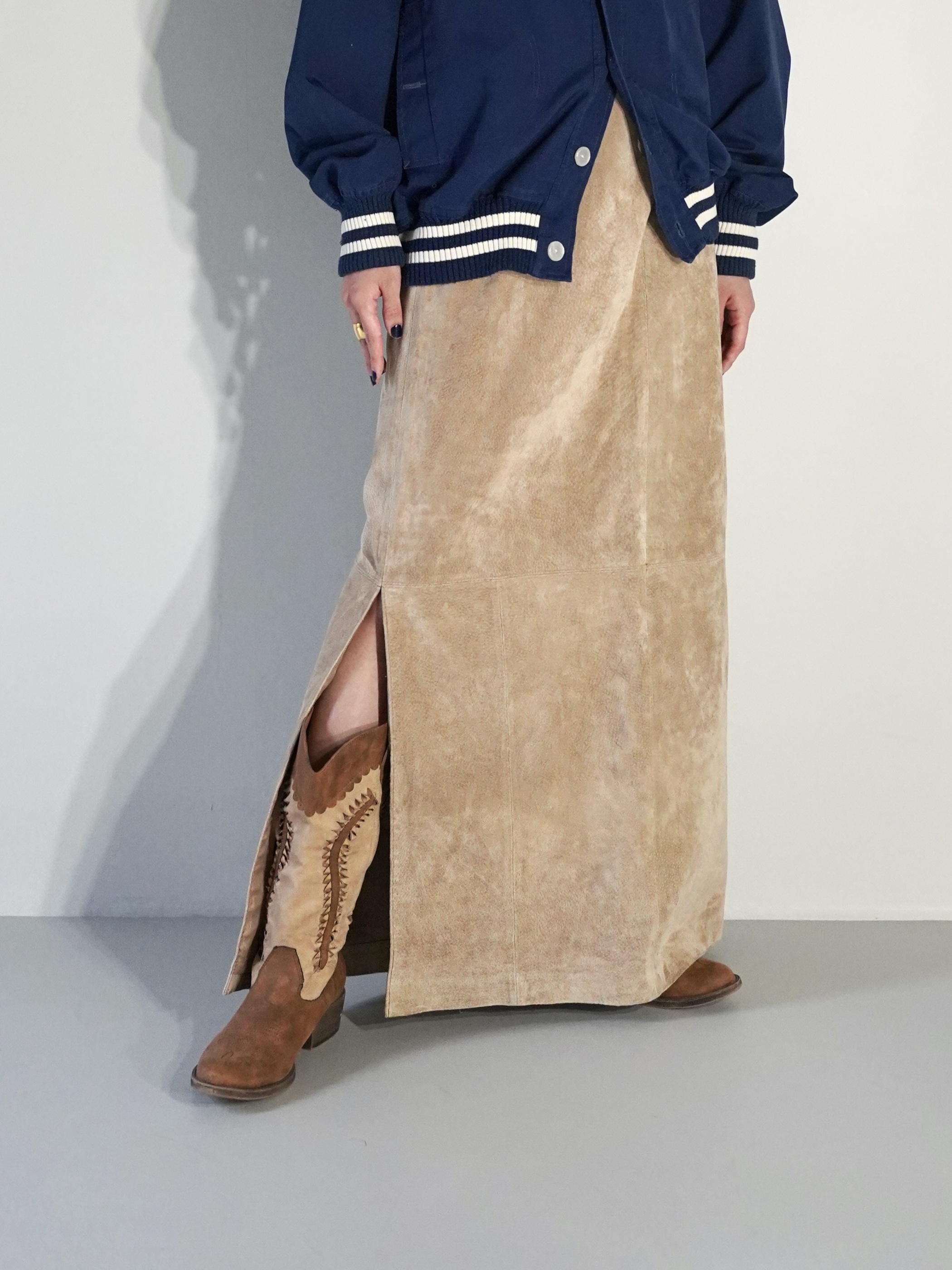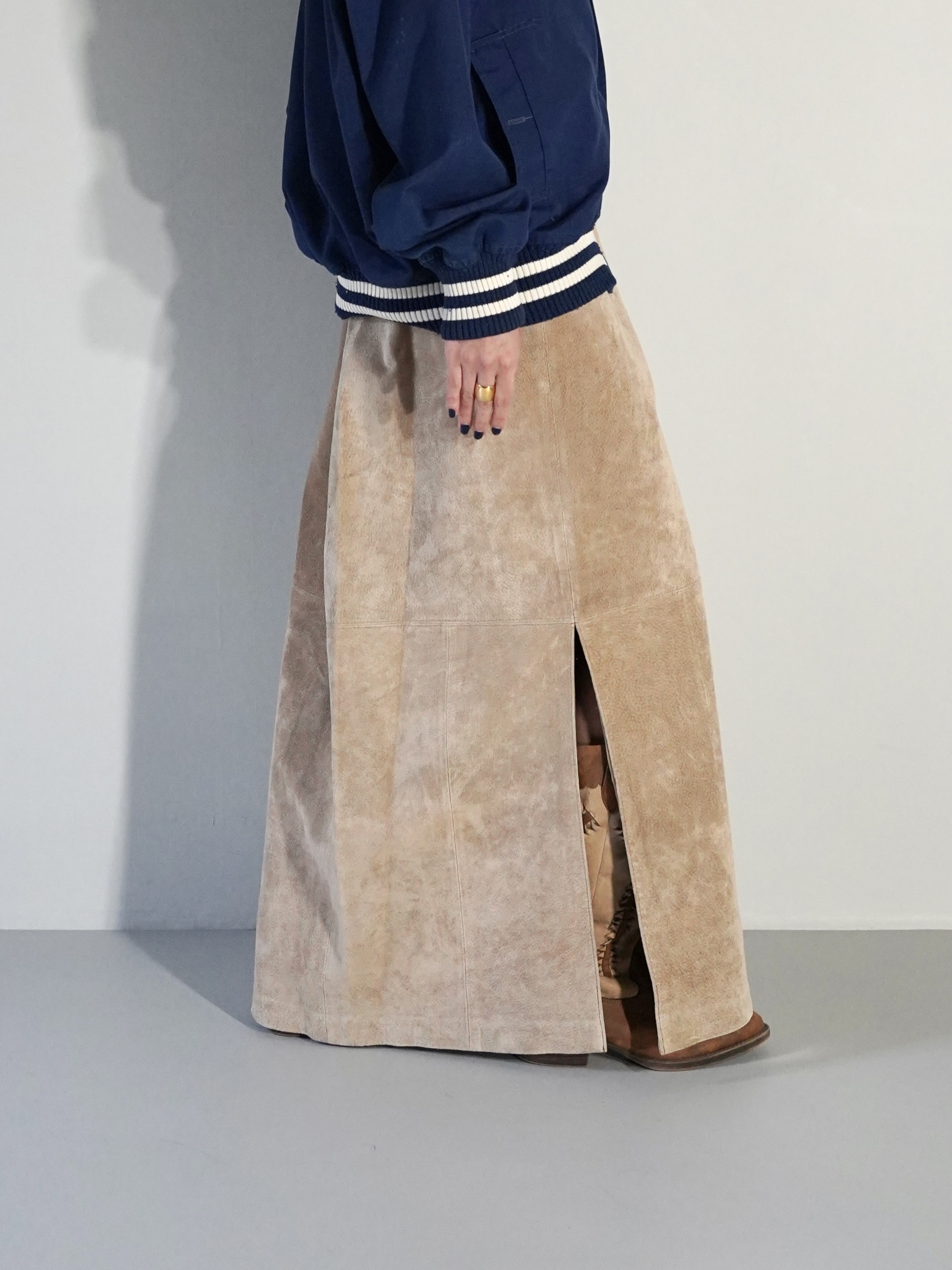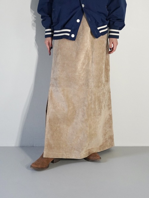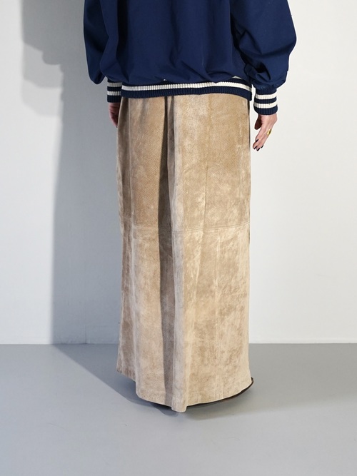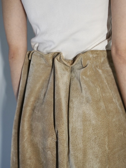 肌馴染み良いヌードベージュカラーのスエードスカート
