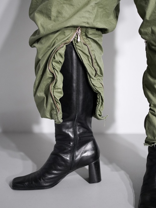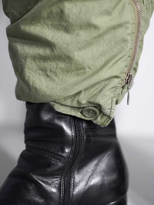 裾にはジッパーの他にゴムシャーリングとボタンで適度なフィット感で中綿の詰まった防寒性の高いパンツです。