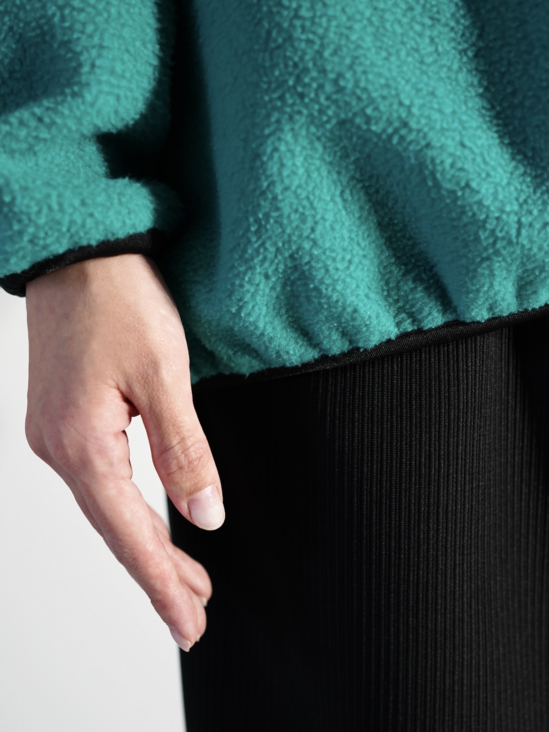 首元にはアウトドアブランドらしくモックネックリブにて風よけ+遊びあるデザイン