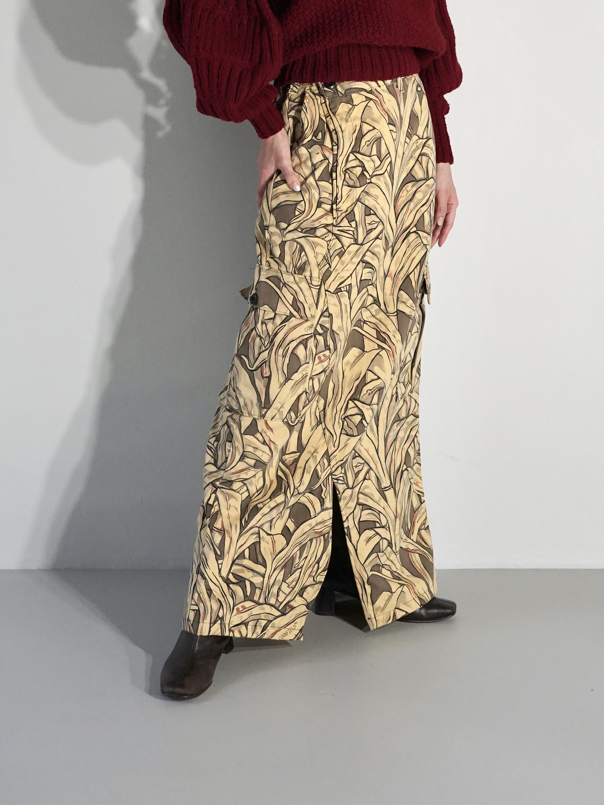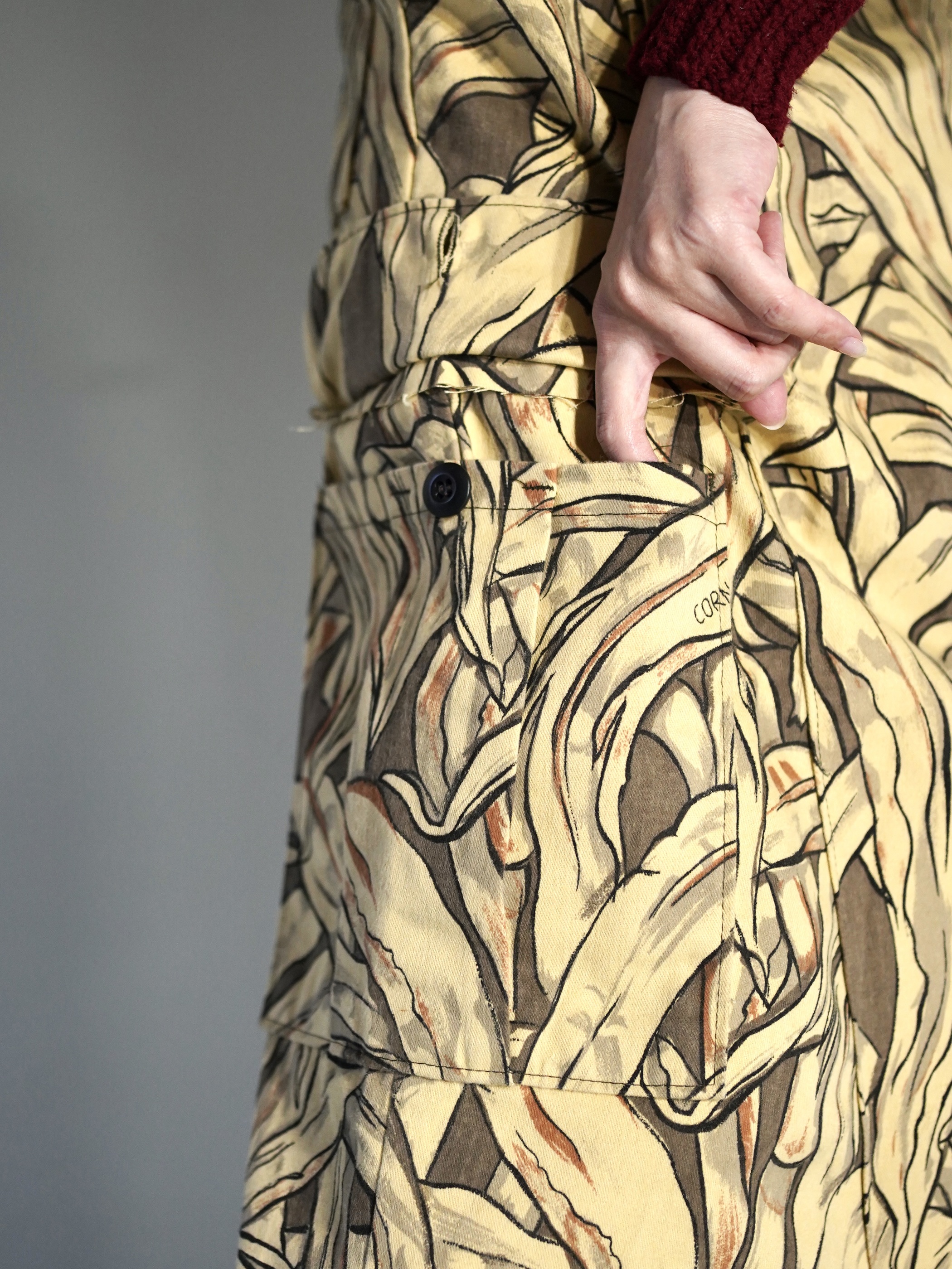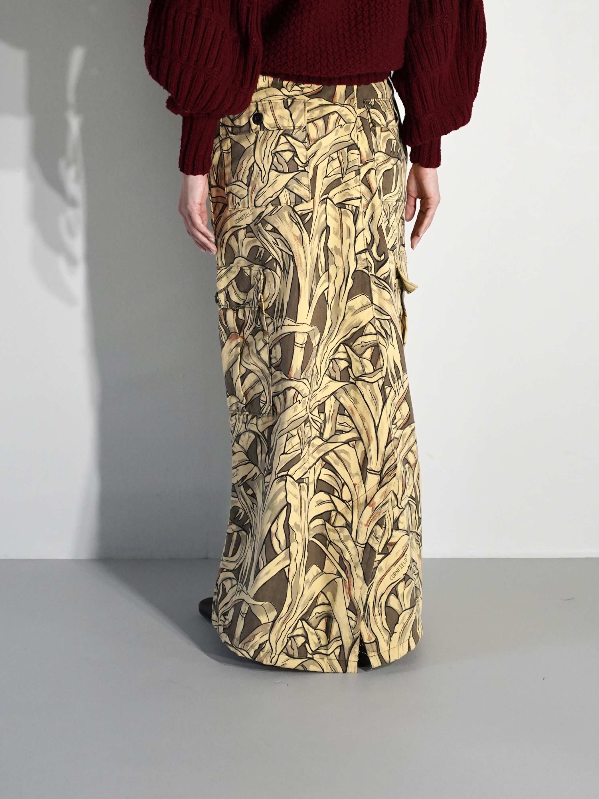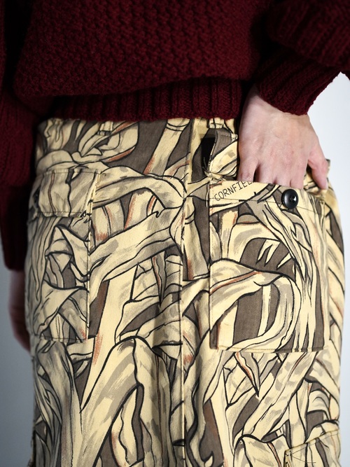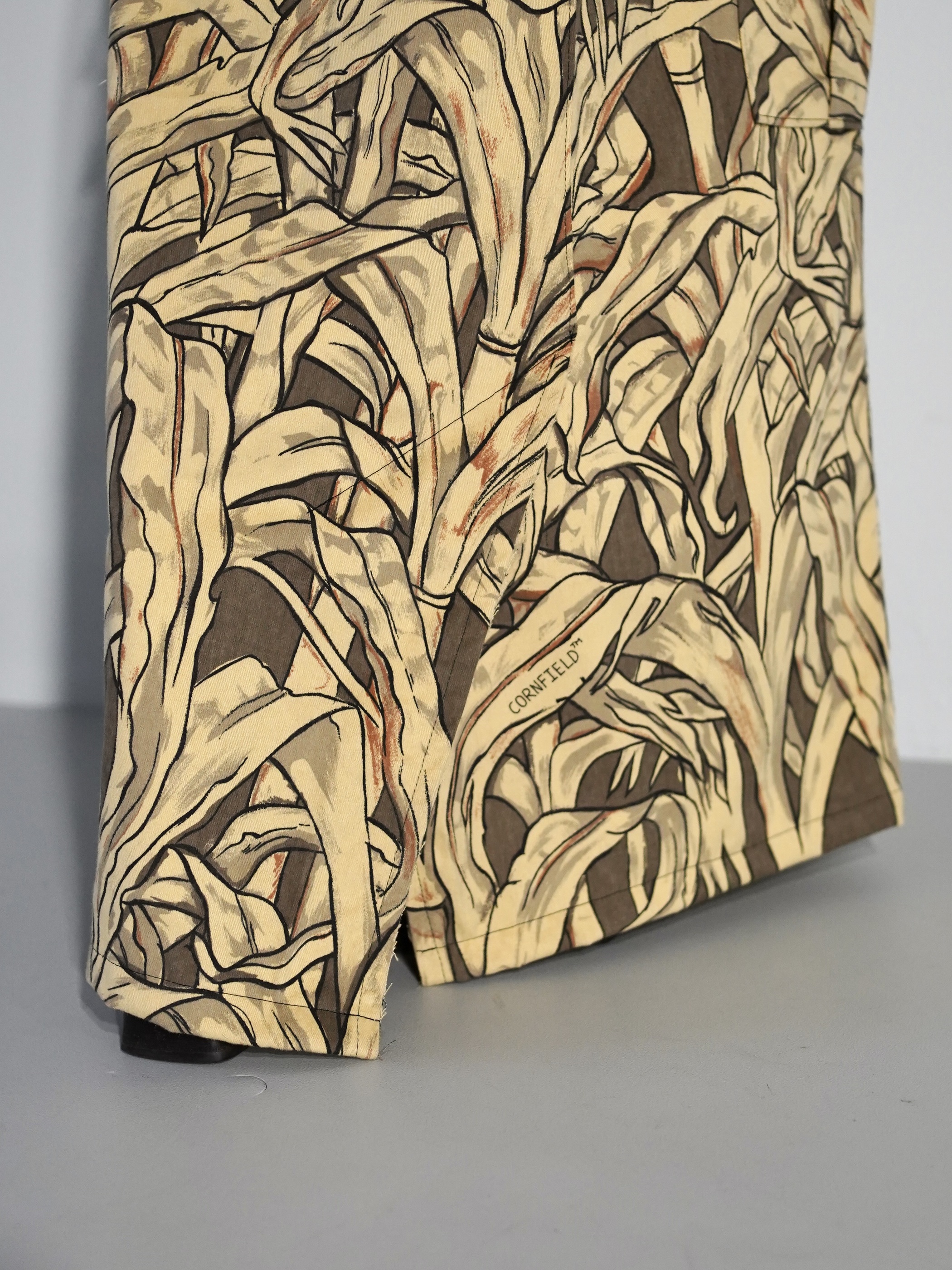 リアルカモツリーと思いきや、とうもろこし畑をプリントした様なユニークな柄のパンツをスカートにカスタム。