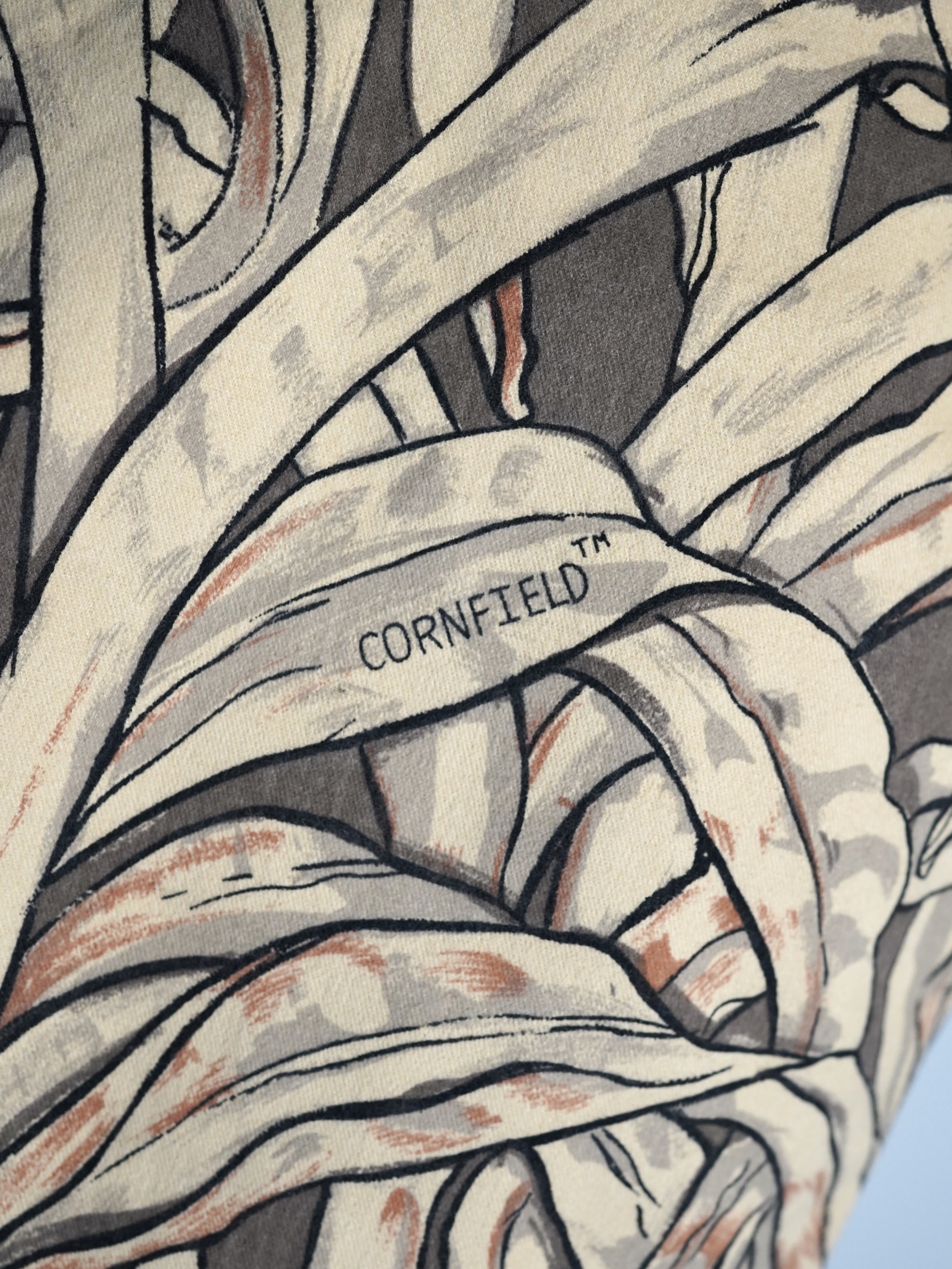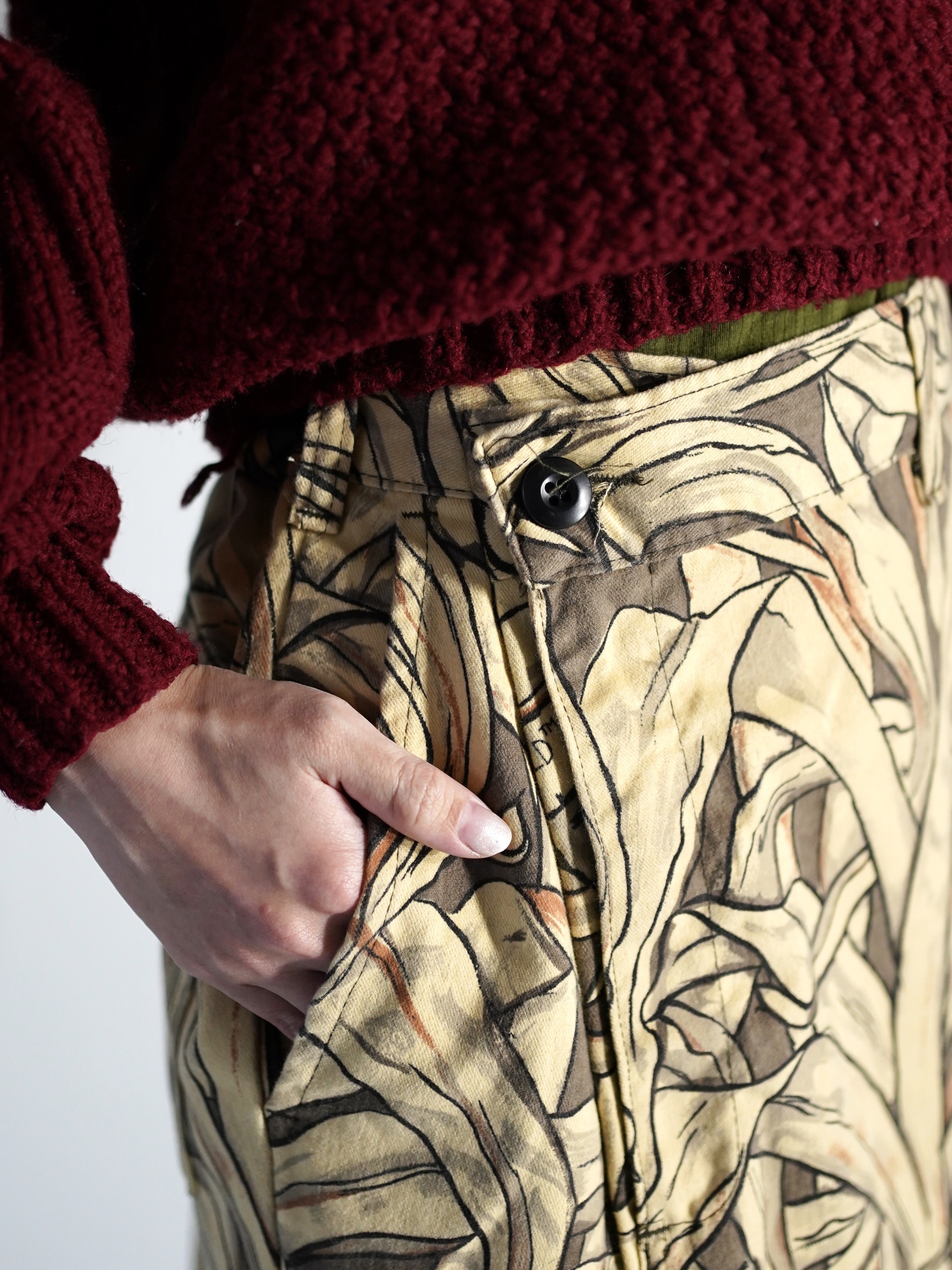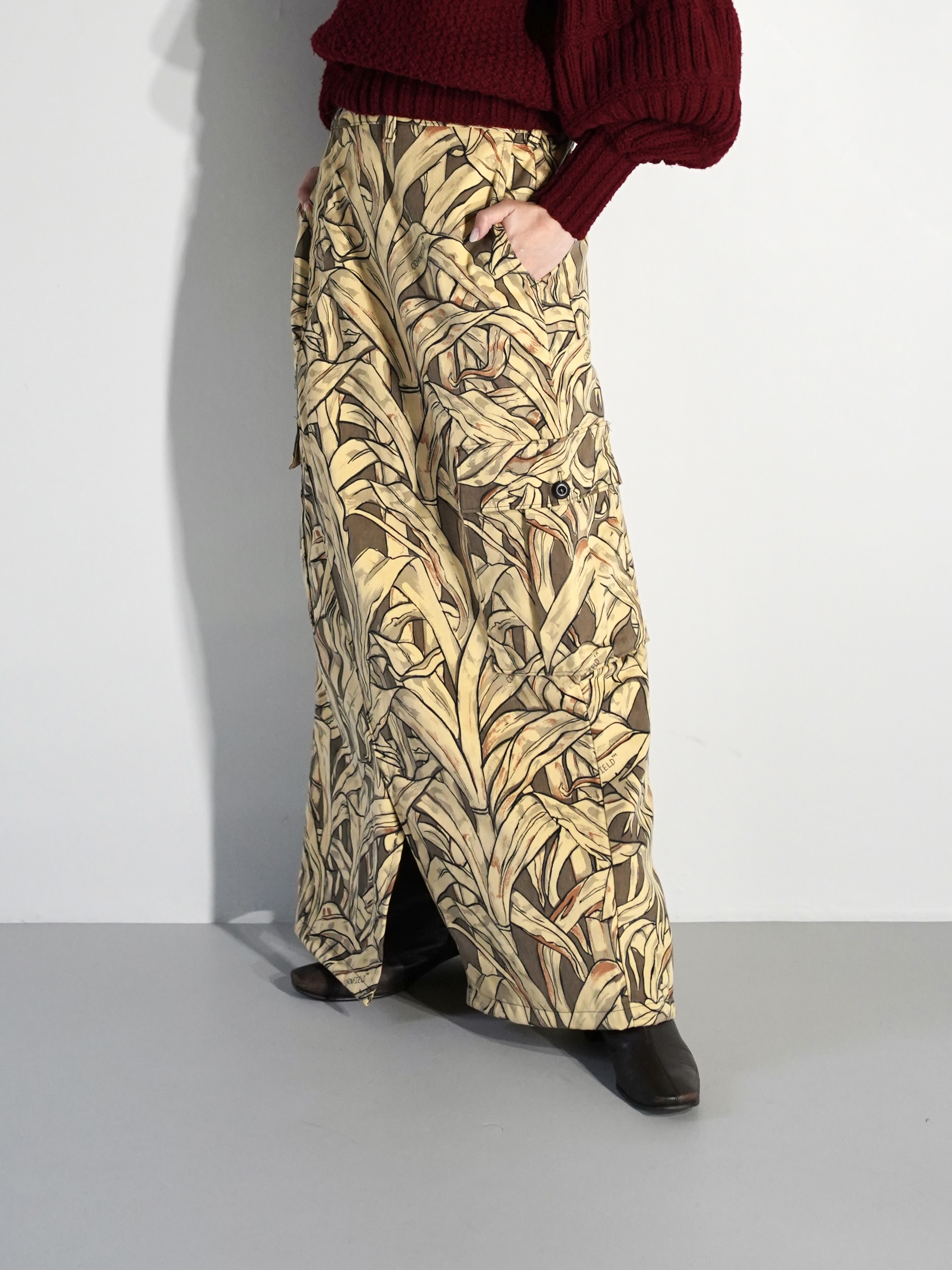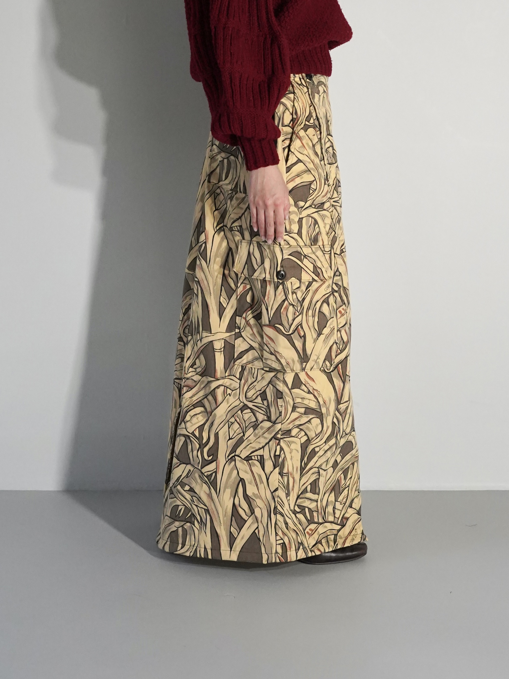 リアルカモツリーと思いきや、とうもろこし畑をプリントした様なユニークな柄のパンツをスカートにカスタム。