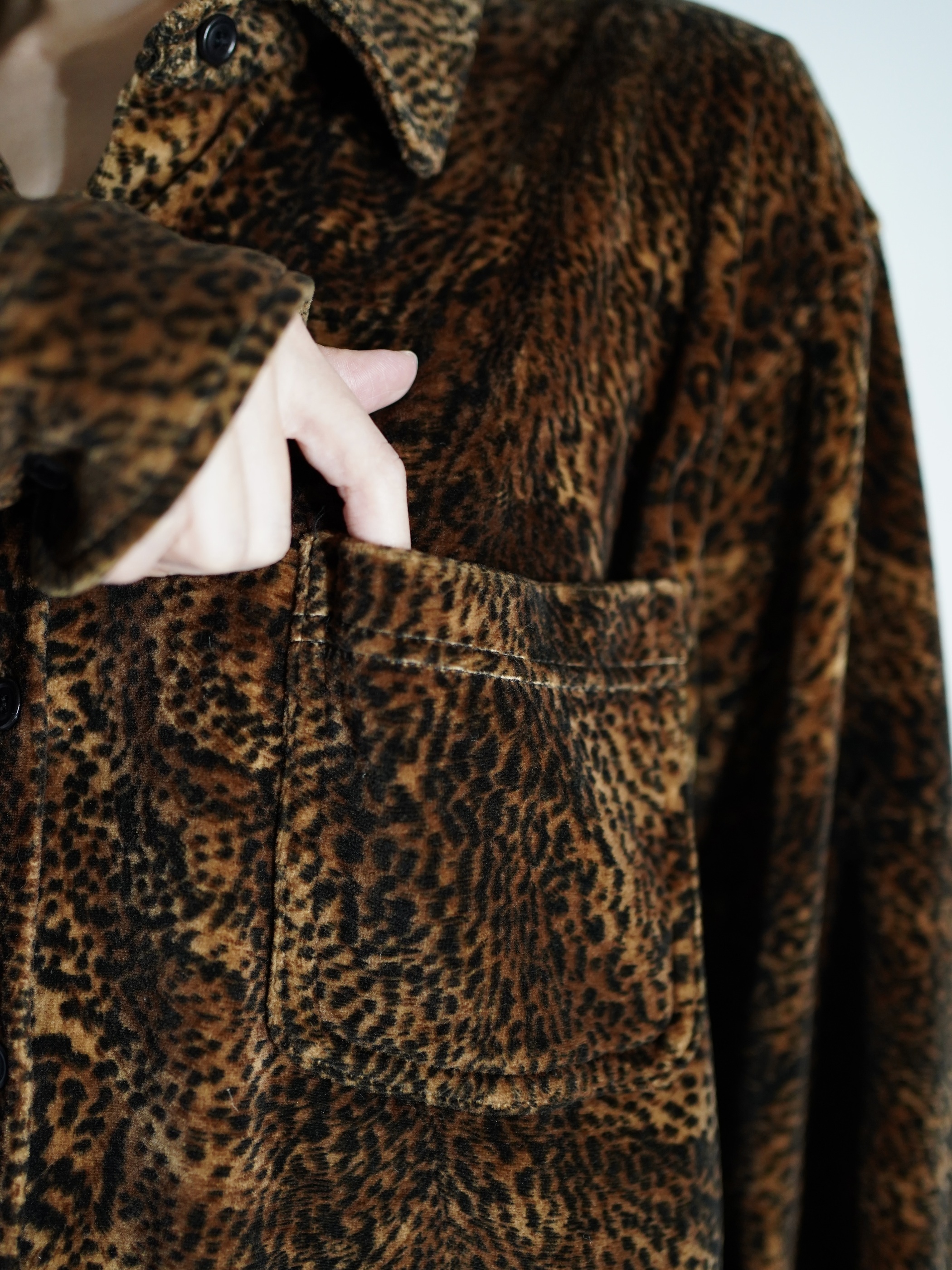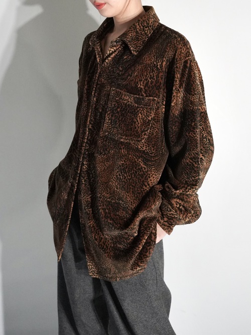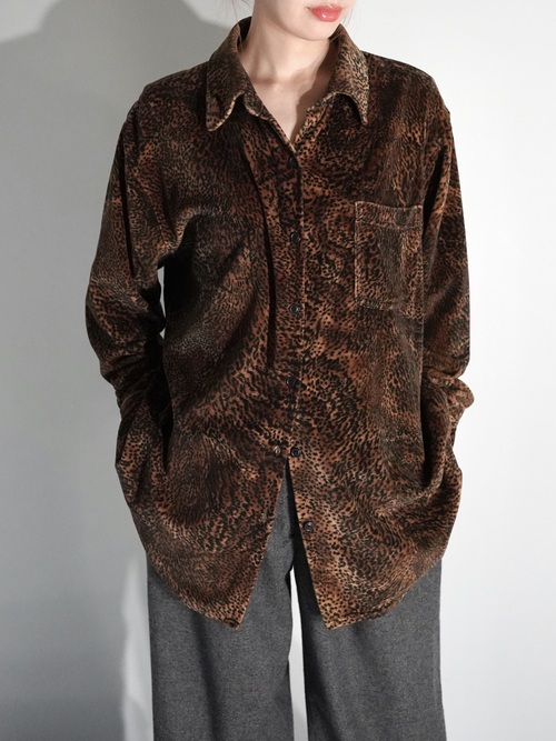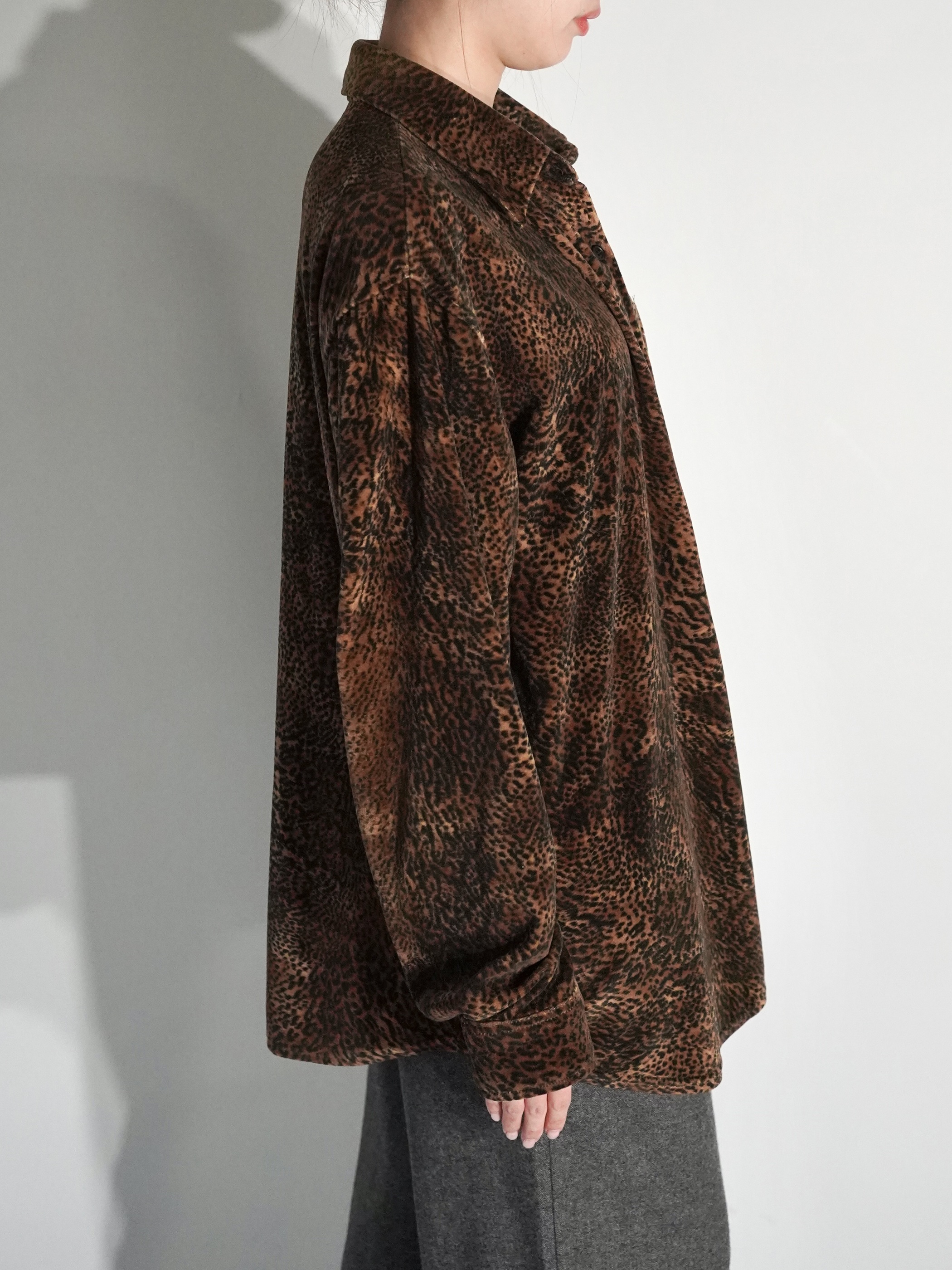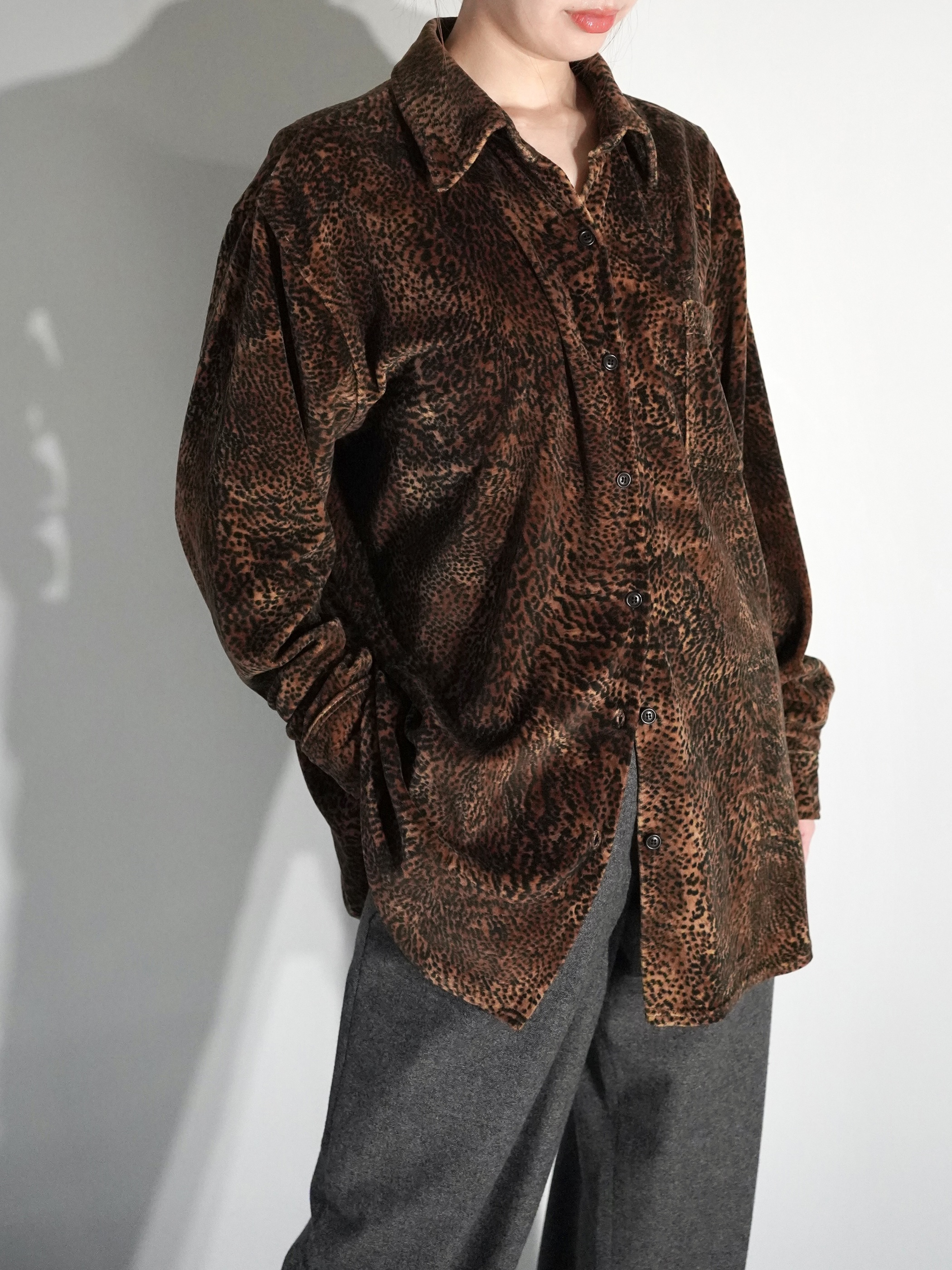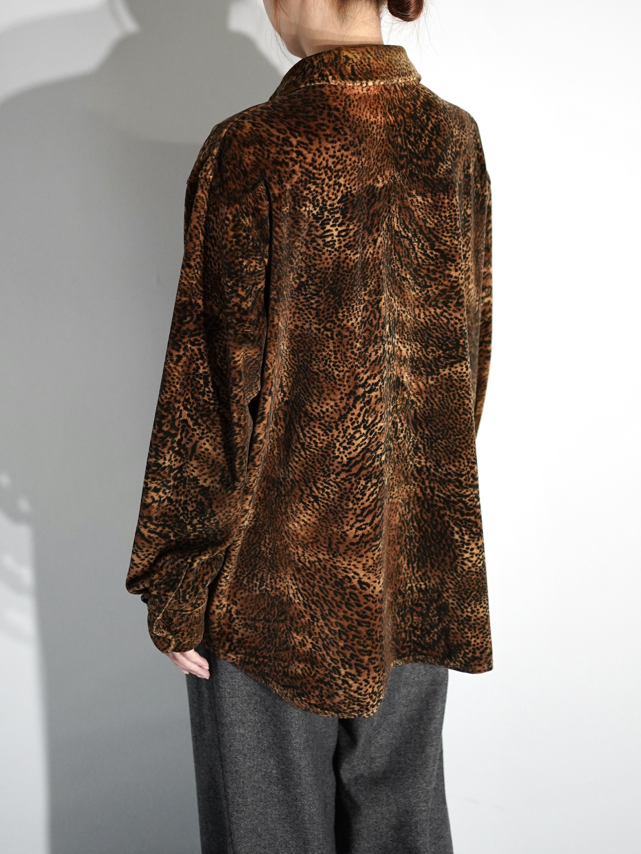 ギラついたやらしさの無いモードな雰囲気あるヒョウ柄ベロアシャツ