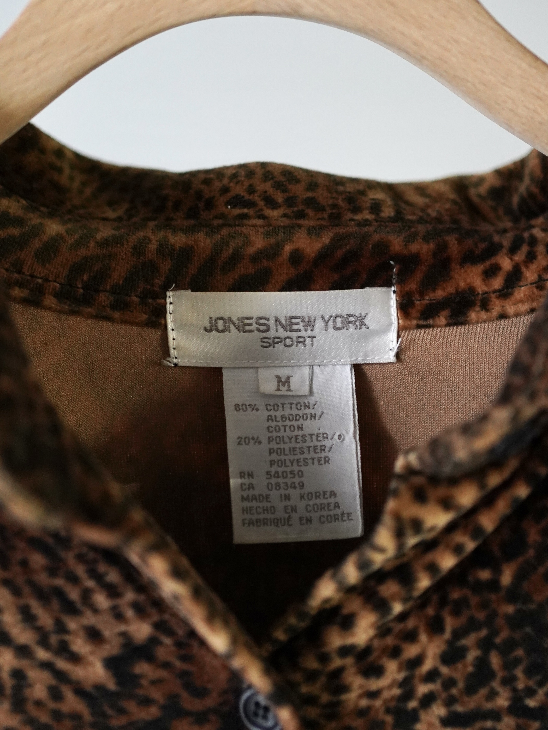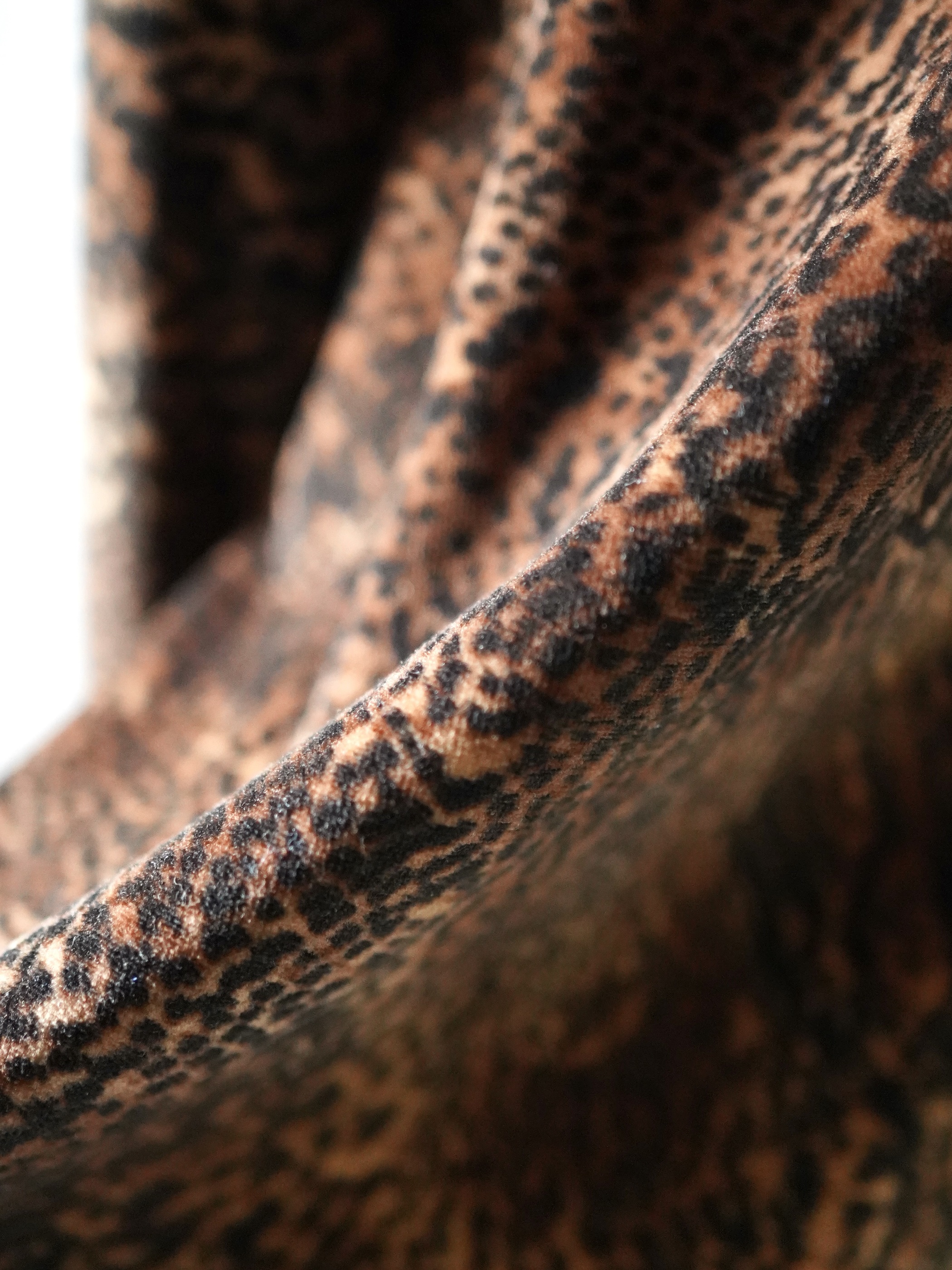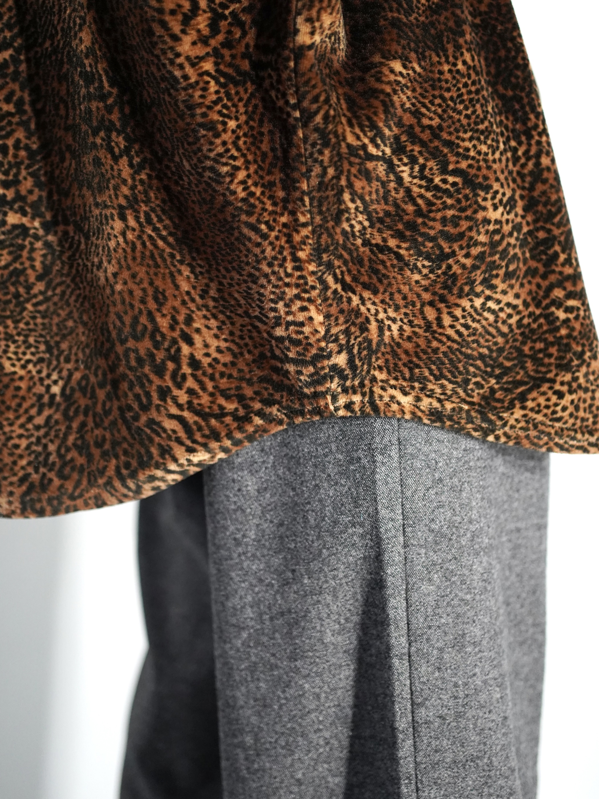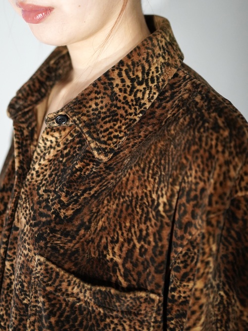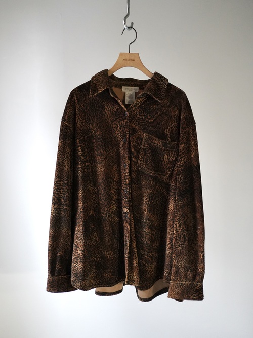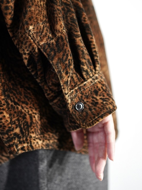 ギラついたやらしさの無いモードな雰囲気あるヒョウ柄ベロアシャツ