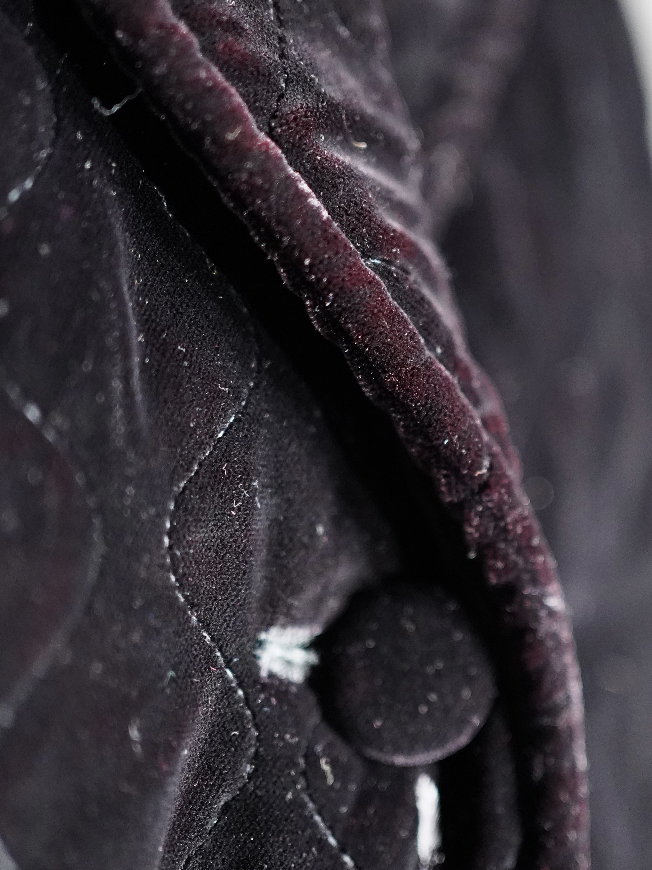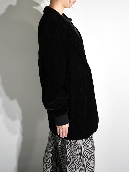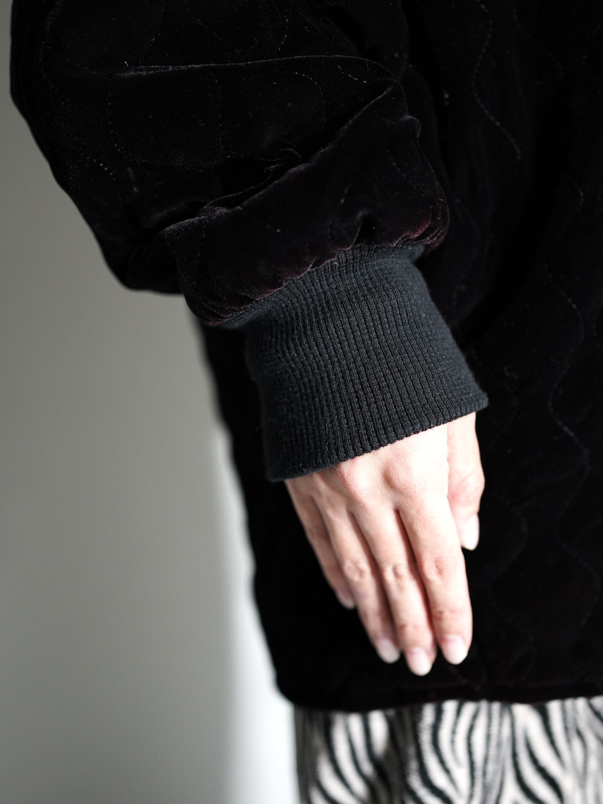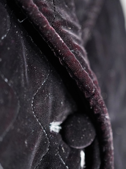 表面にはベルベット素材の上から曲線を描くようなステッチがアートピースに思える模様