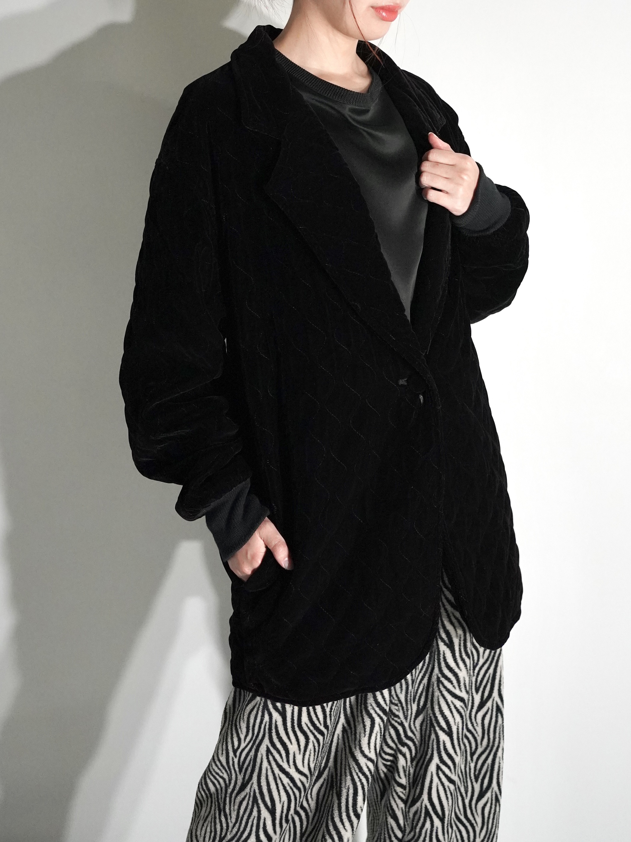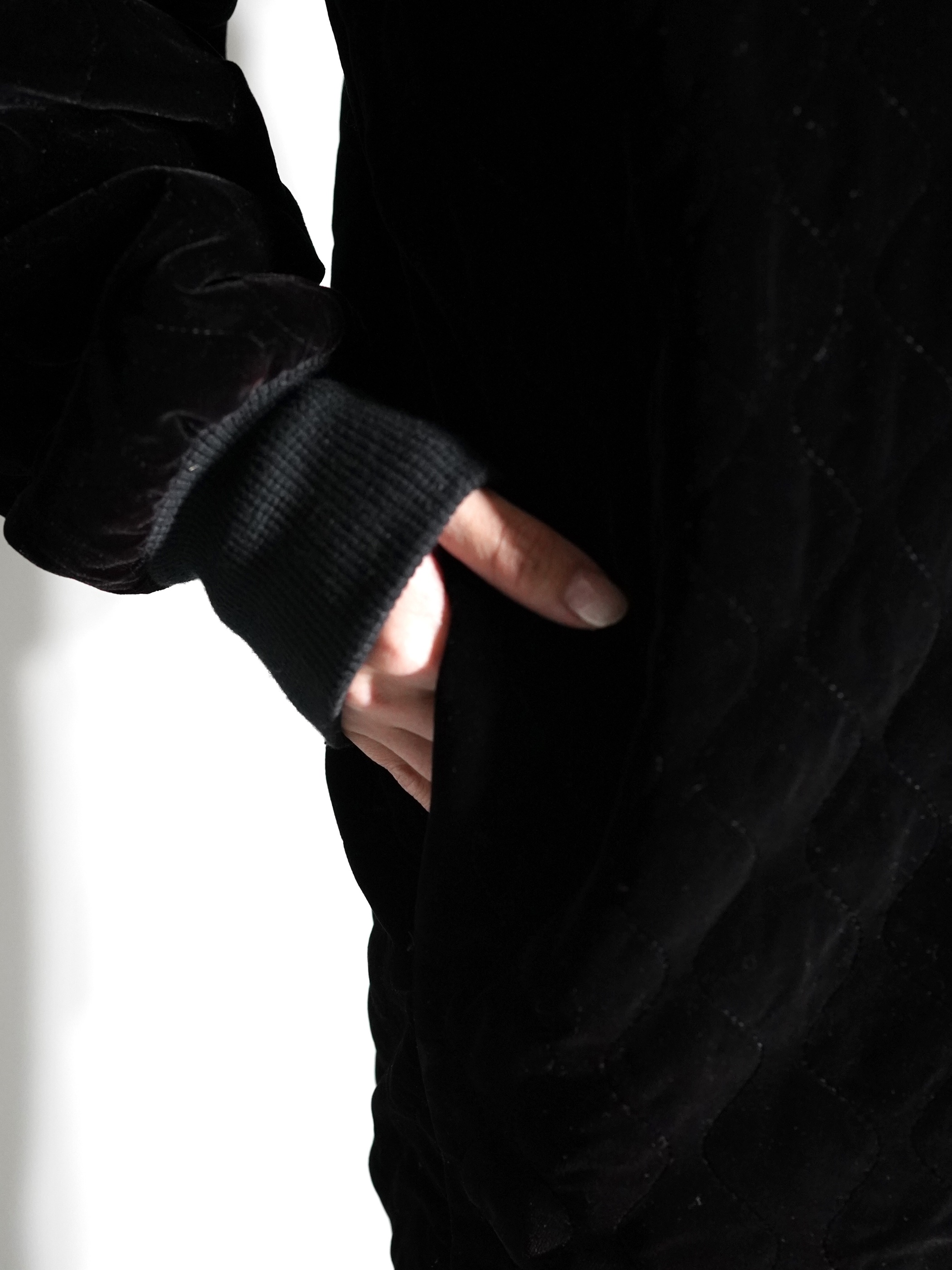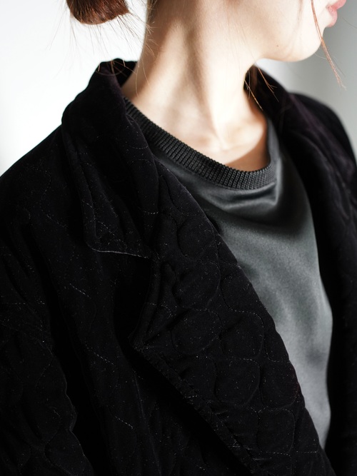 一見ロング丈のテーラードの様な佇まいでありますが、袖にリブが付いており、サイドポケもありアウター感覚で着れます