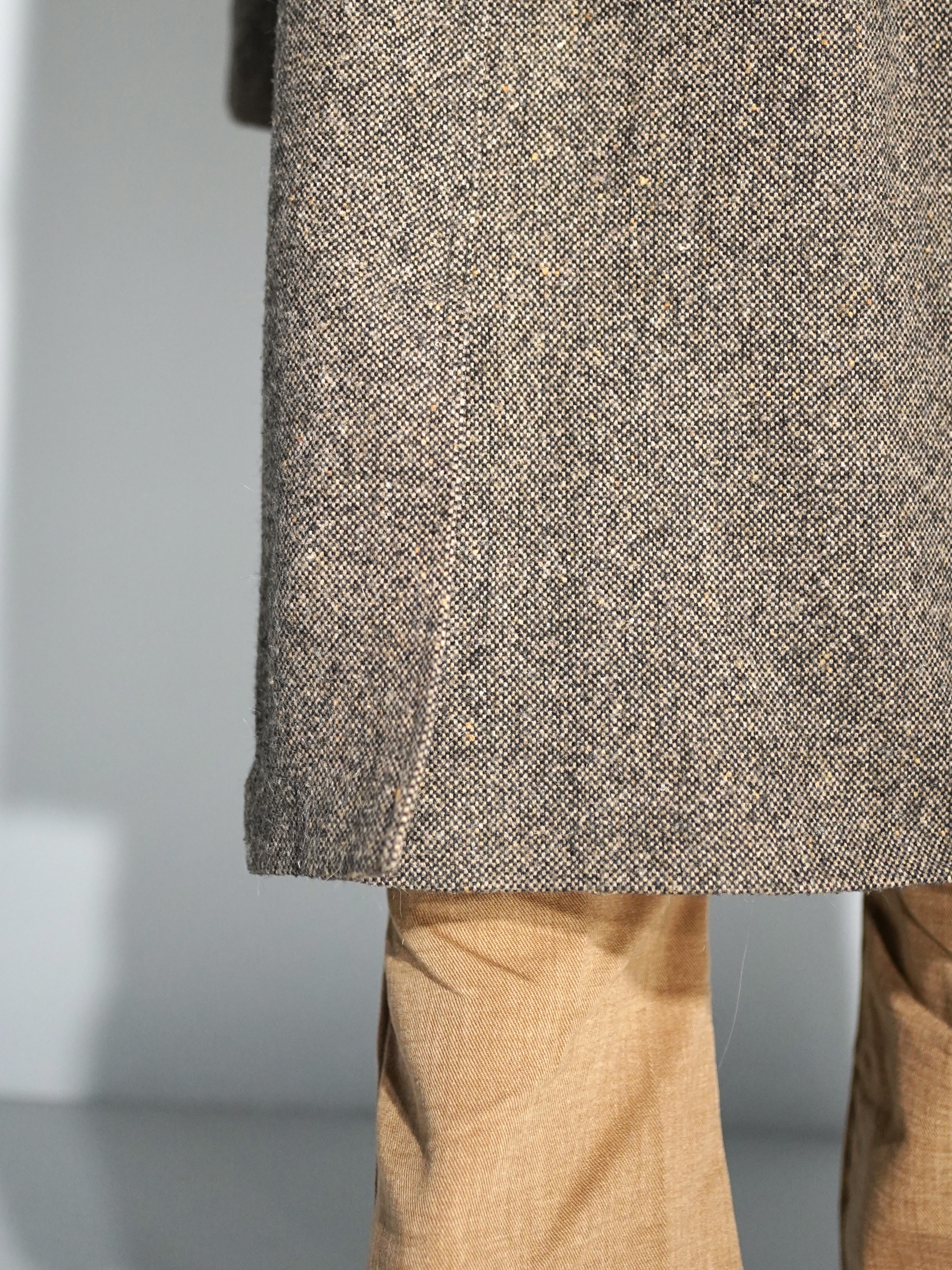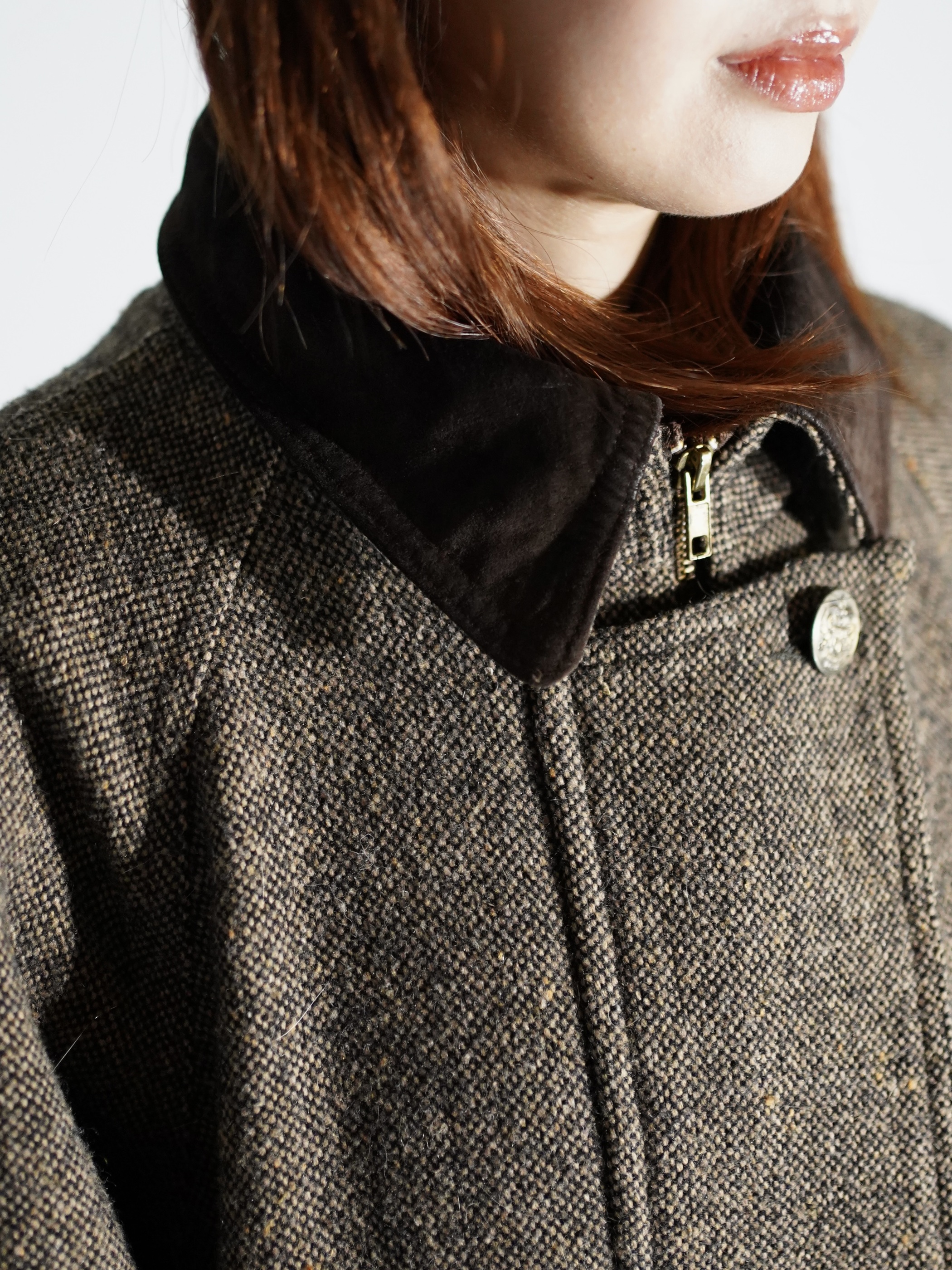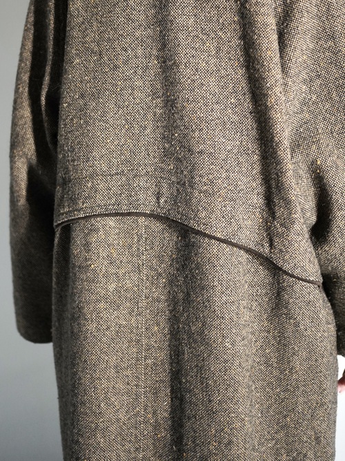 細かなツイードが施されながらもラグランスリーブで肩馴染みも良い1着