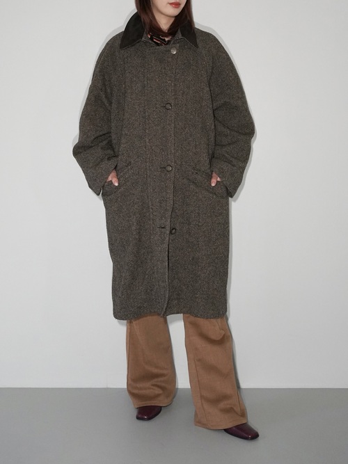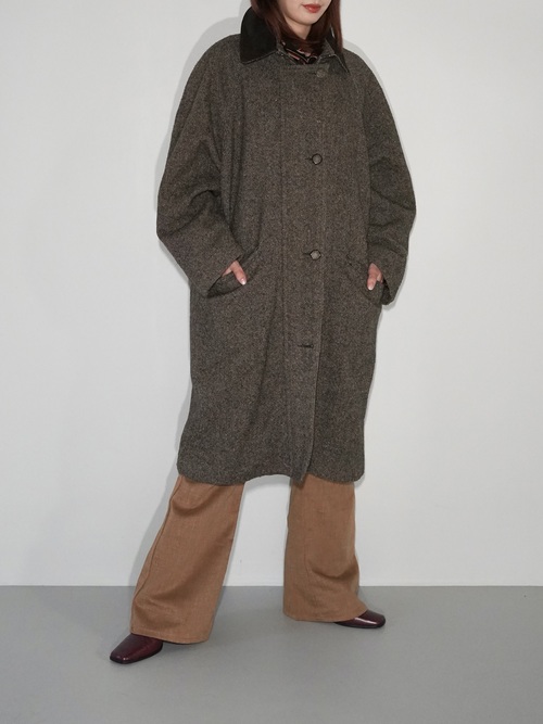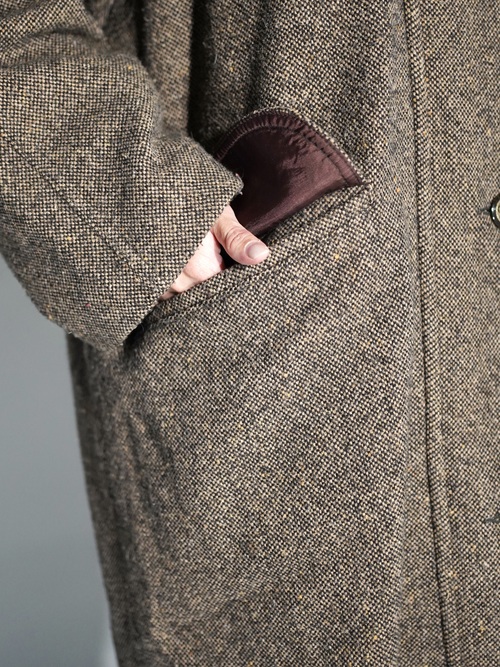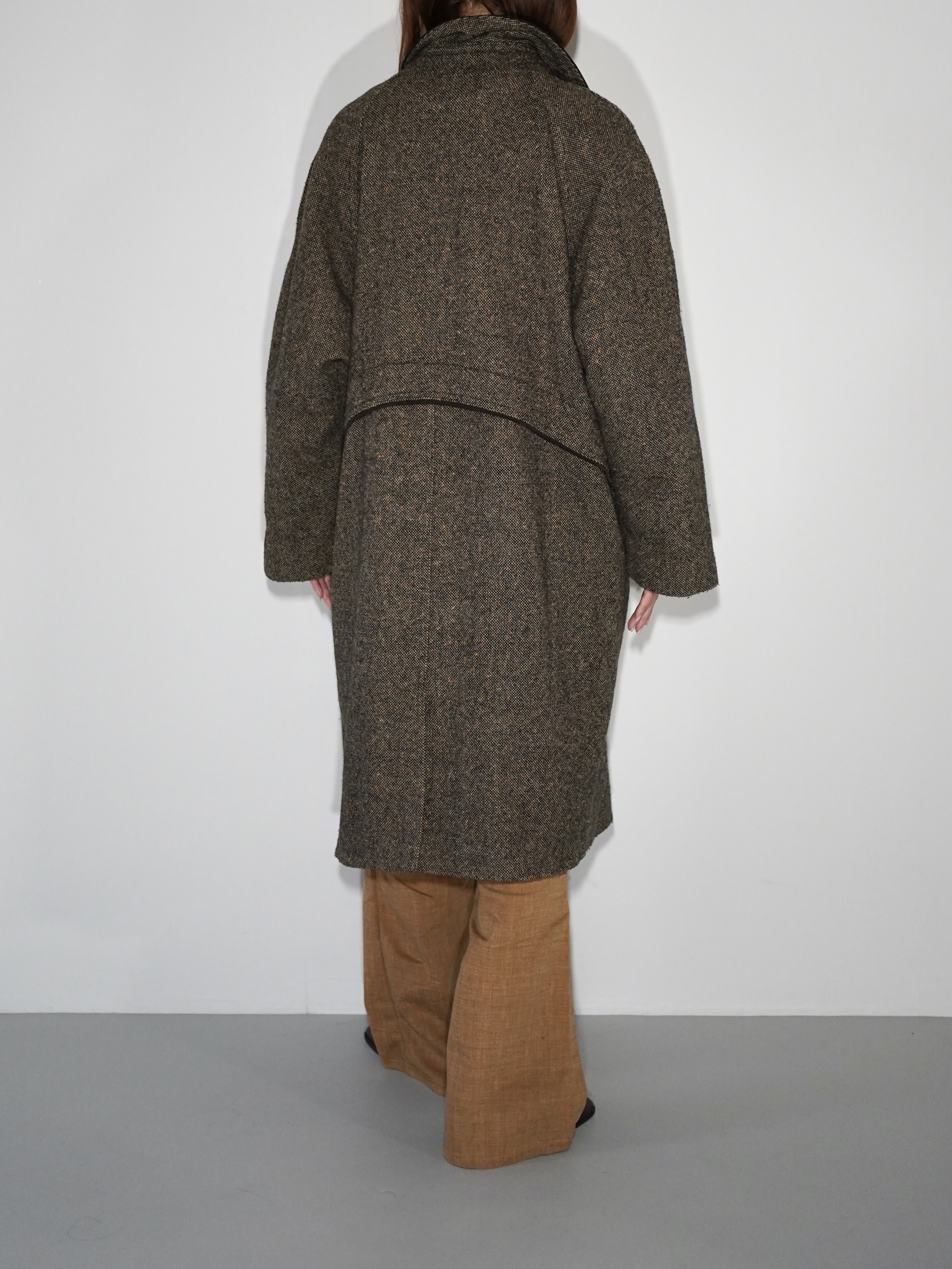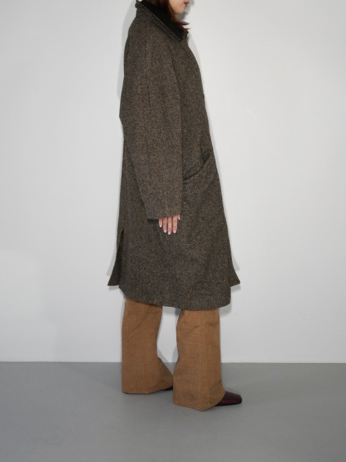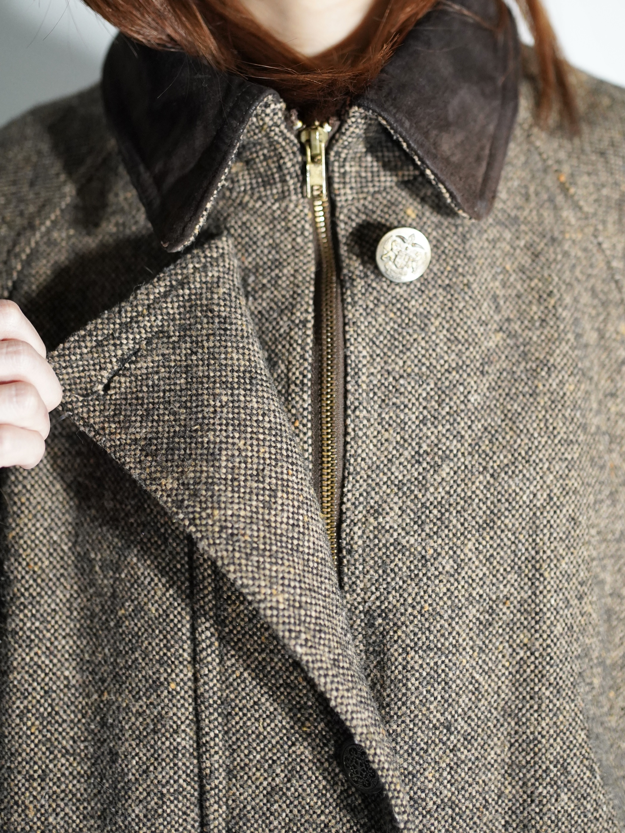 細かなツイードが施されながらもラグランスリーブで肩馴染みも良い1着