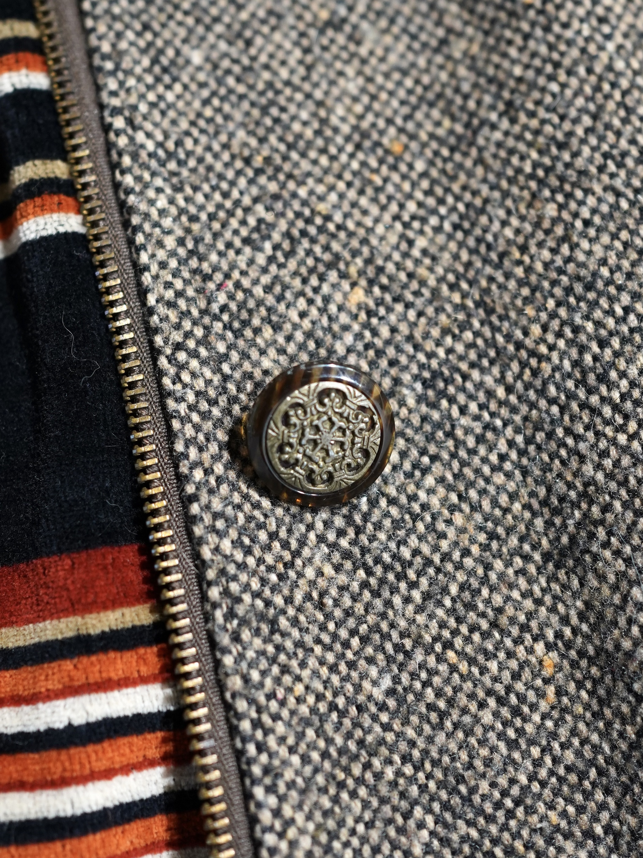 フロントはジップ仕様でラフさを出し、更に装飾の効いたボタンを使用した比翼仕立て。