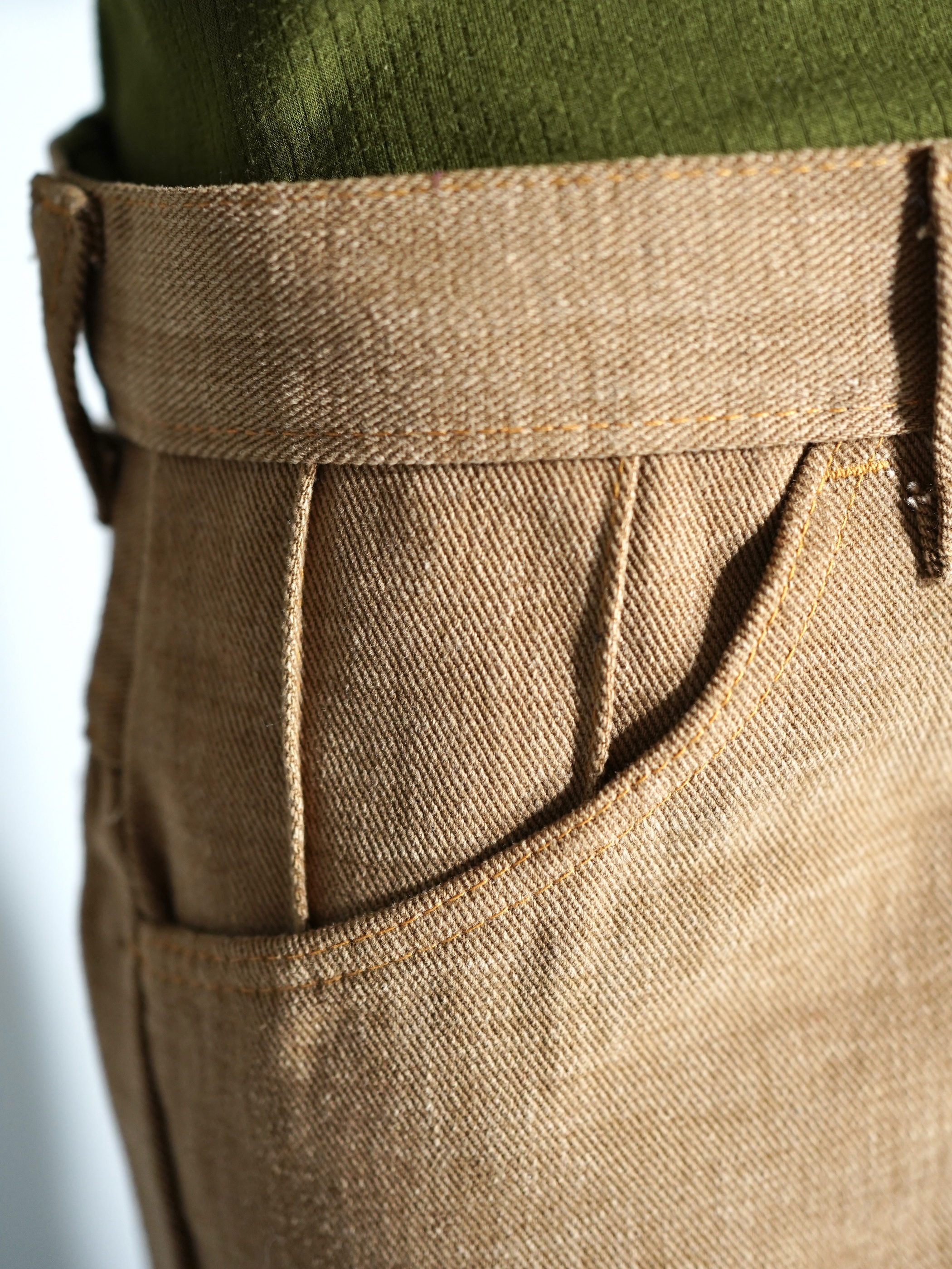 前ポケットにタック、左ワタリにはステッチ?伝線?が入ったデザイン