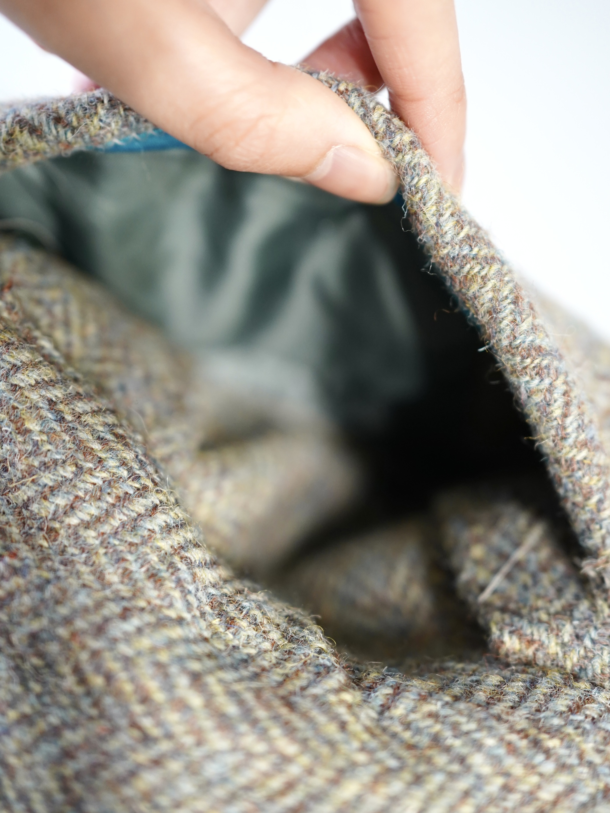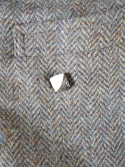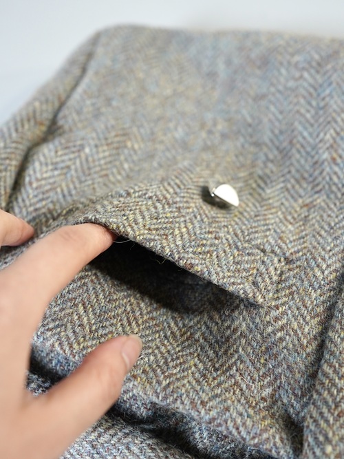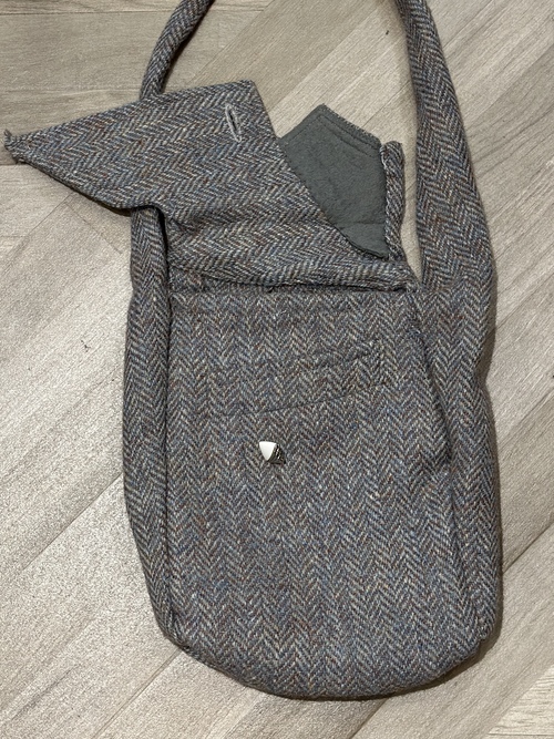 このいびつな形のバック、良く見るとテーラードを解体して作っております。