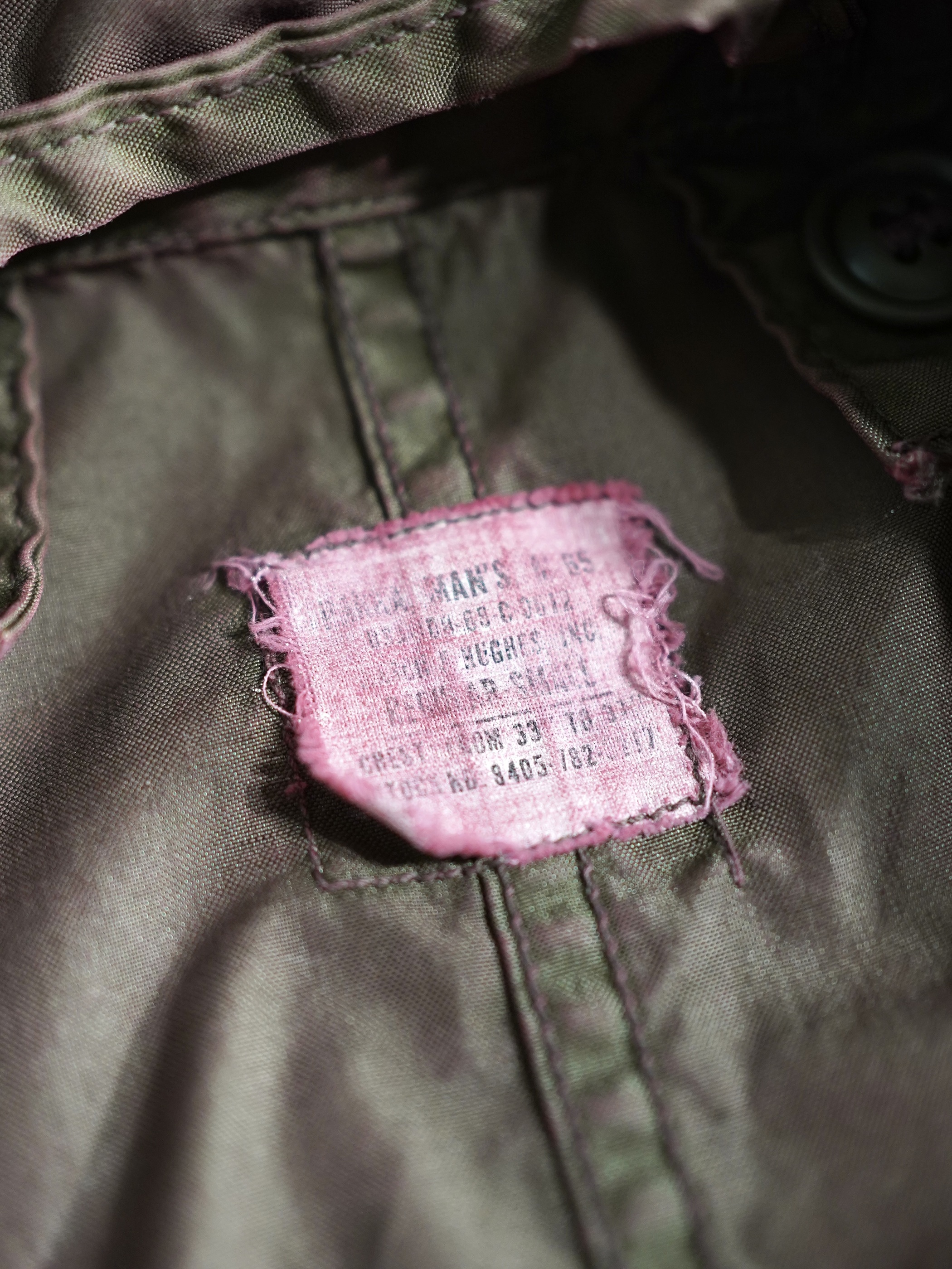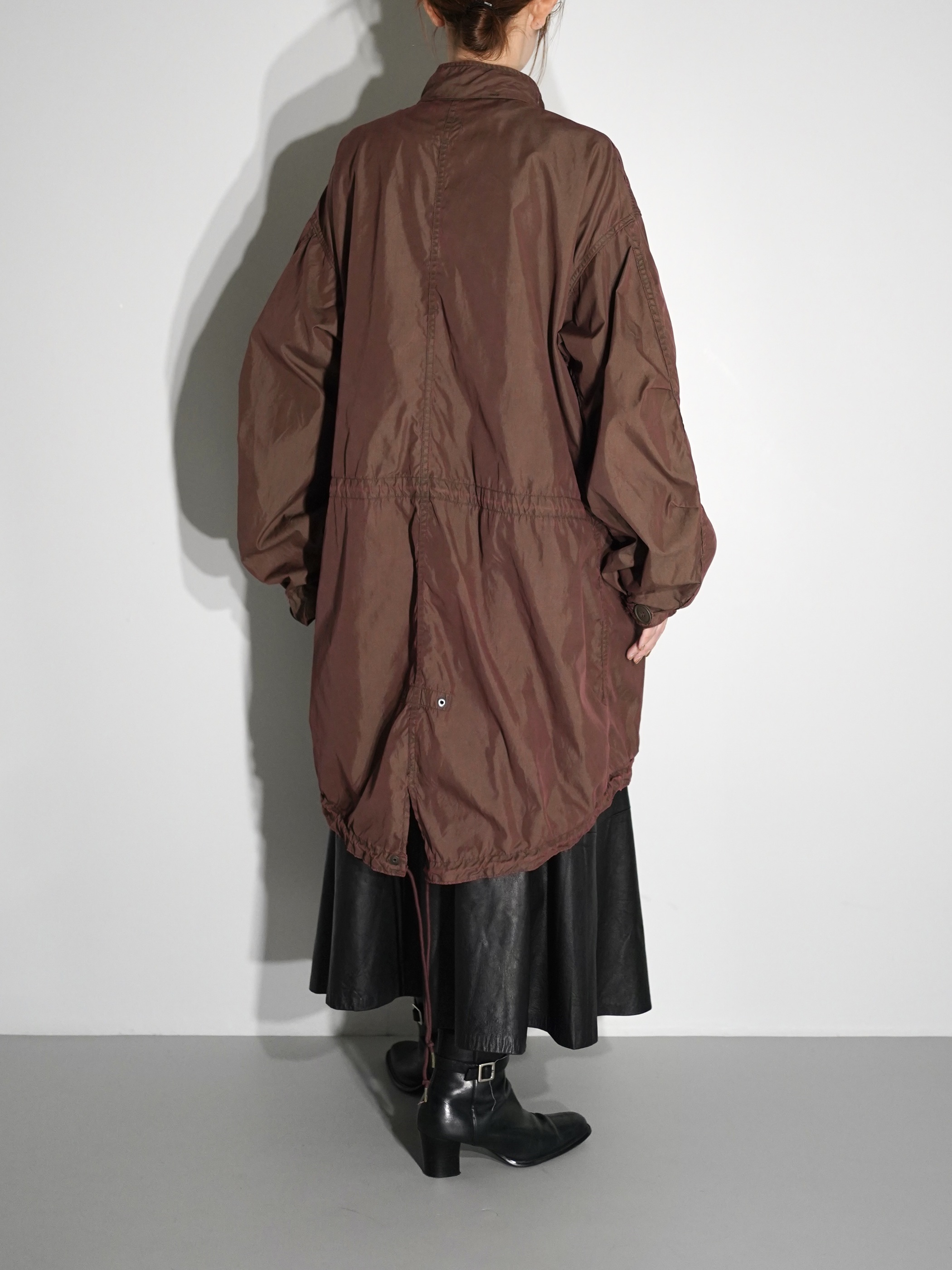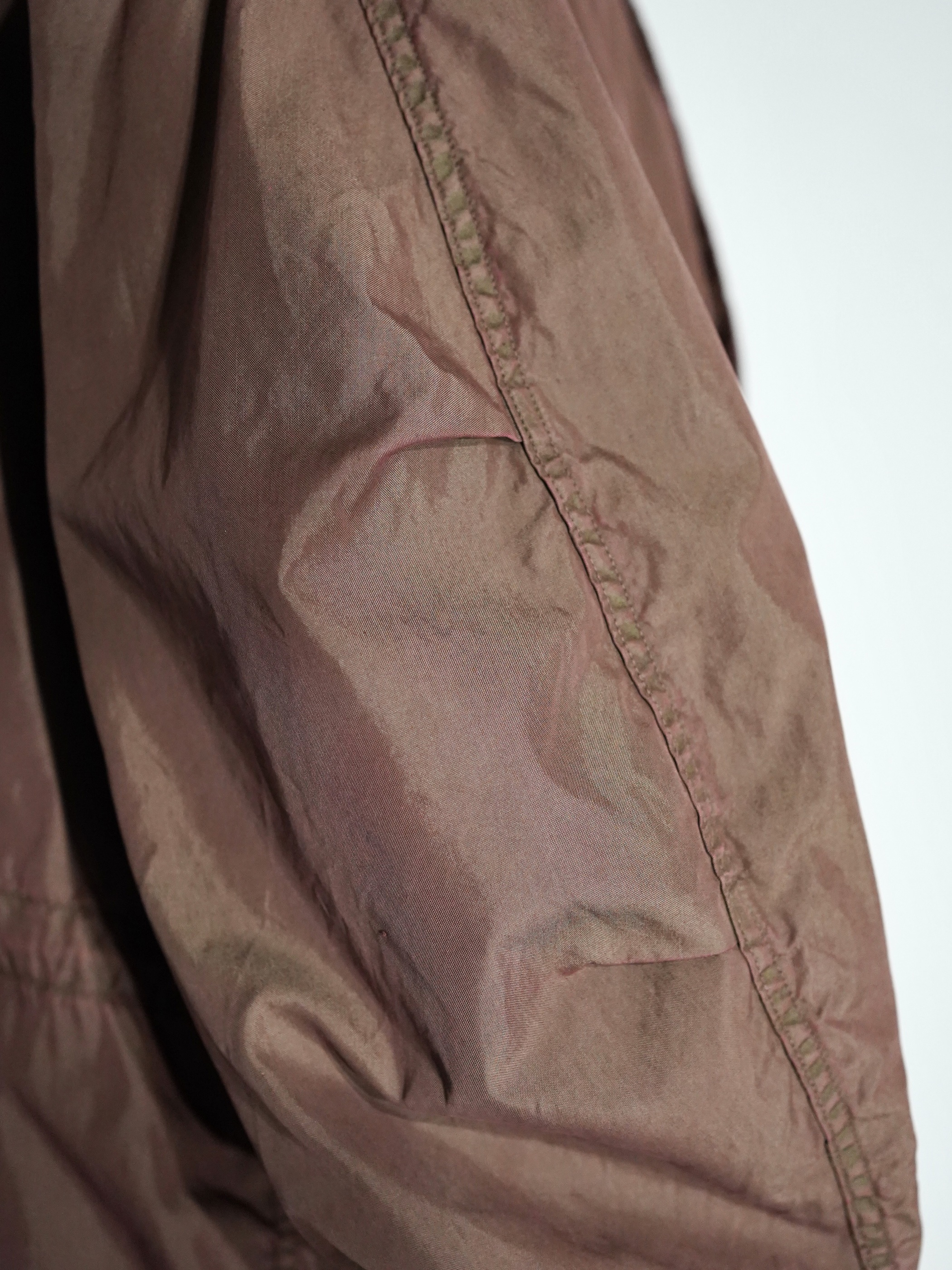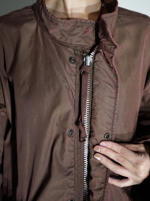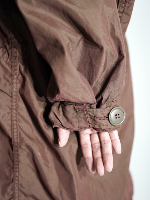 モッズ本体の状態(色味)を大事にするため、染色で色を潰すのでなく、生地を傷めないよう温度調節、染色剤の配合など細かに変えることで元々のオリジナルの色を潰さず、上から色を乗せる感覚で生まれるバランスを大切にしております。