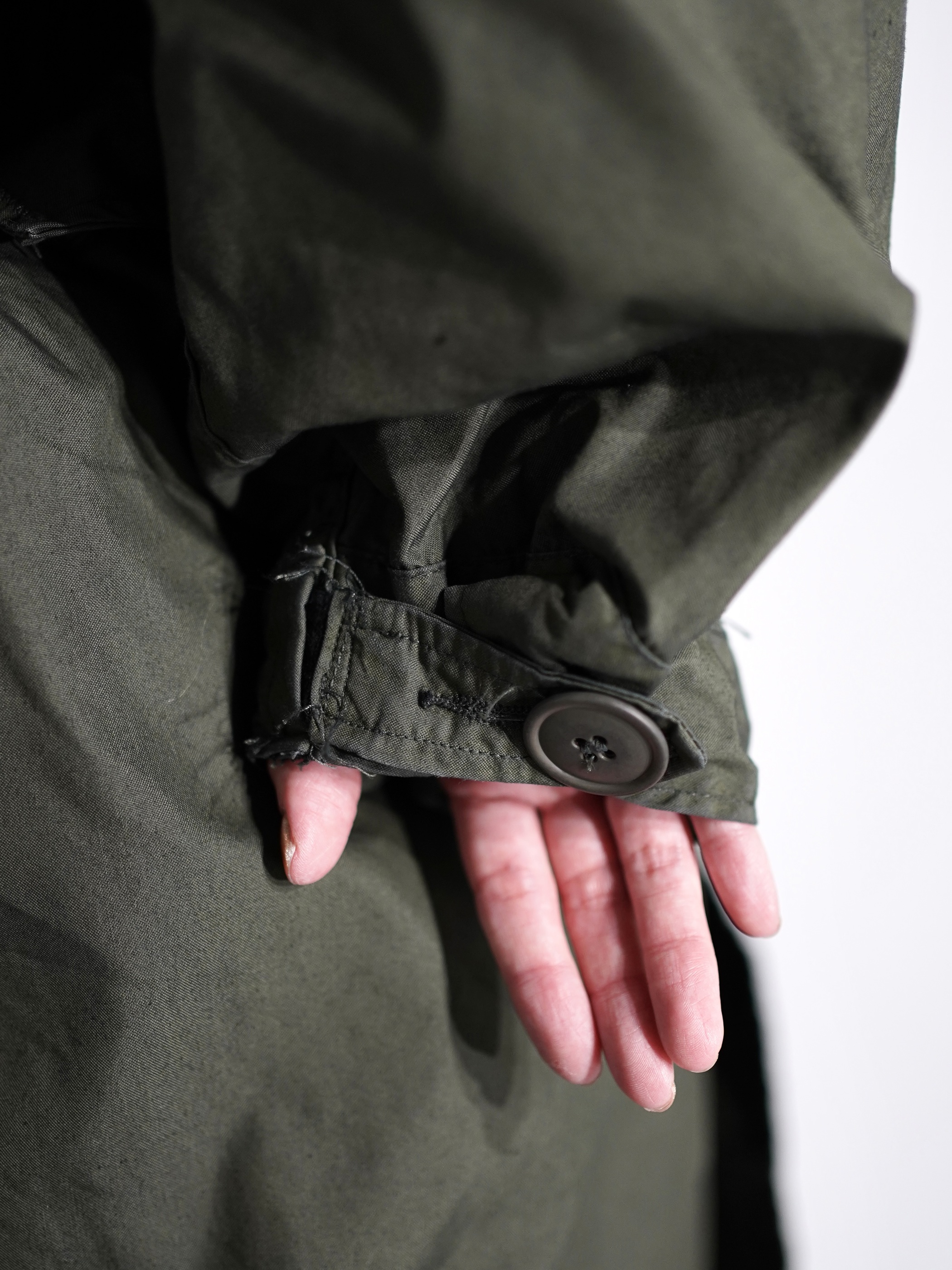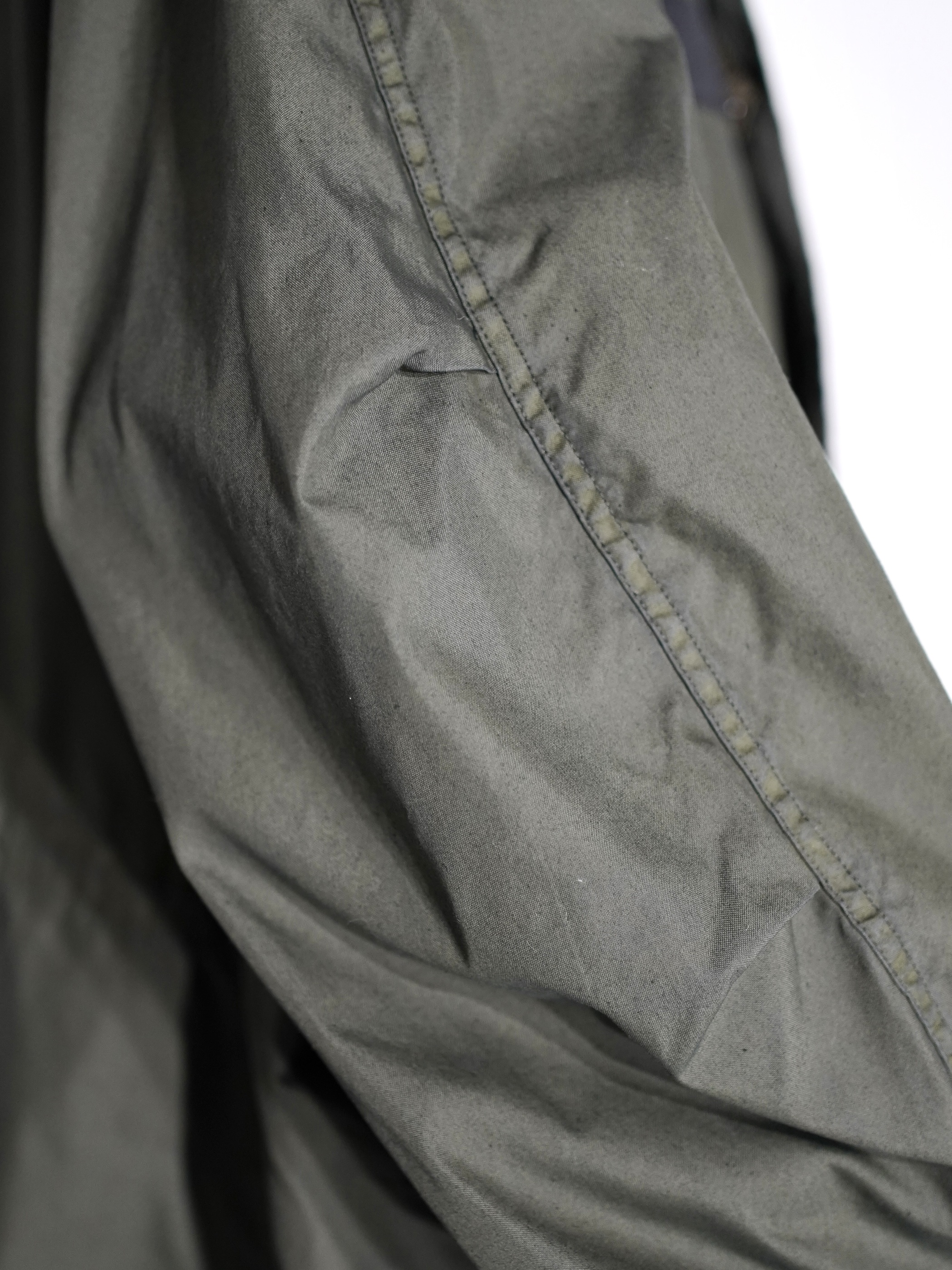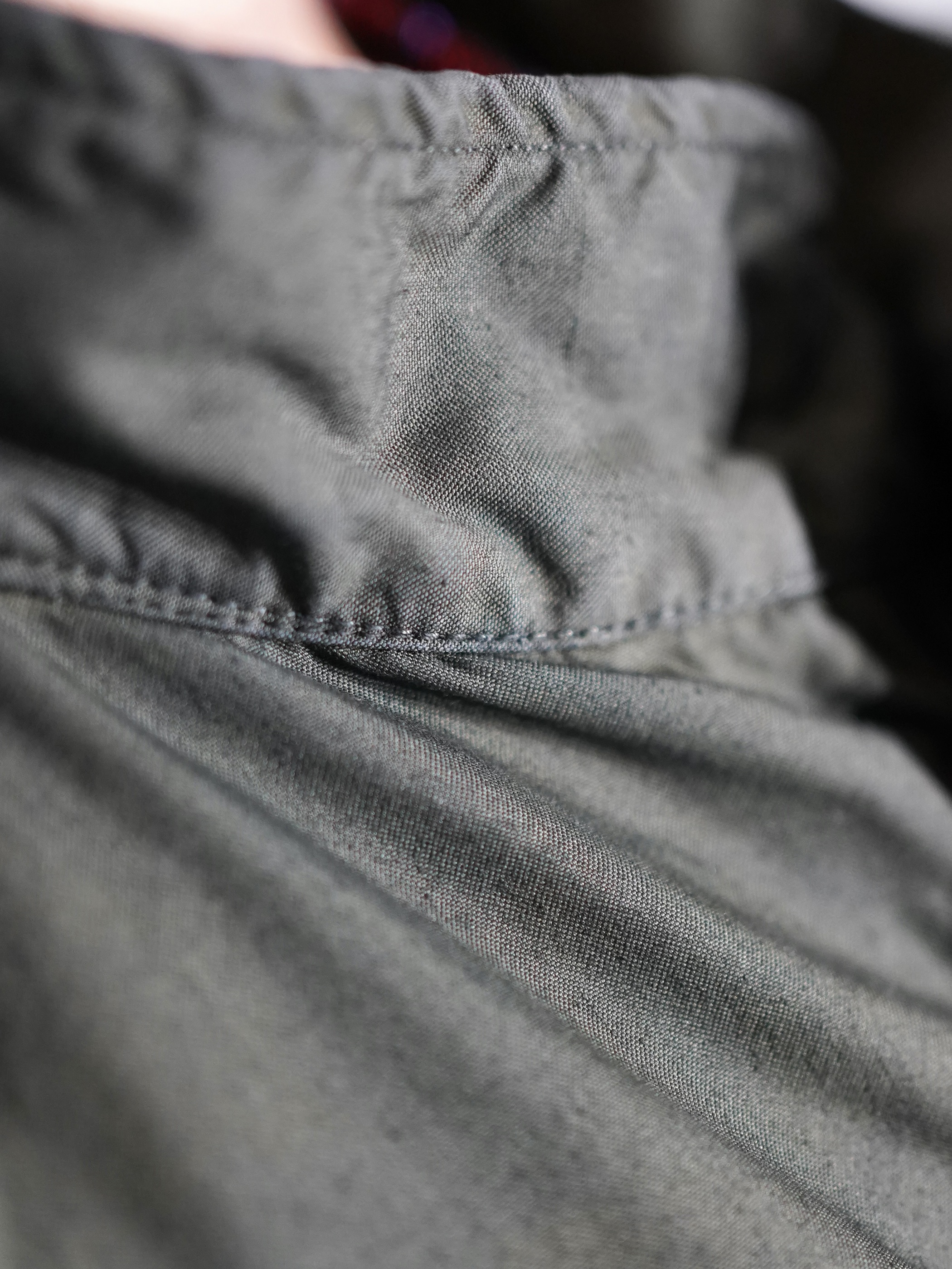 モッズ本体の状態(色味)を大事にするため、染色で色を潰すのでなく、生地を傷めないよう温度調節、染色剤の配合など細かに変えることで元々のオリジナルの色を潰さず、上から色を乗せる感覚で生まれるバランスを大切にしております。