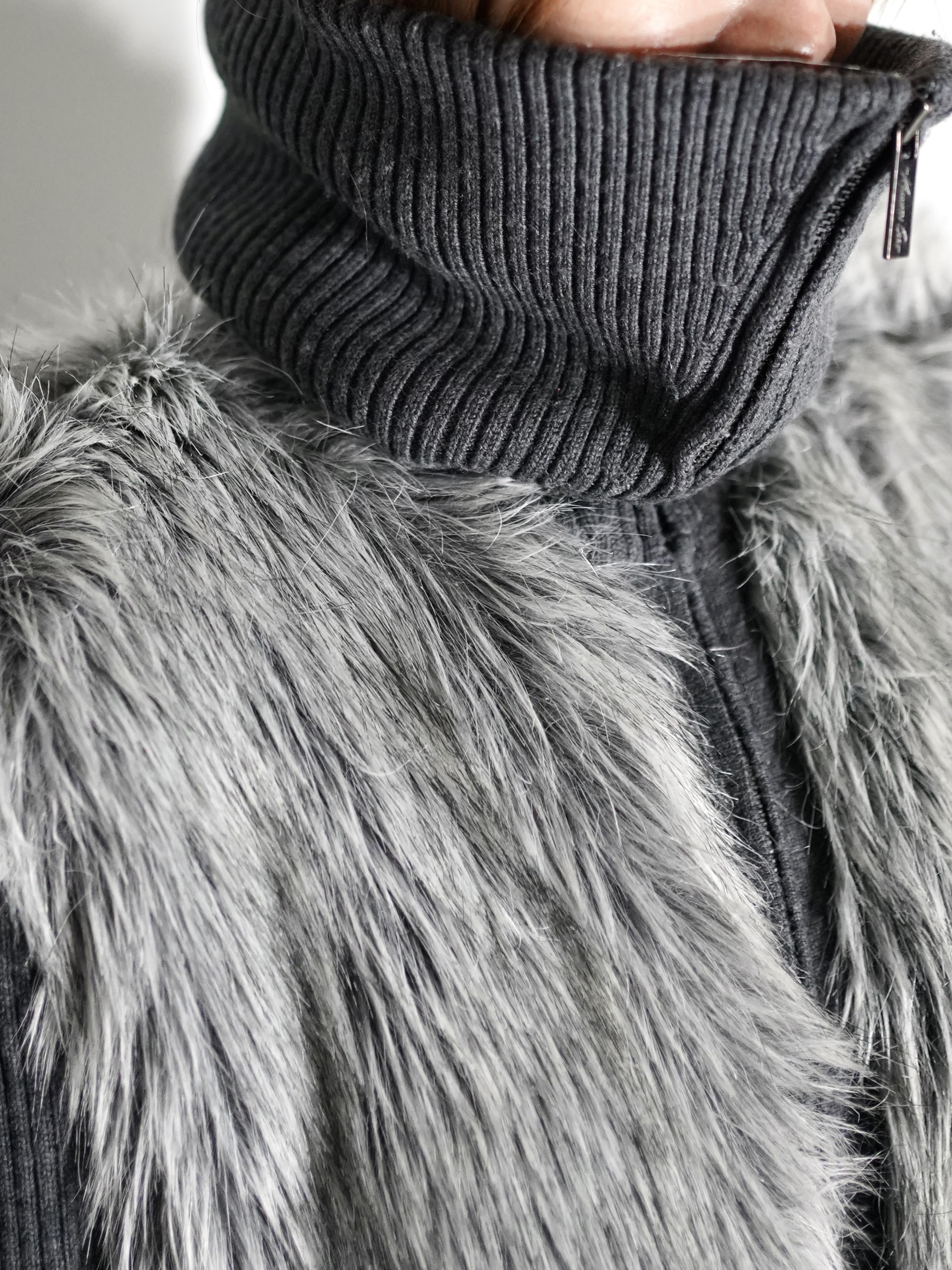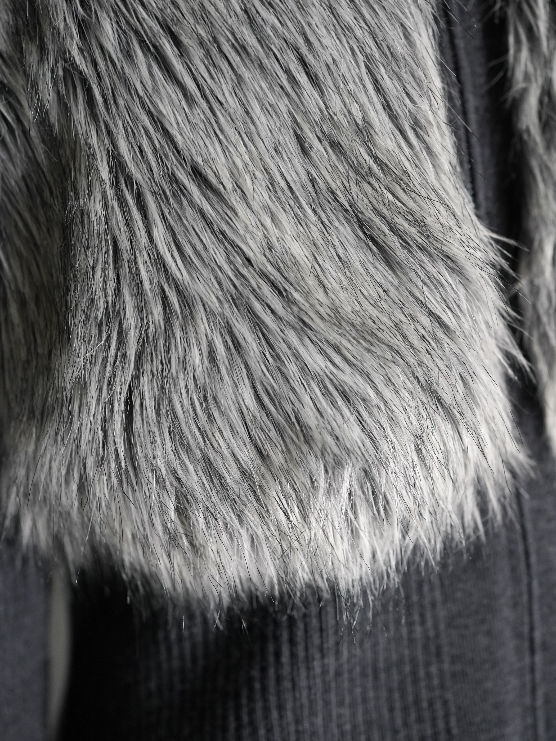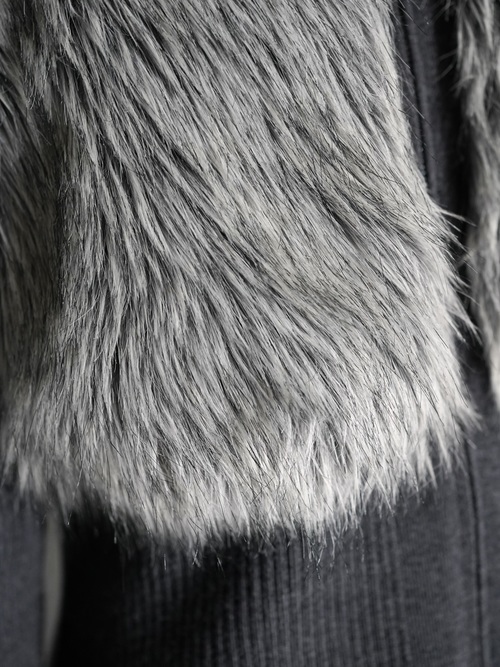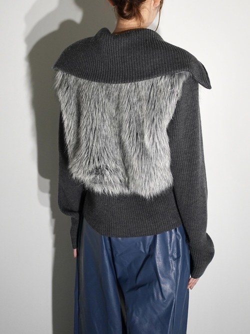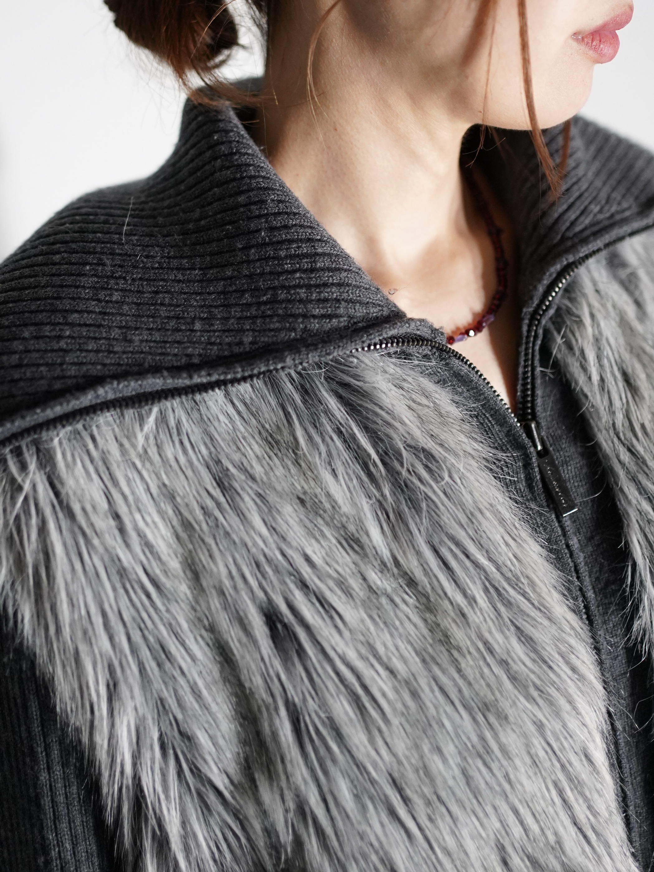 短丈のファーベストをレイヤードしているかの様なデザインのリブニットジャケット