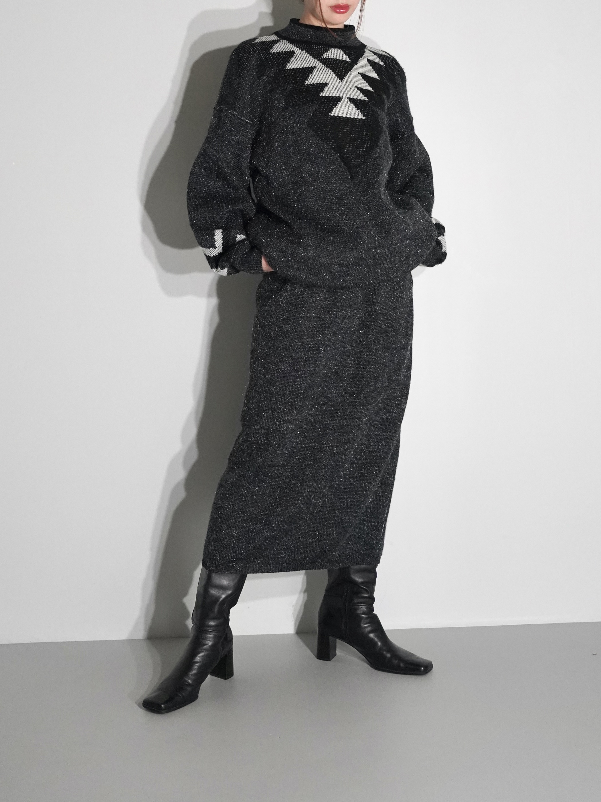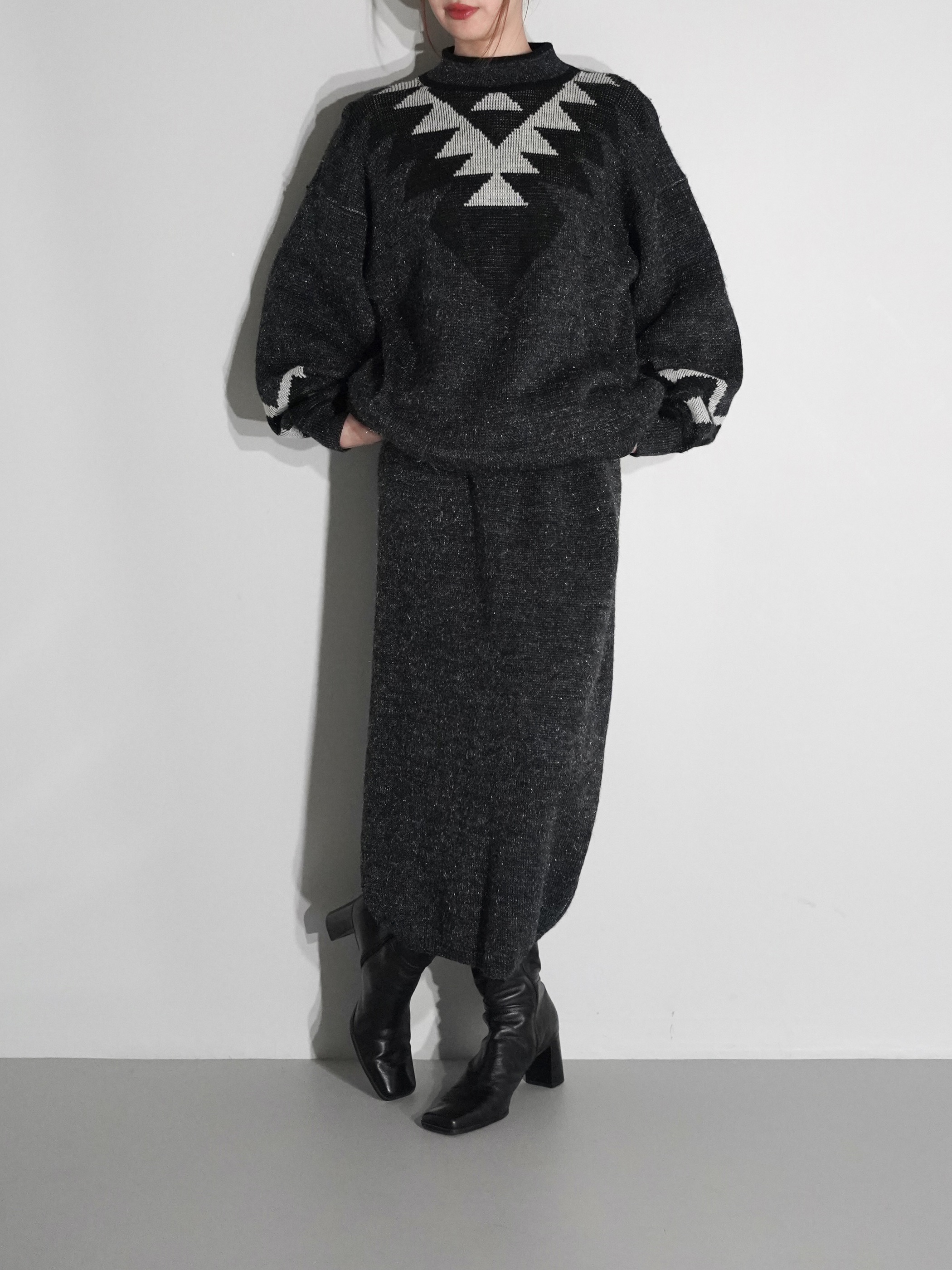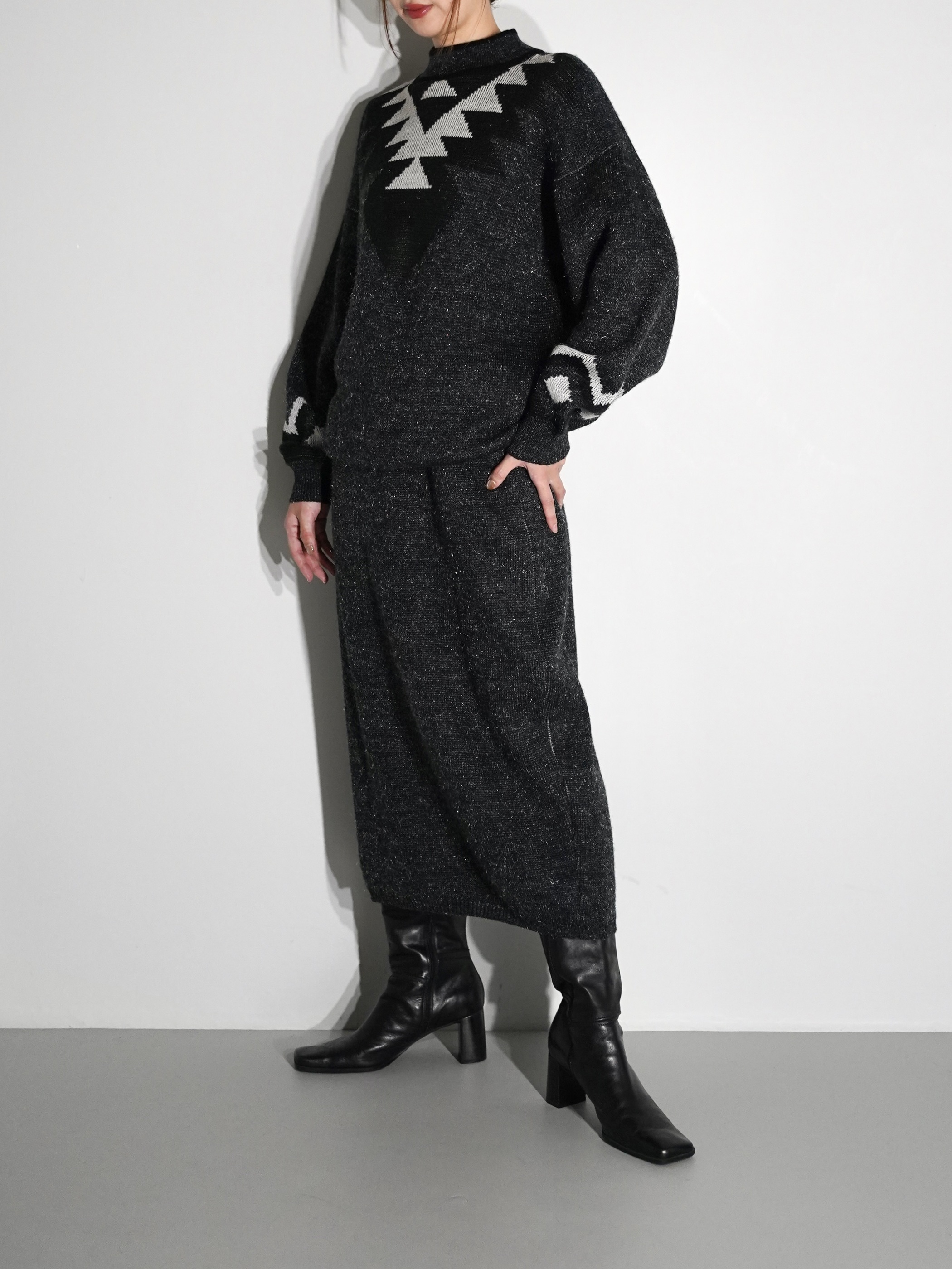 1980s Native Pattern Glitter Knit & Skirt Set up