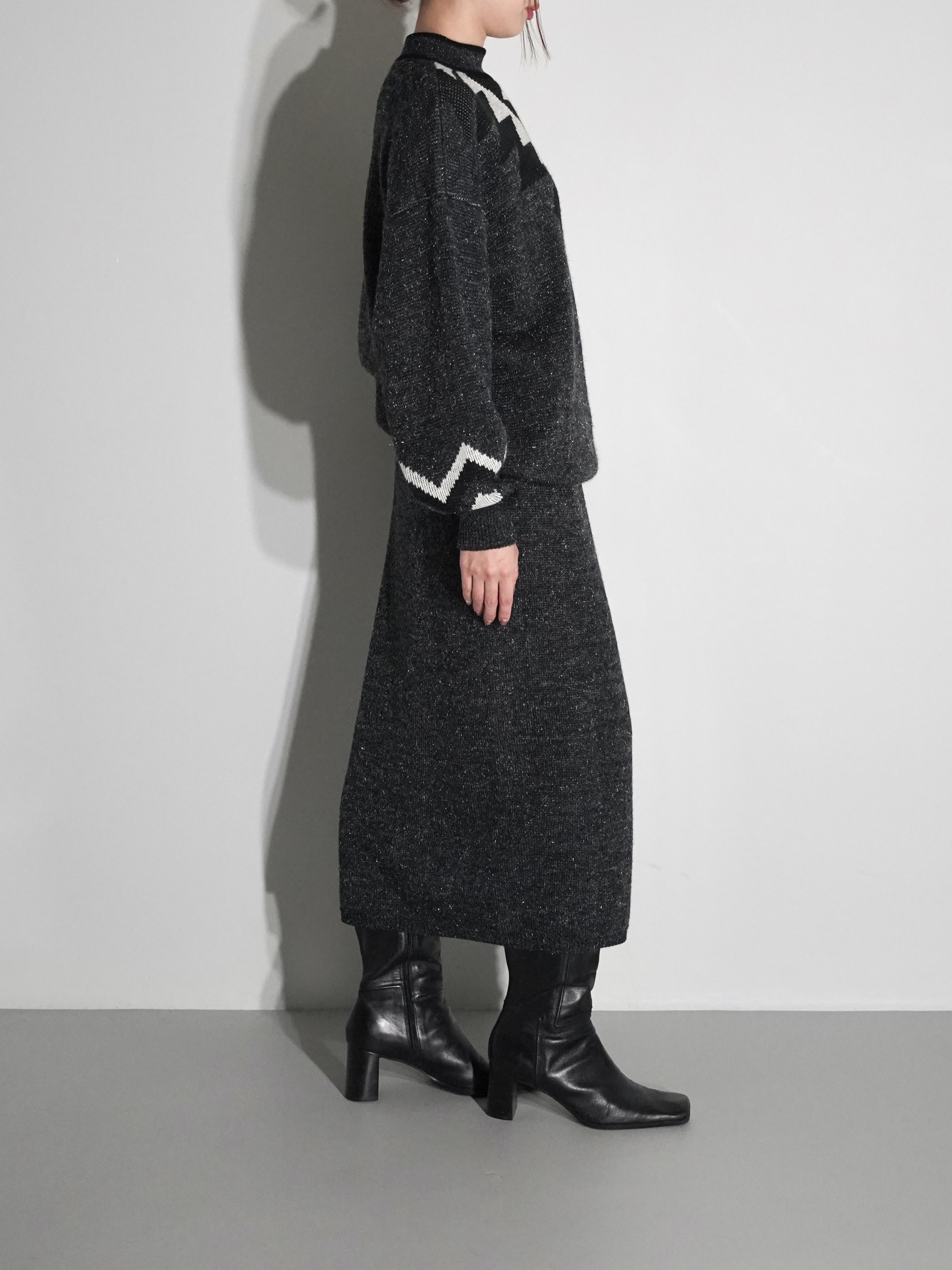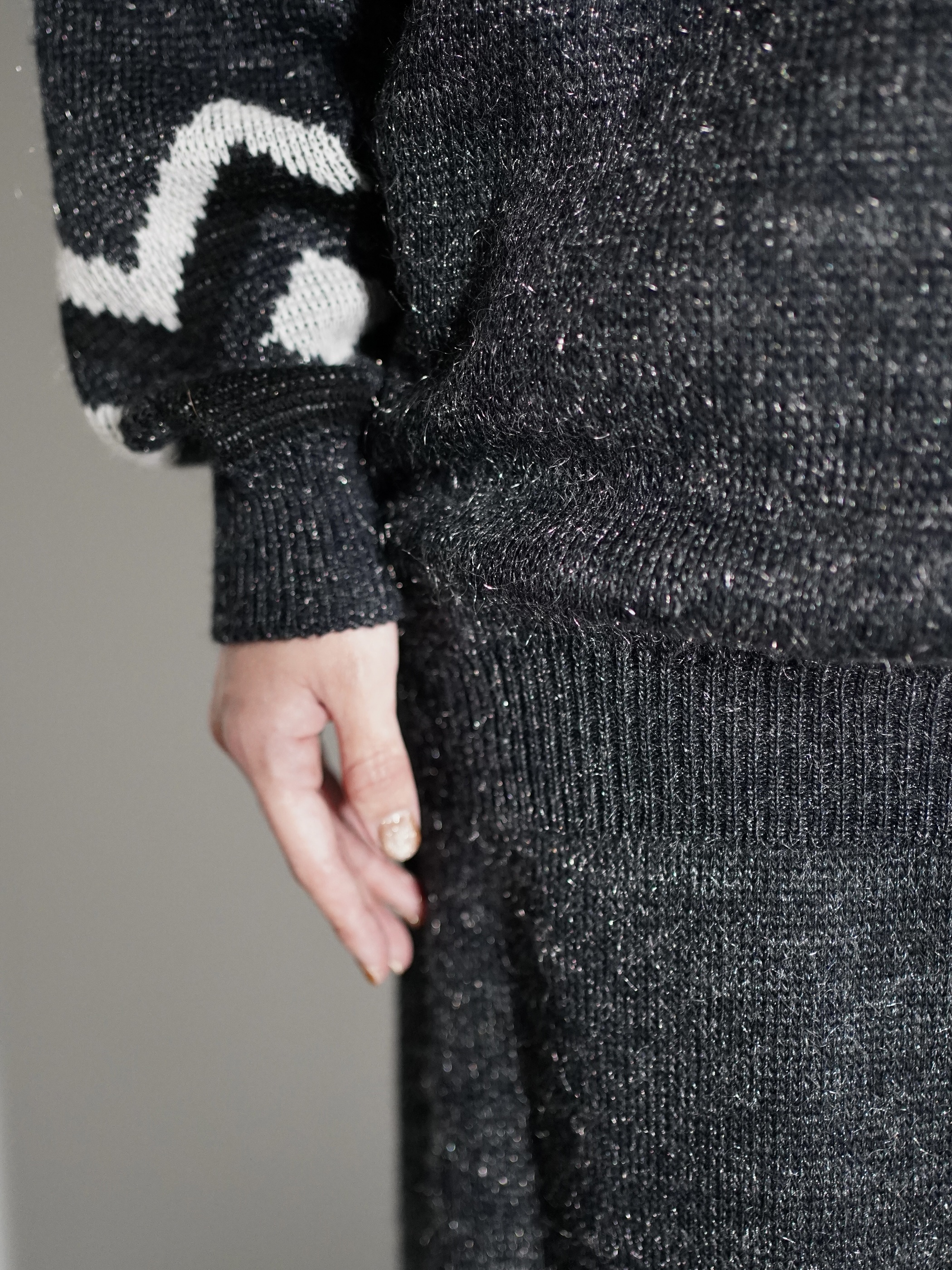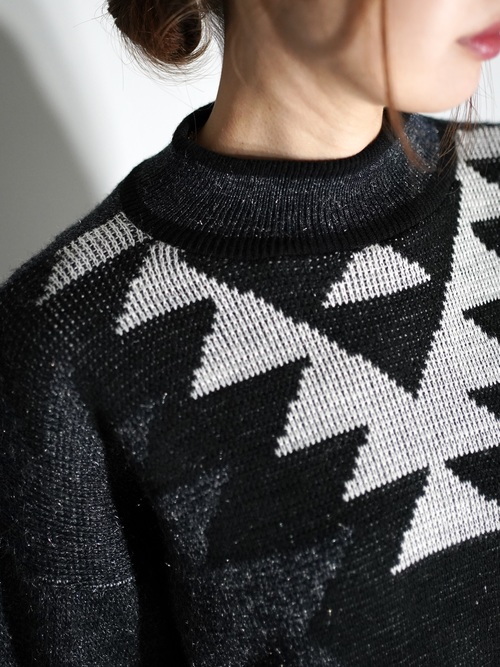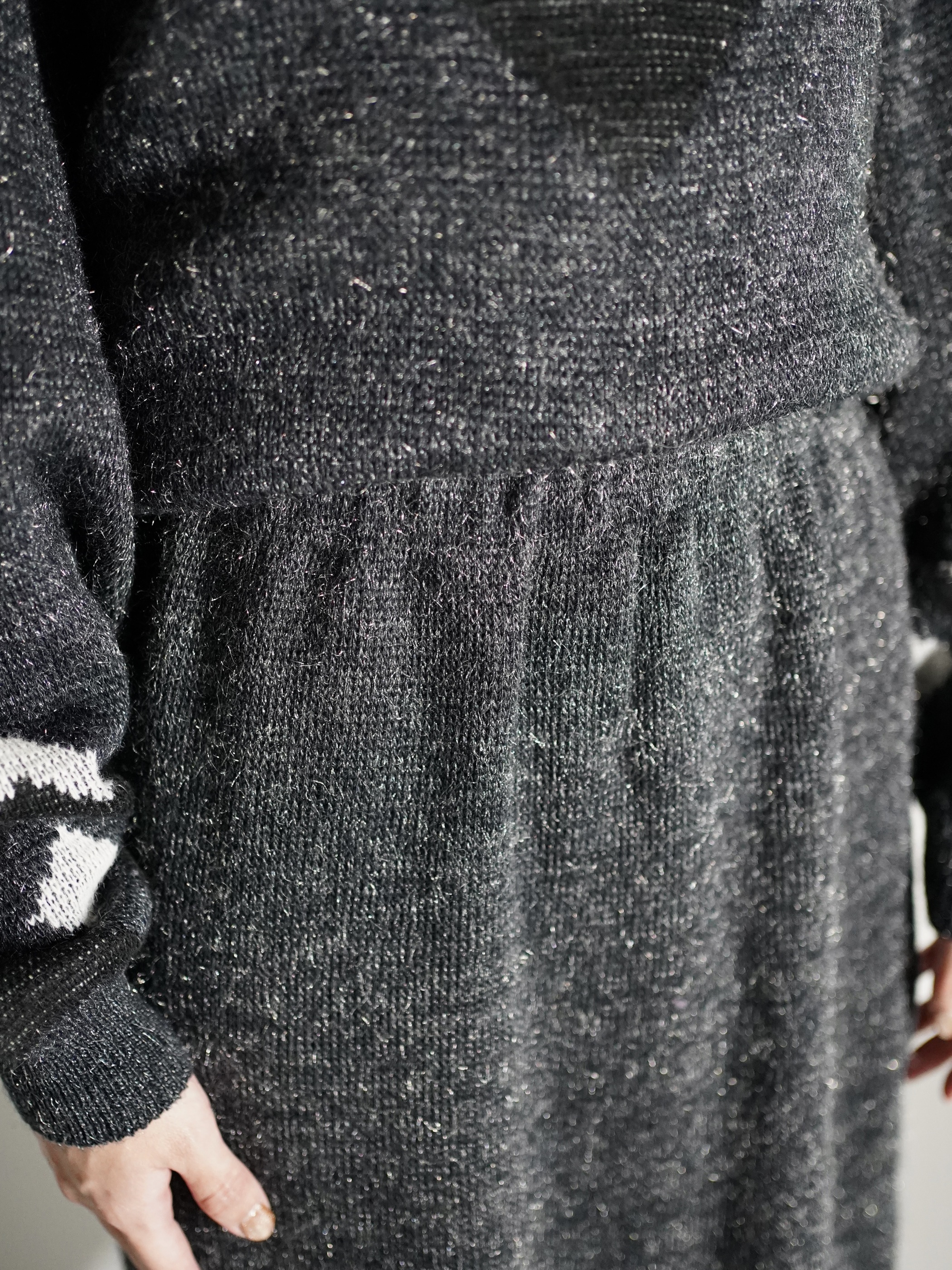 1980s Native Pattern Glitter Knit & Skirt Set up