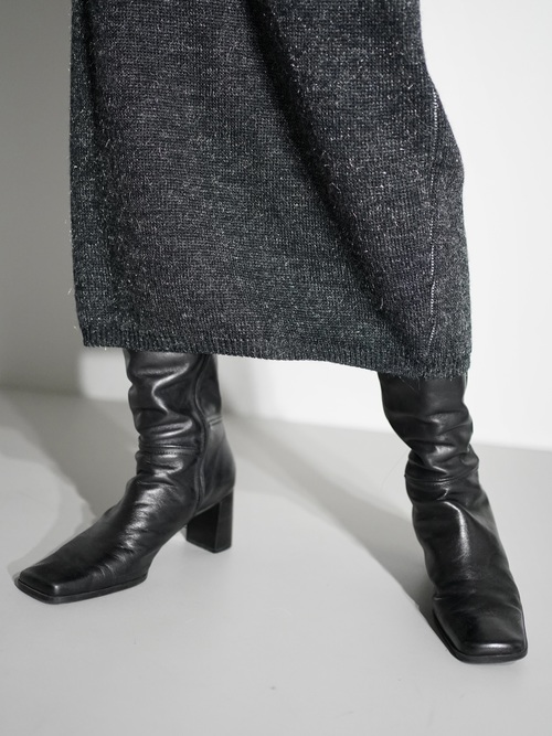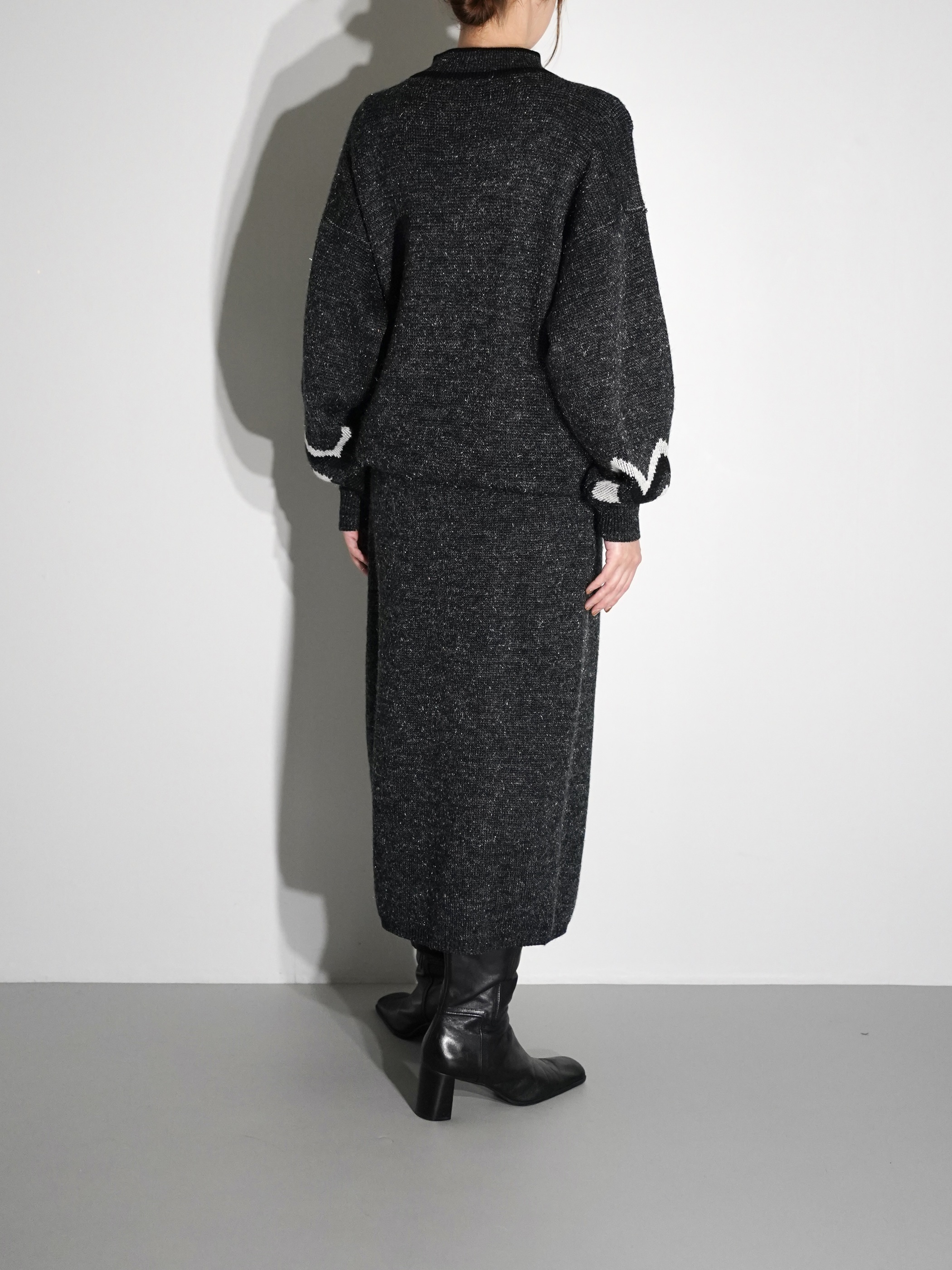 スカートは裾にリブが施され、ミディ丈のややコクーンシルエット