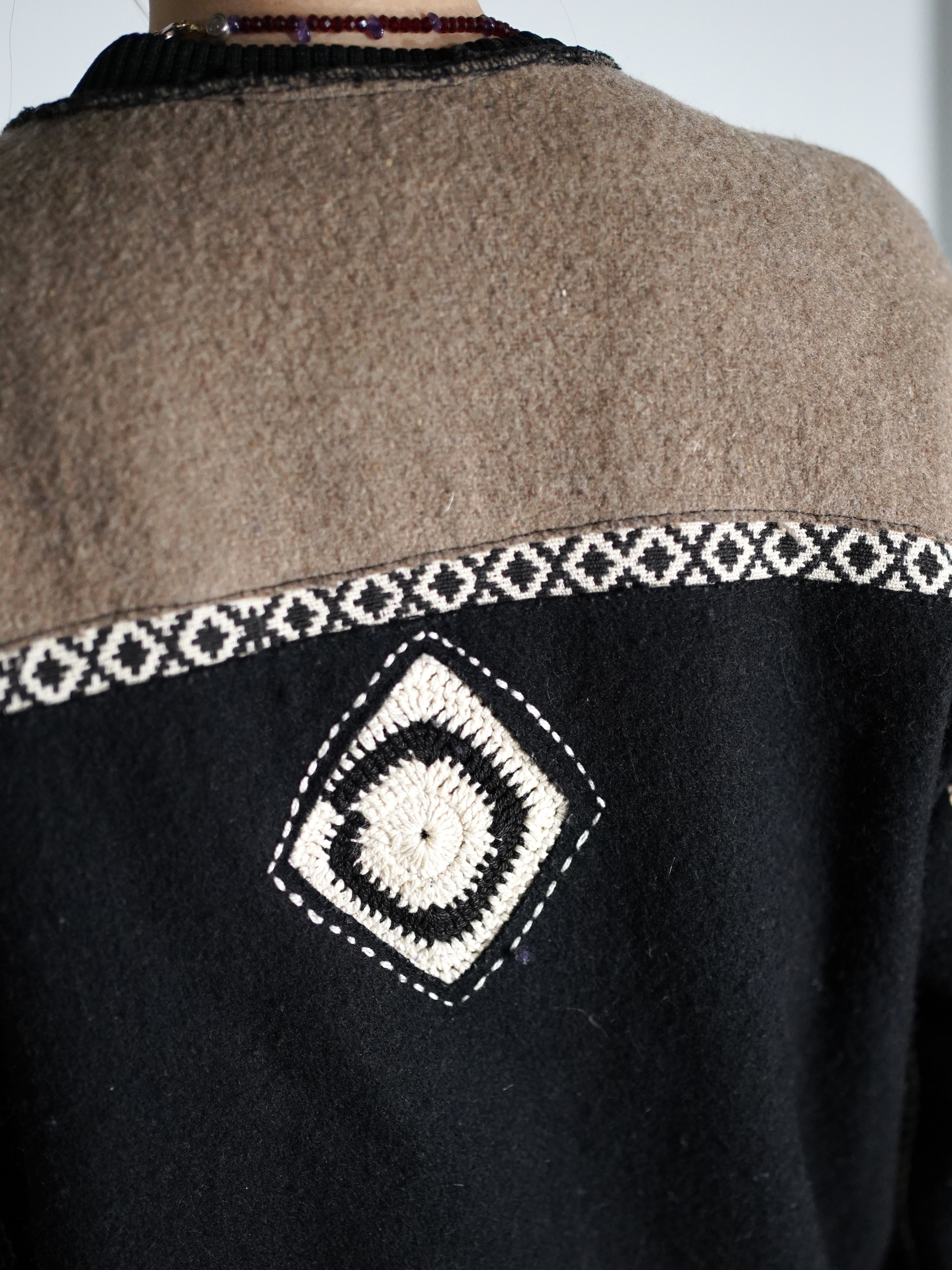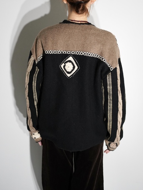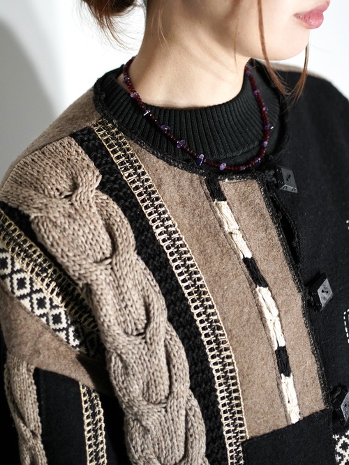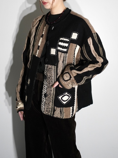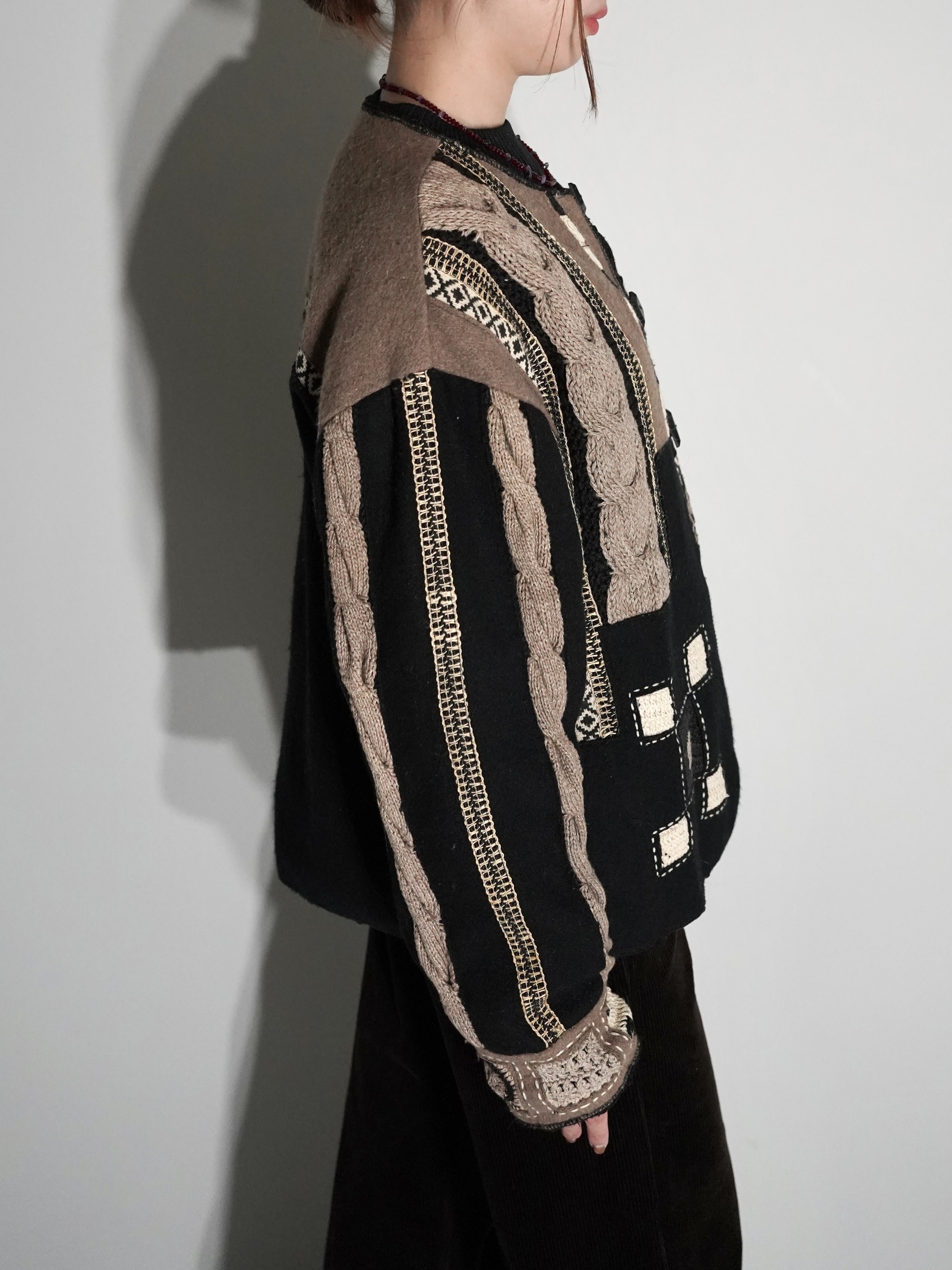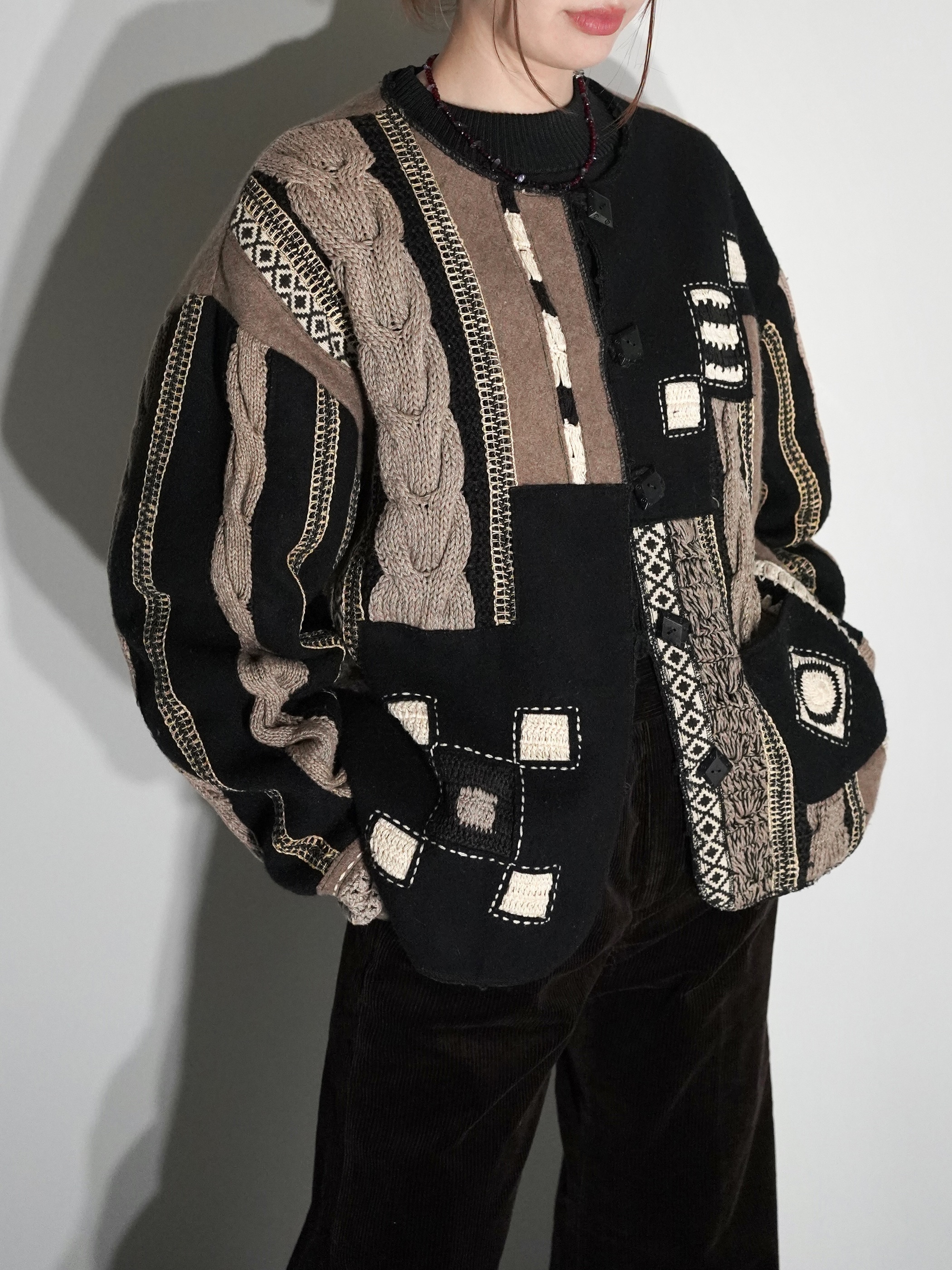1990s Embroidery & Cable Knit Asymmetry Design Wool Jacket