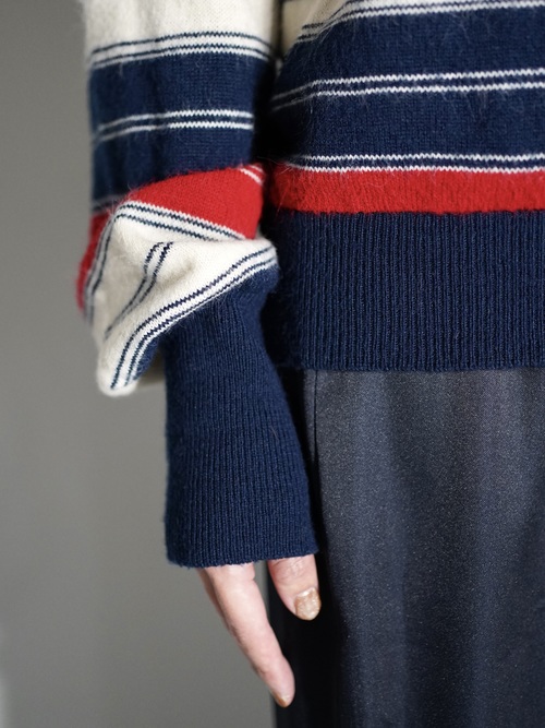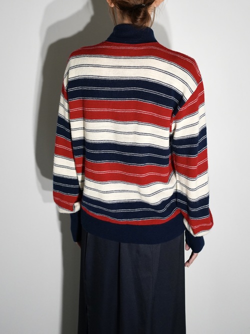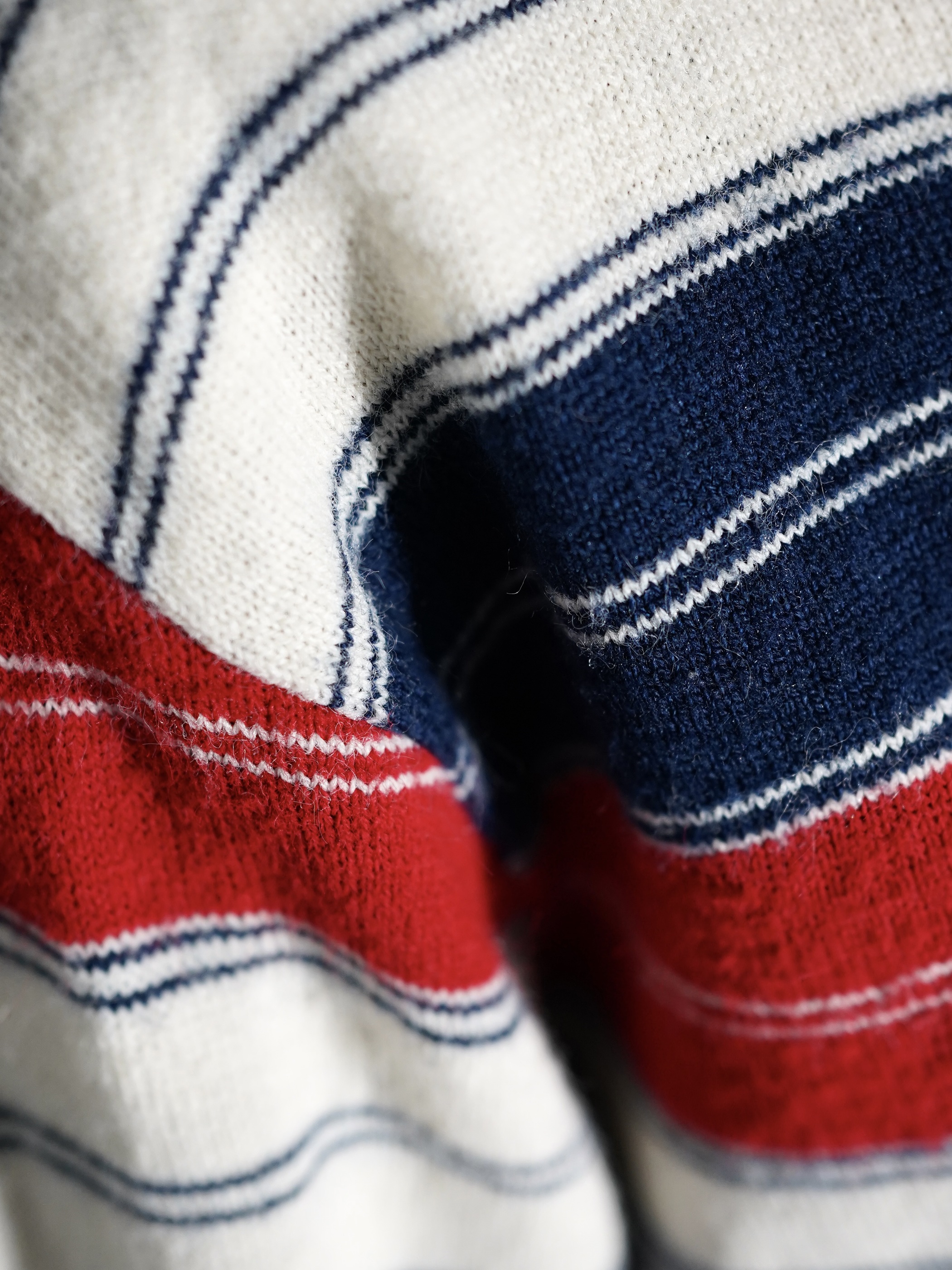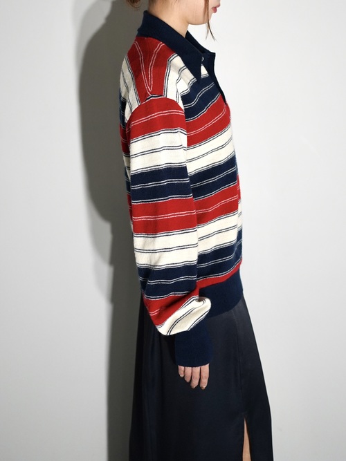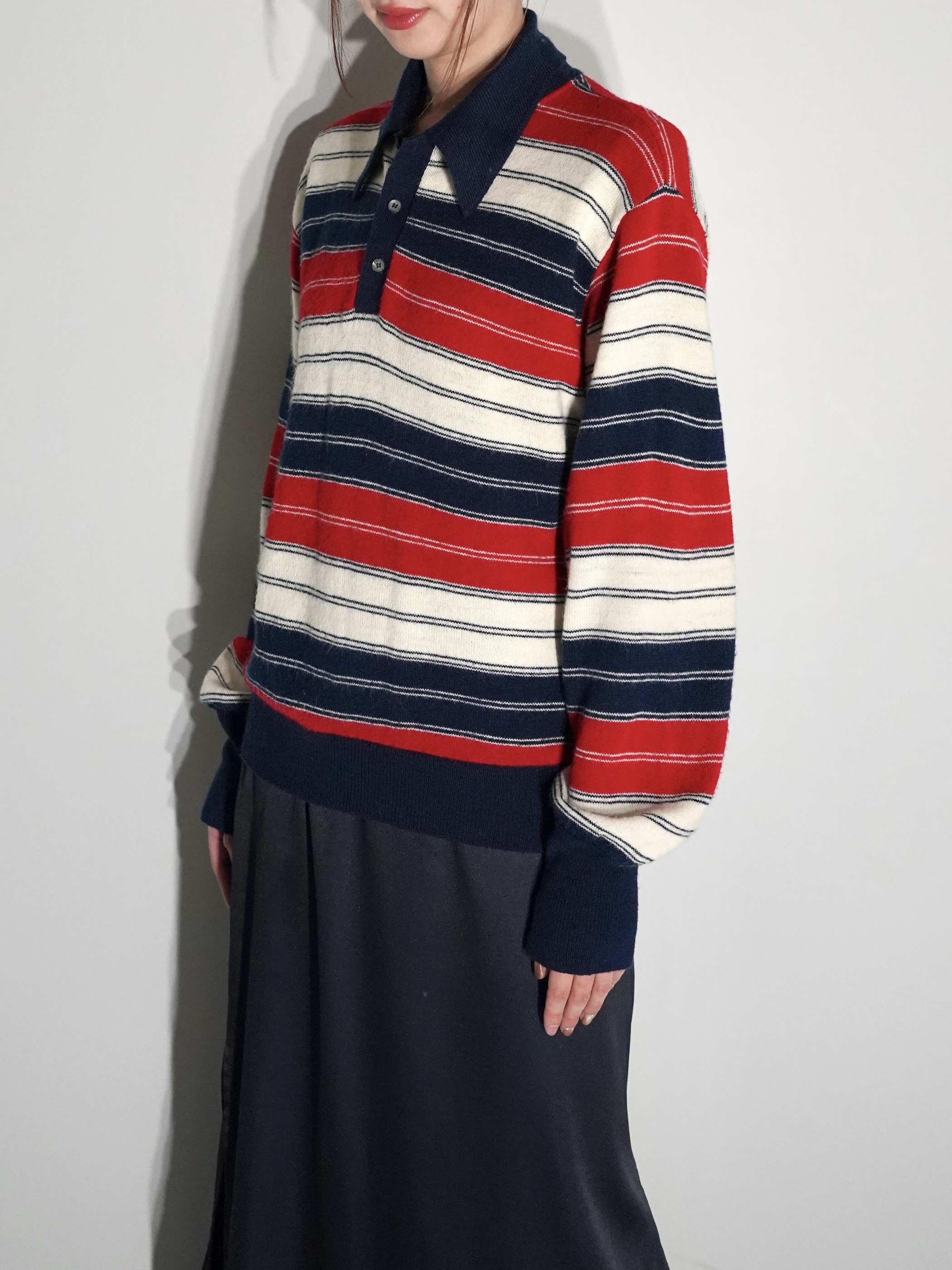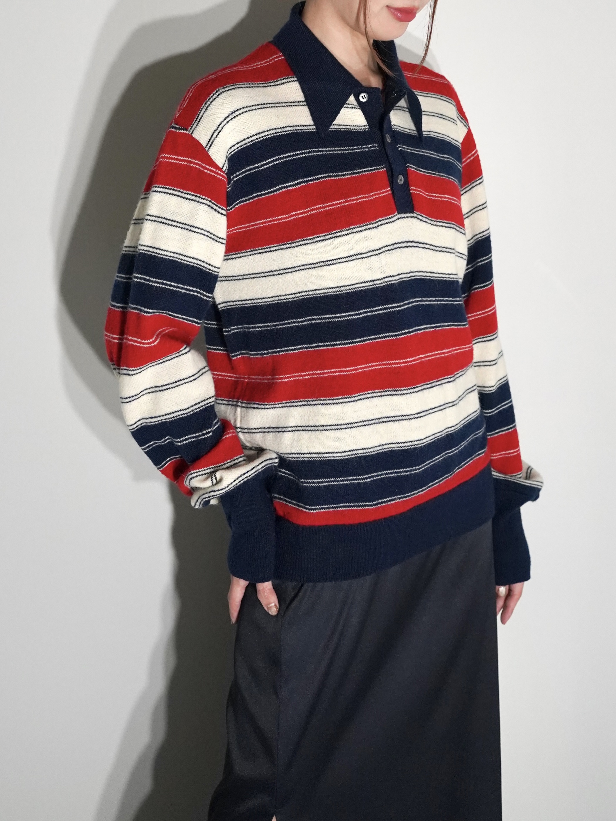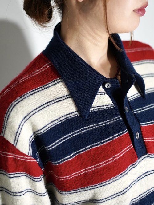 70年代らしい襟にトリコロールカラーが印象的なポロニット。