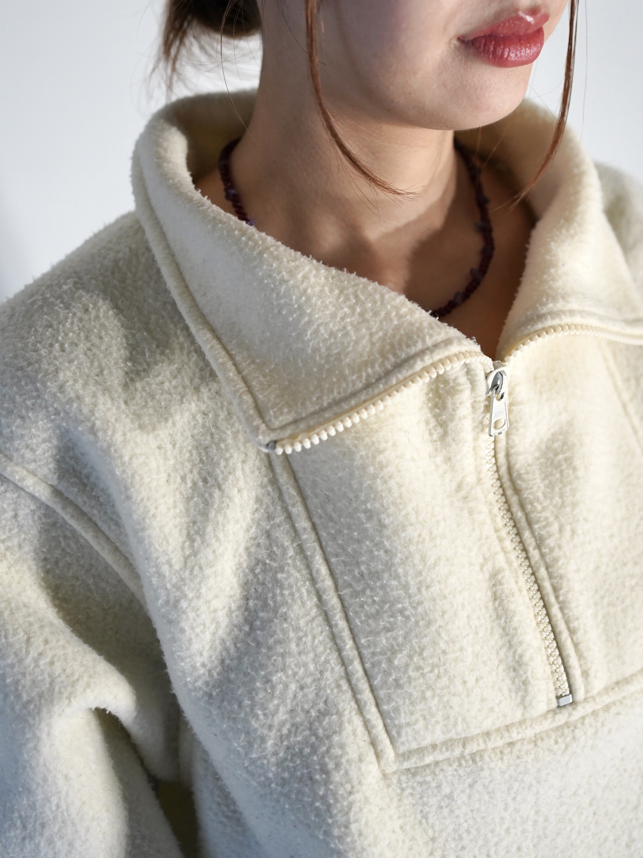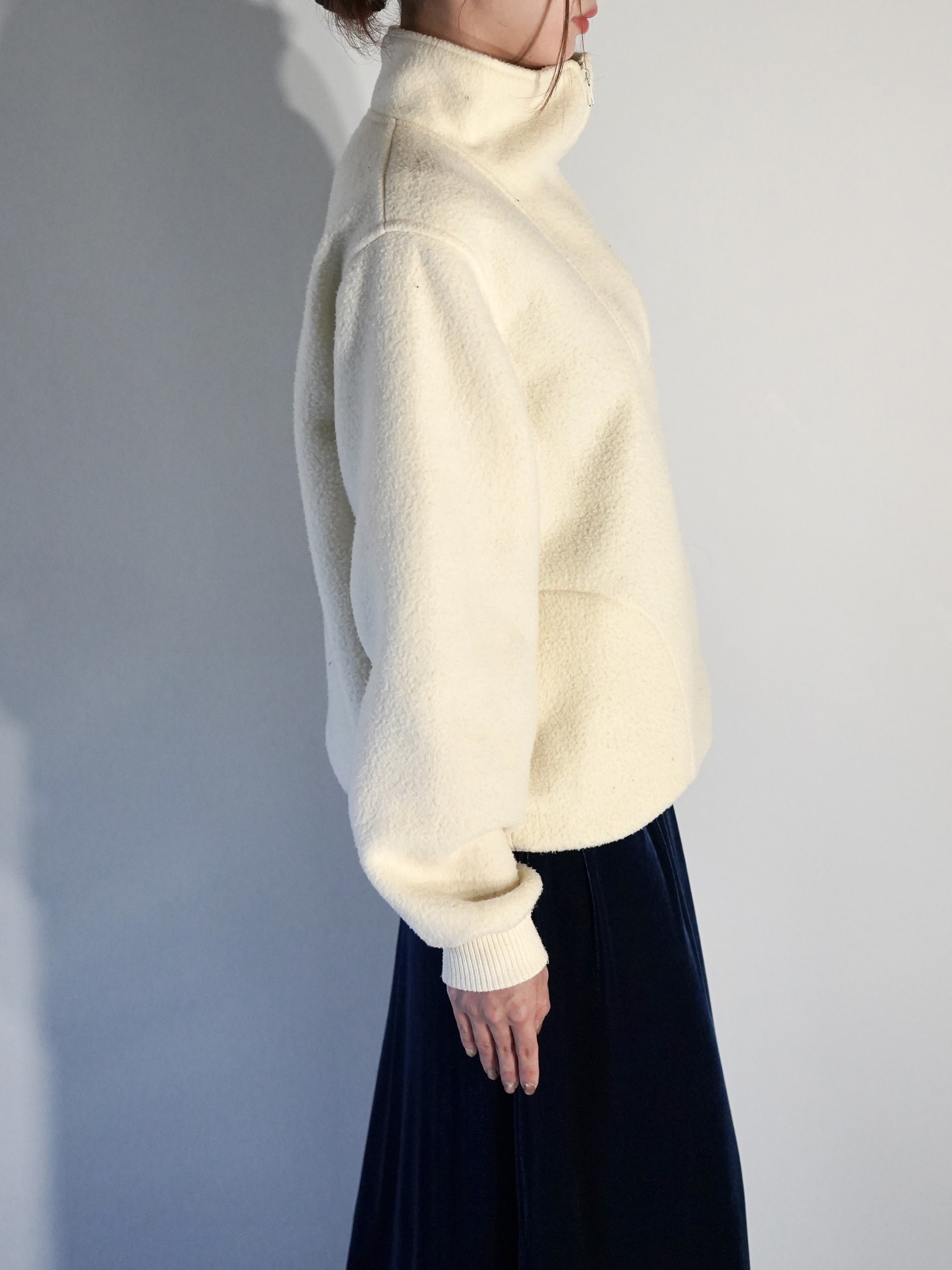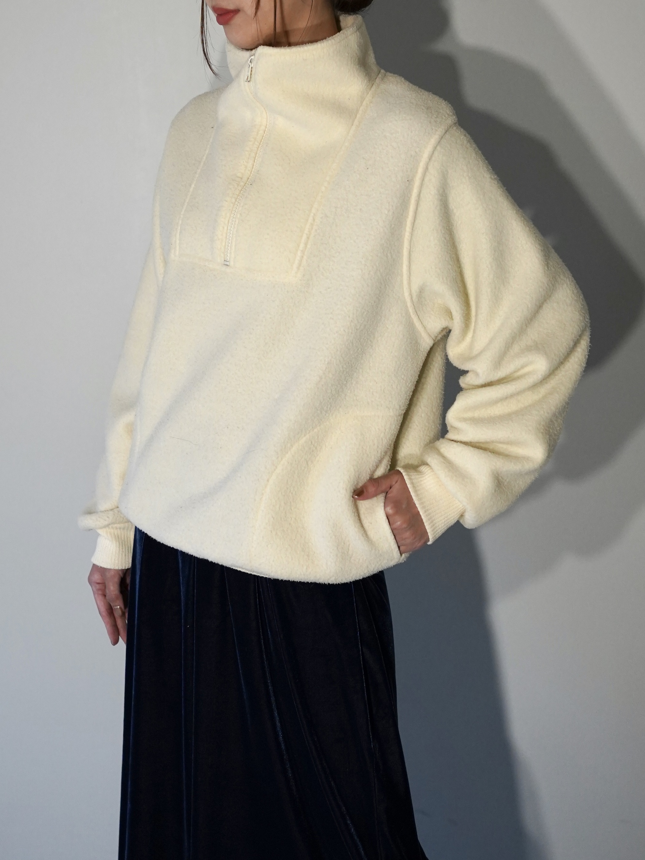 寒い時期はコートのインナー、ブルゾンのインナーとして鬼の様に重宝します。ネックのジップも高さも魅せるインナーとして重要な役割。