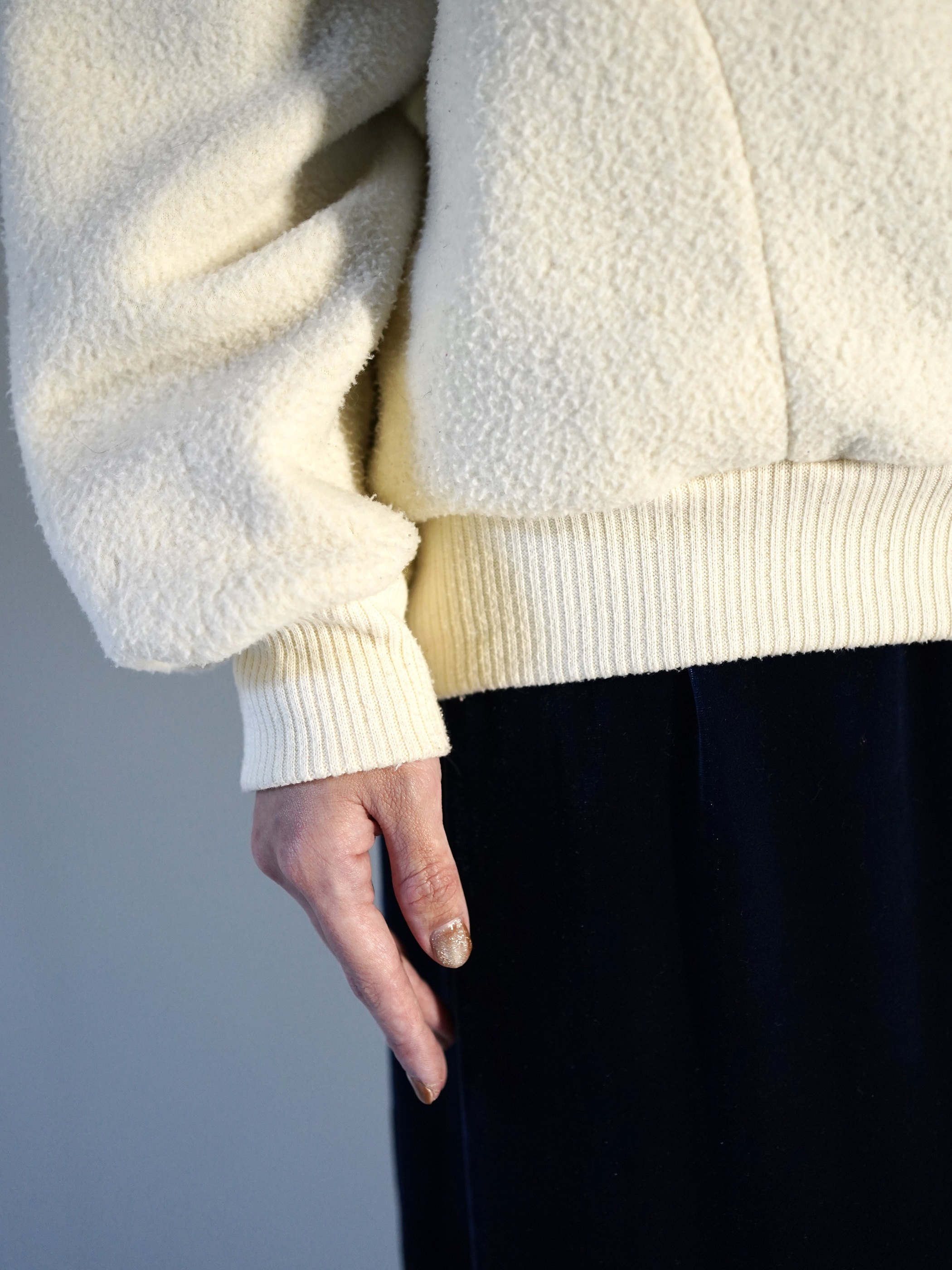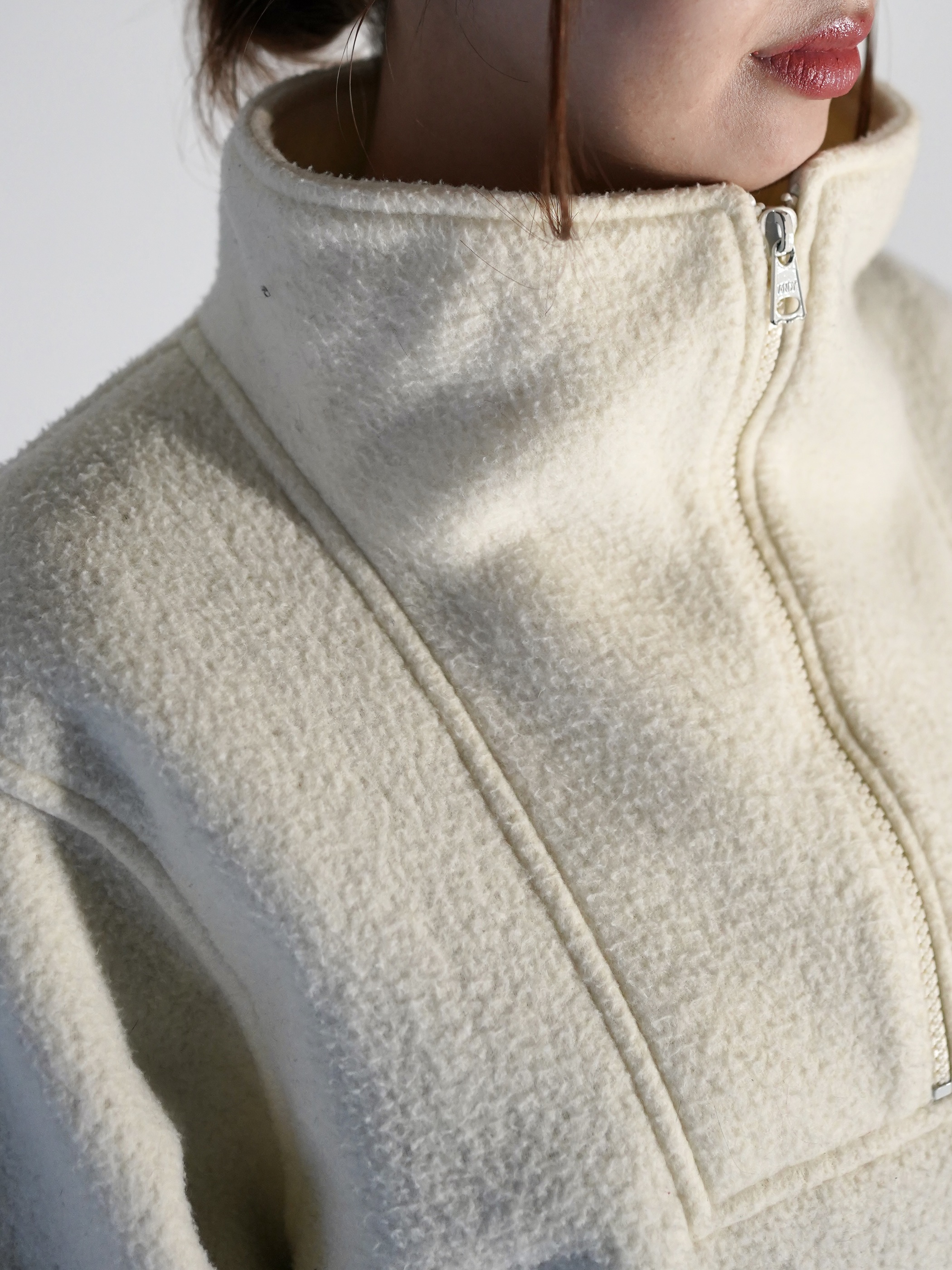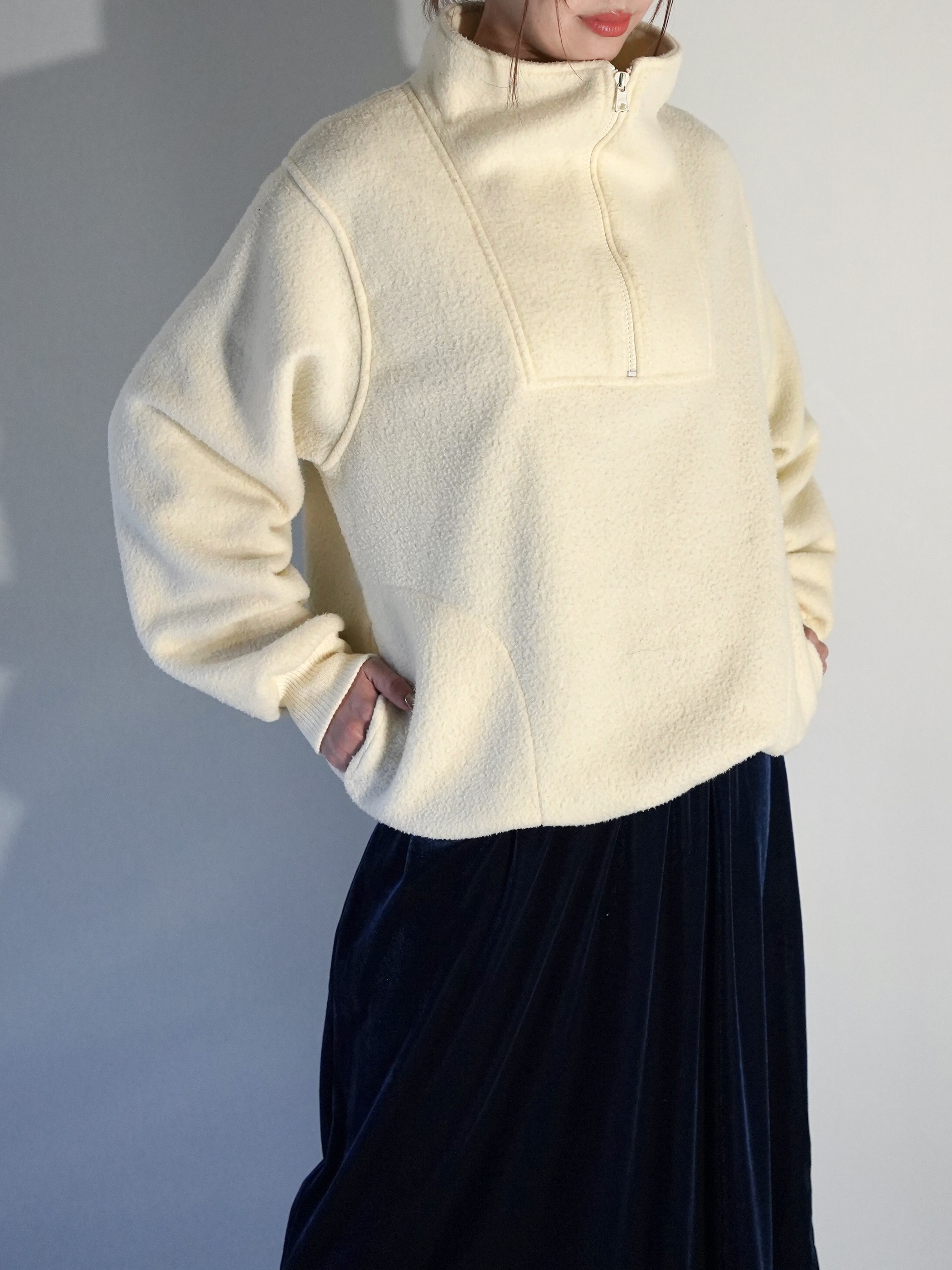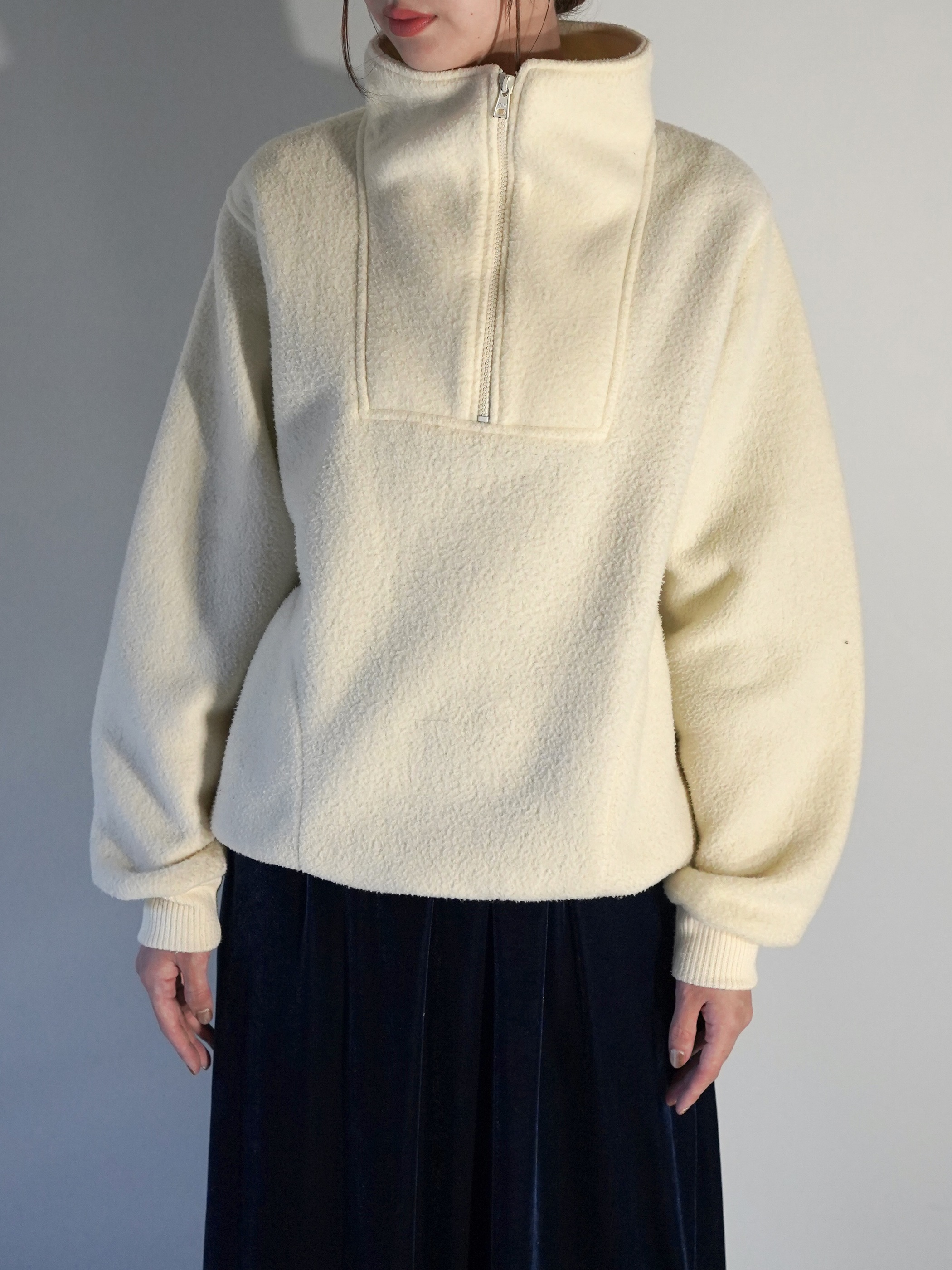 寒い時期はコートのインナー、ブルゾンのインナーとして鬼の様に重宝します。ネックのジップも高さも魅せるインナーとして重要な役割。