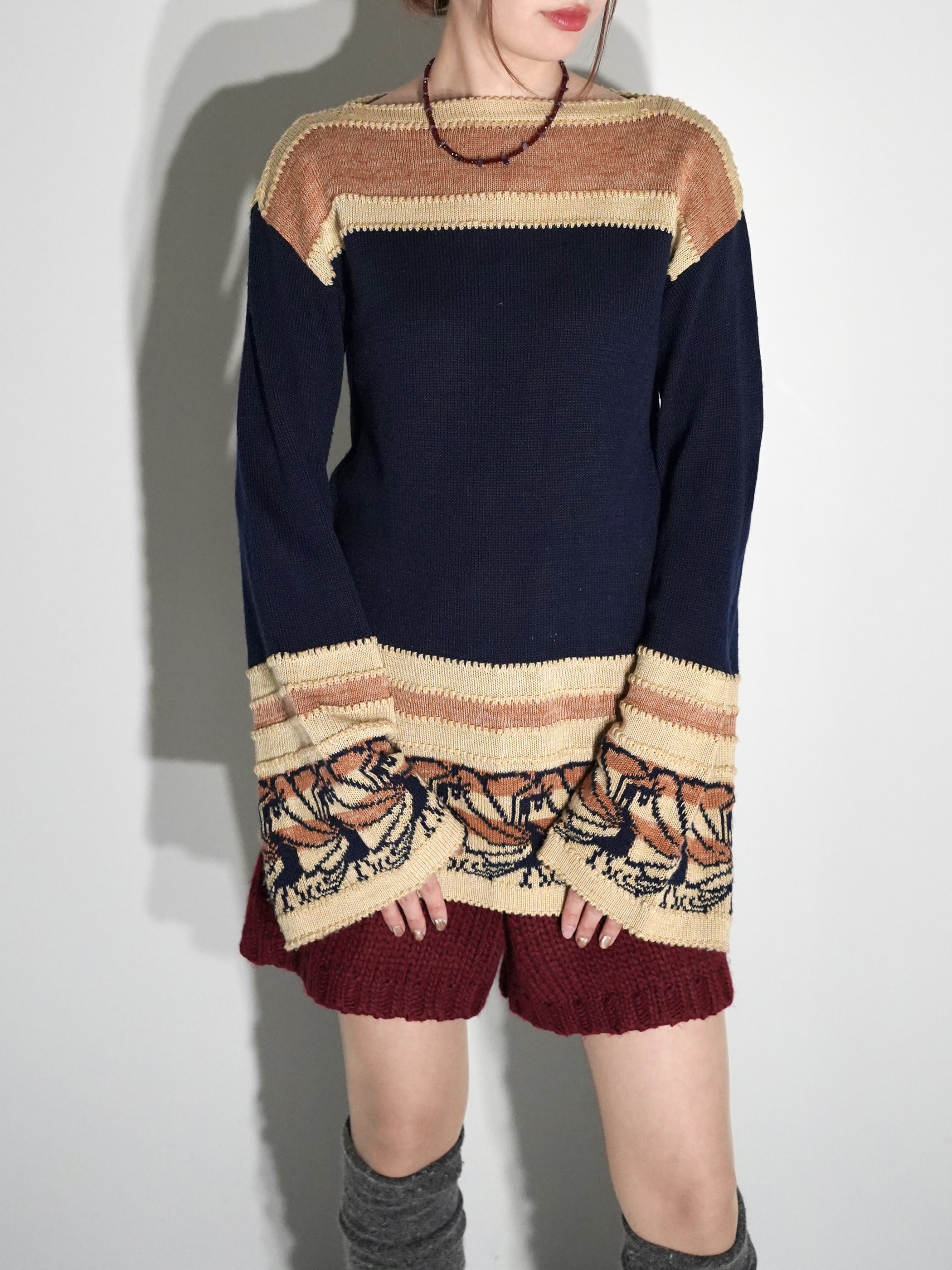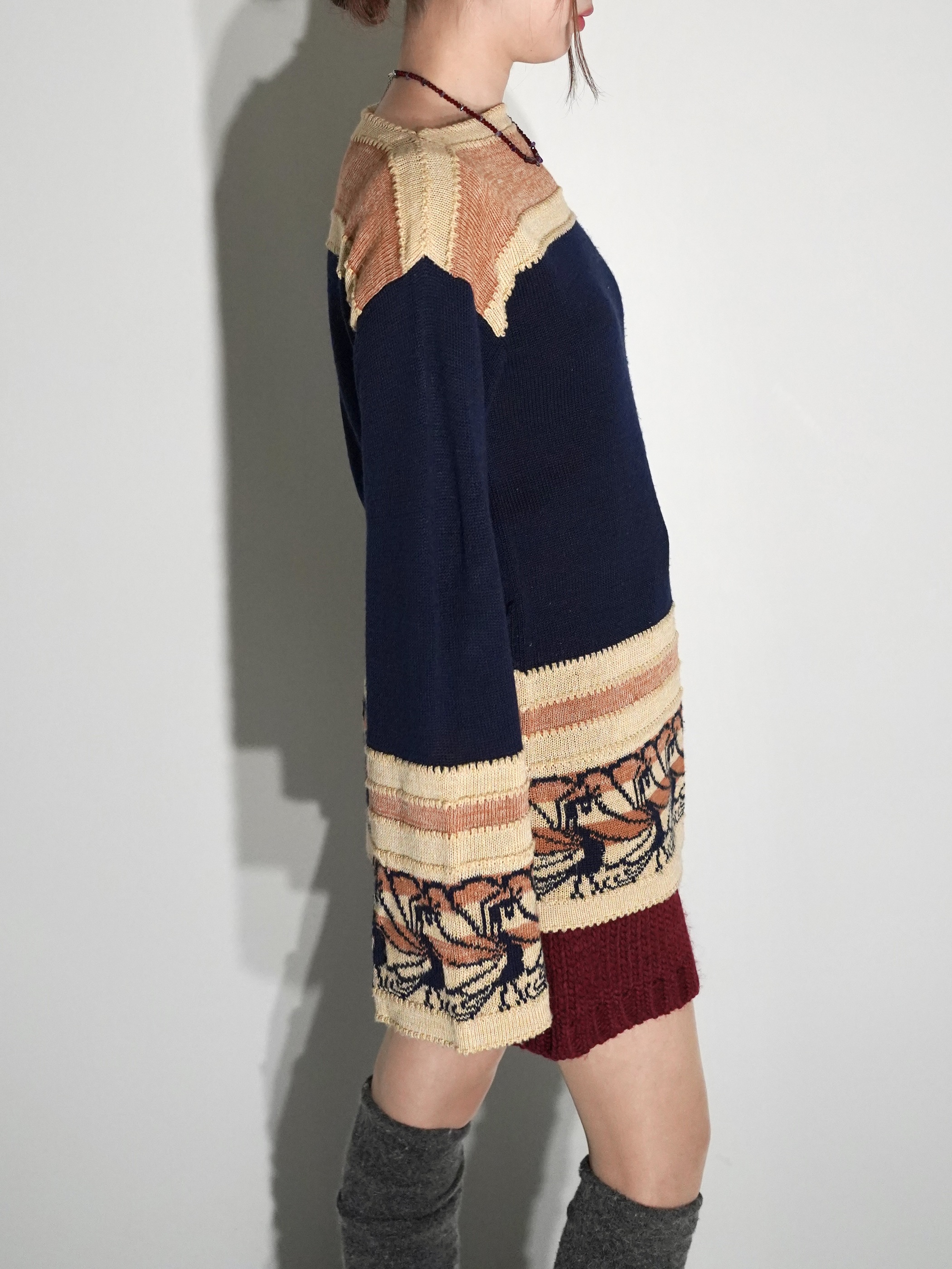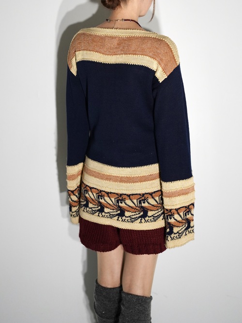 配色、デザイン全てにおいて70年代のムードたっぷりなフォークロア調ニット