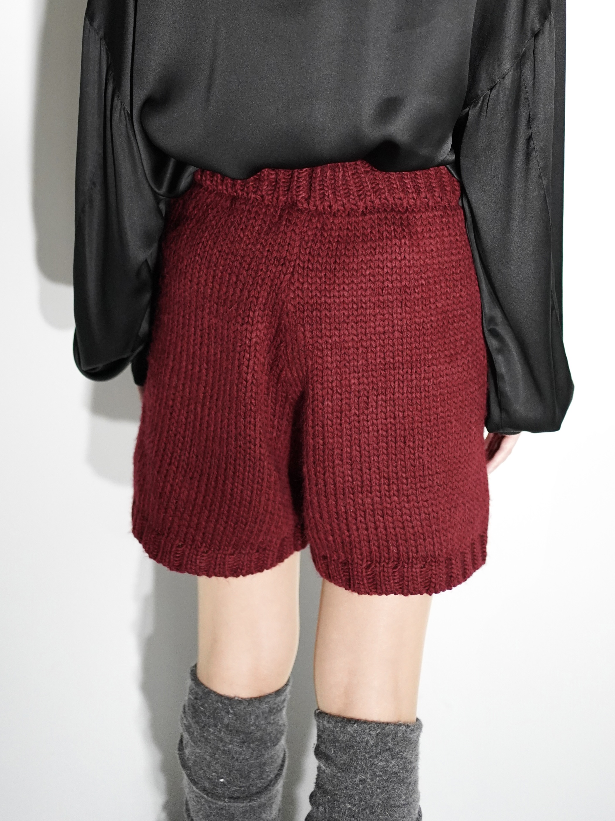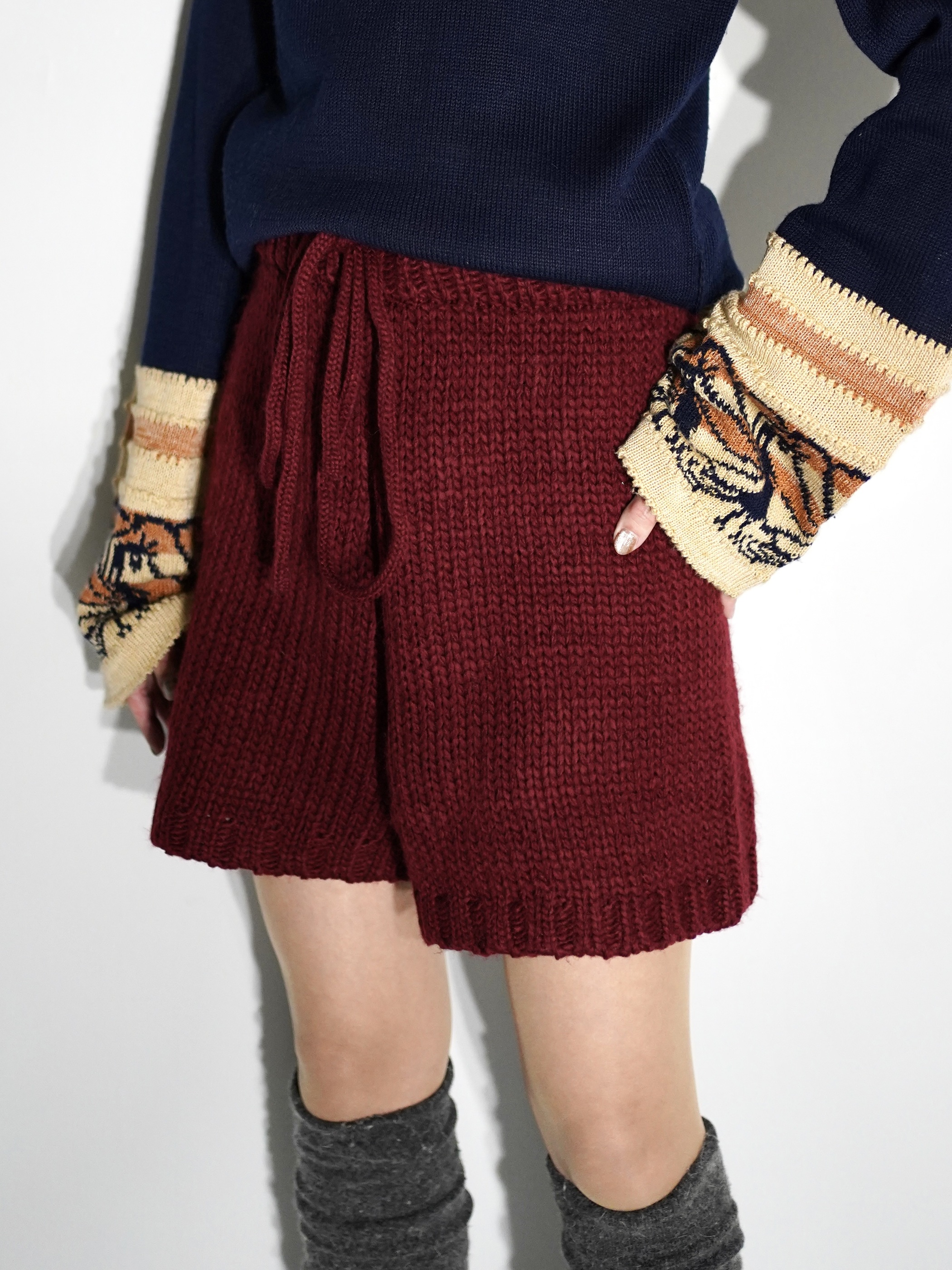ドローコードまで統一された深みあるワンカラーのニットショートパンツ