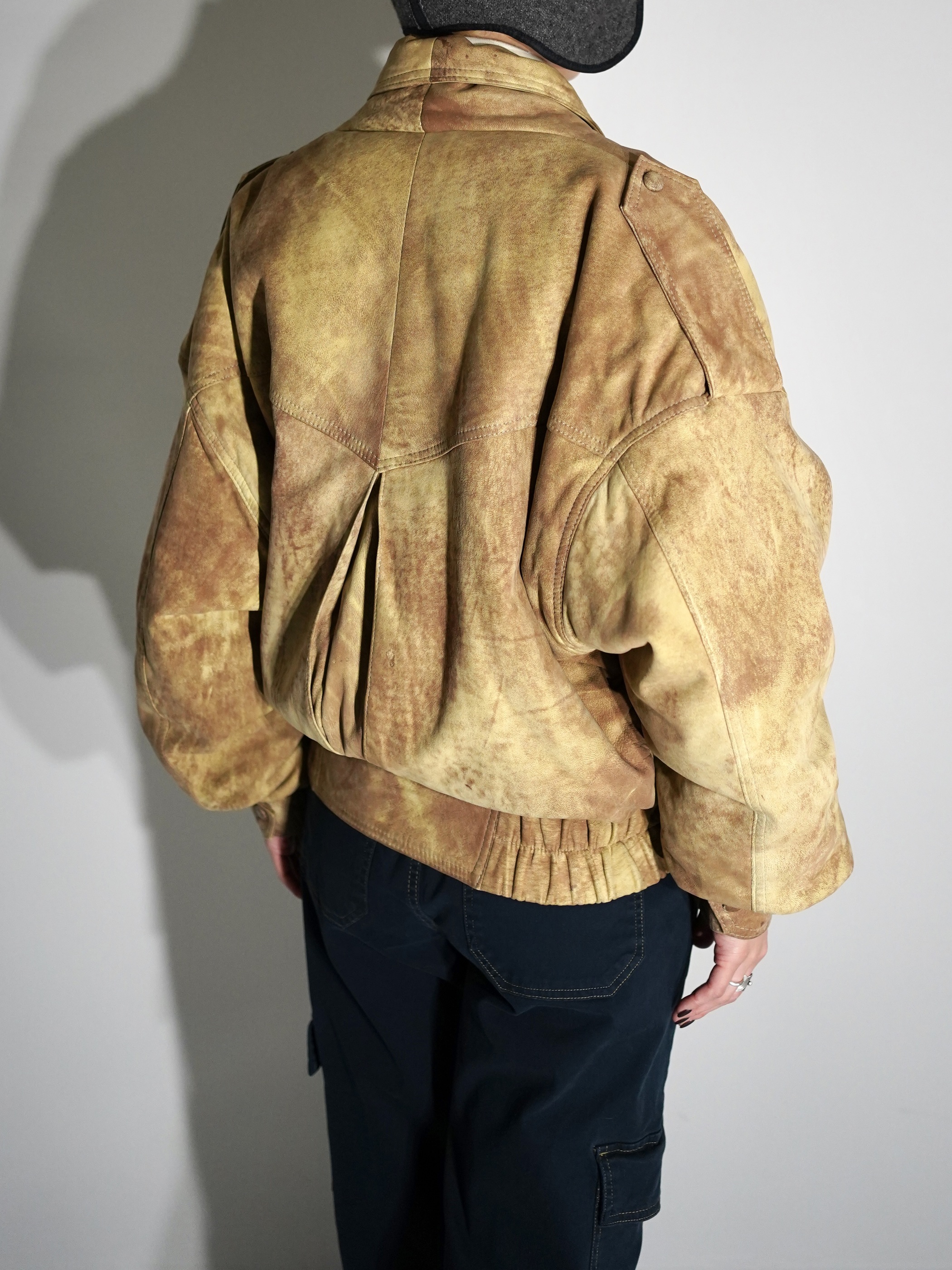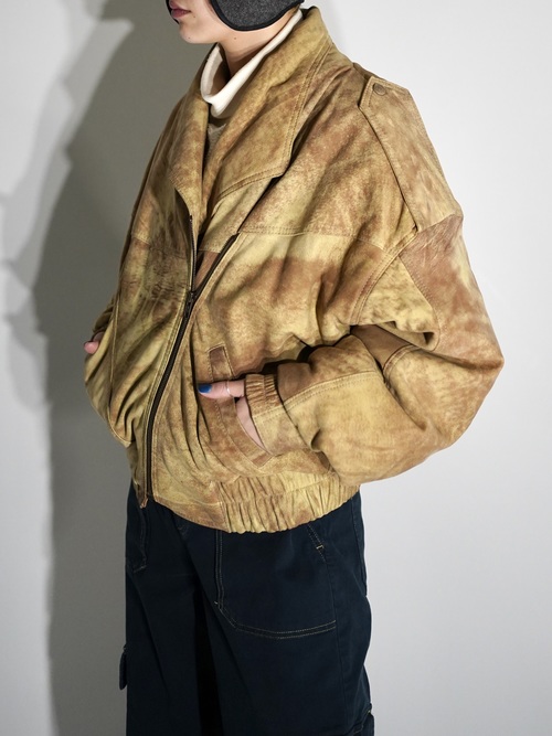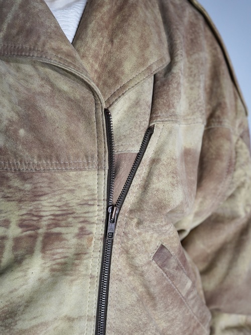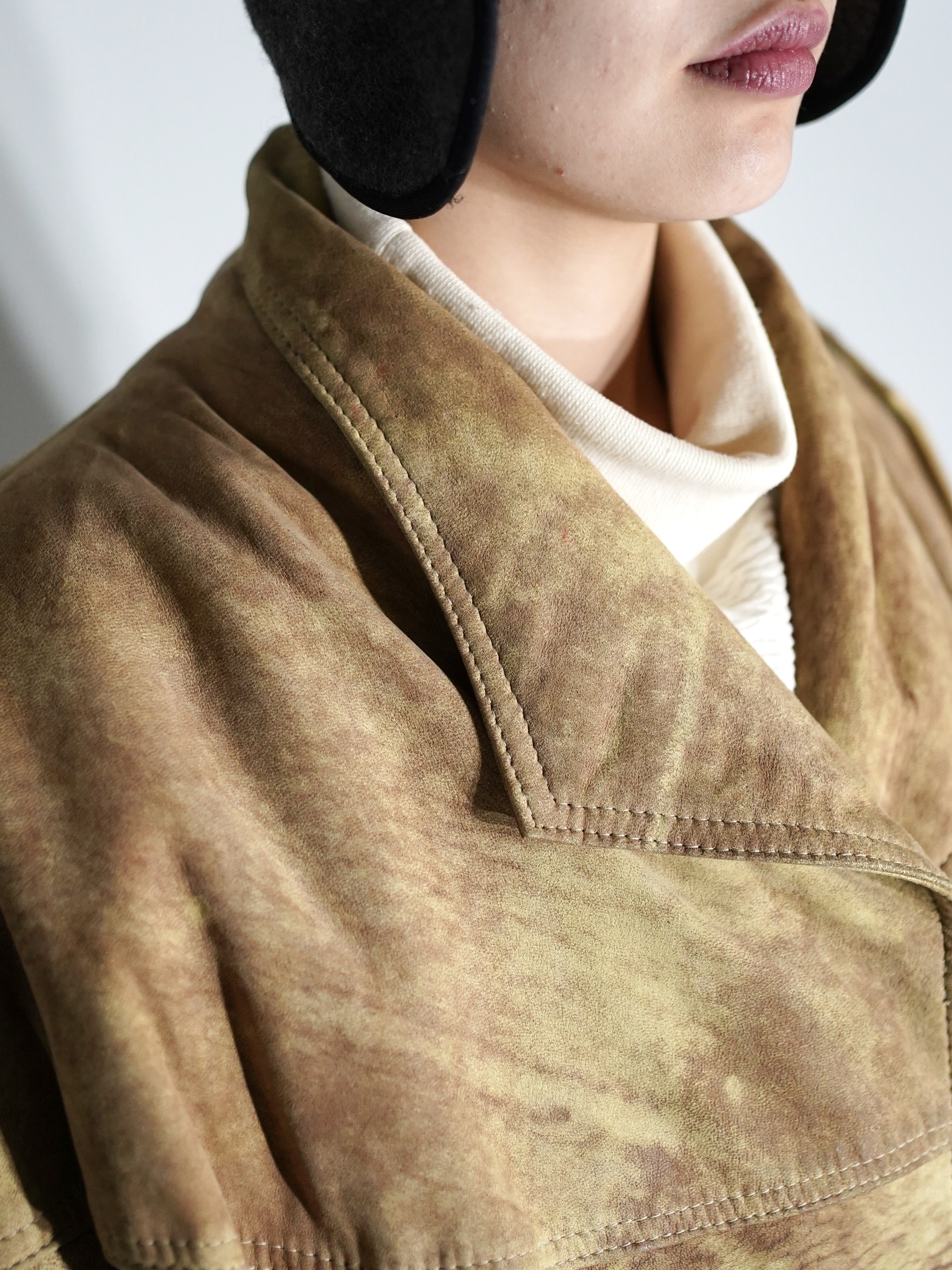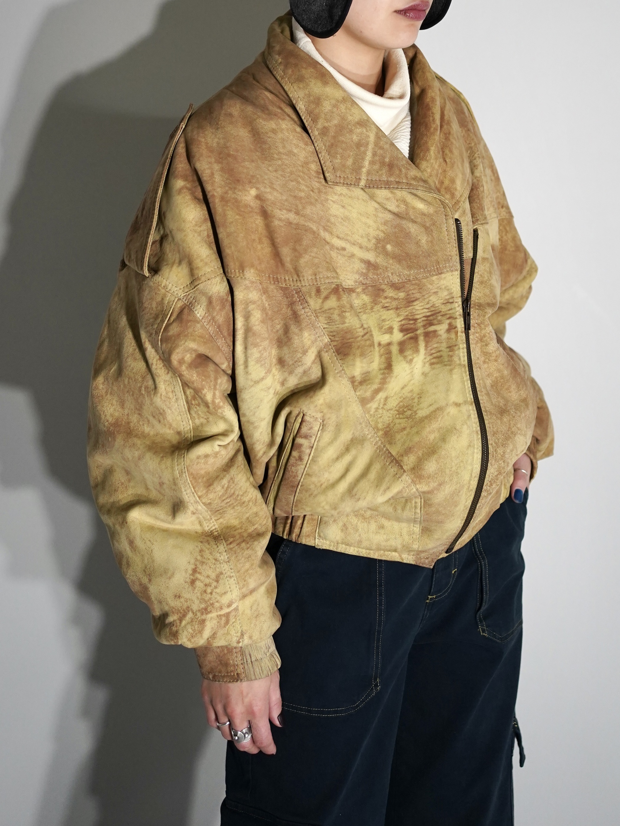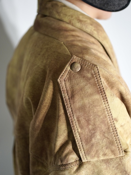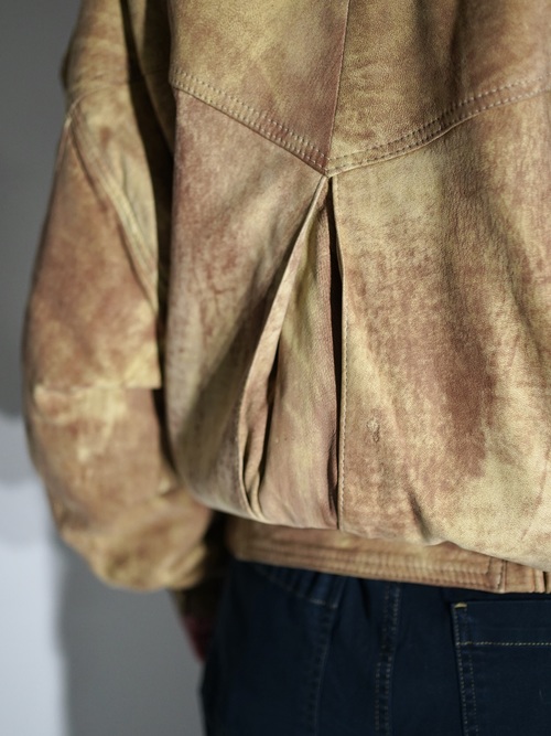 レザーの表面にムラ染めの様な加工を施したラムレザーライダースJKT
