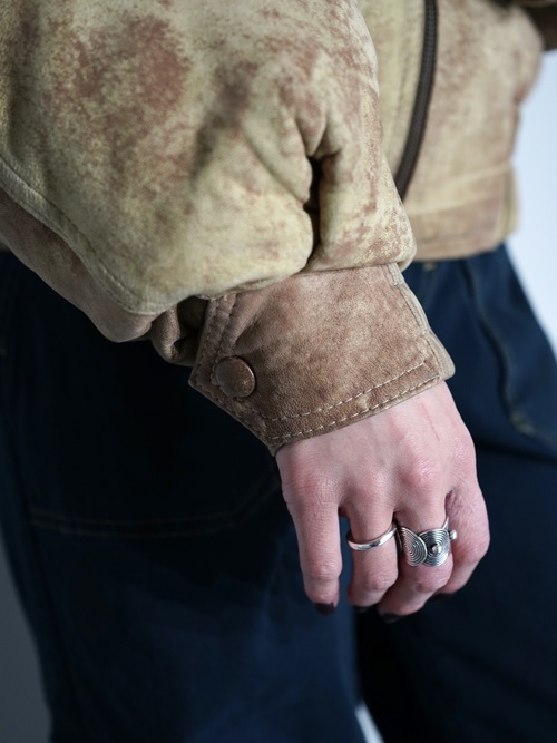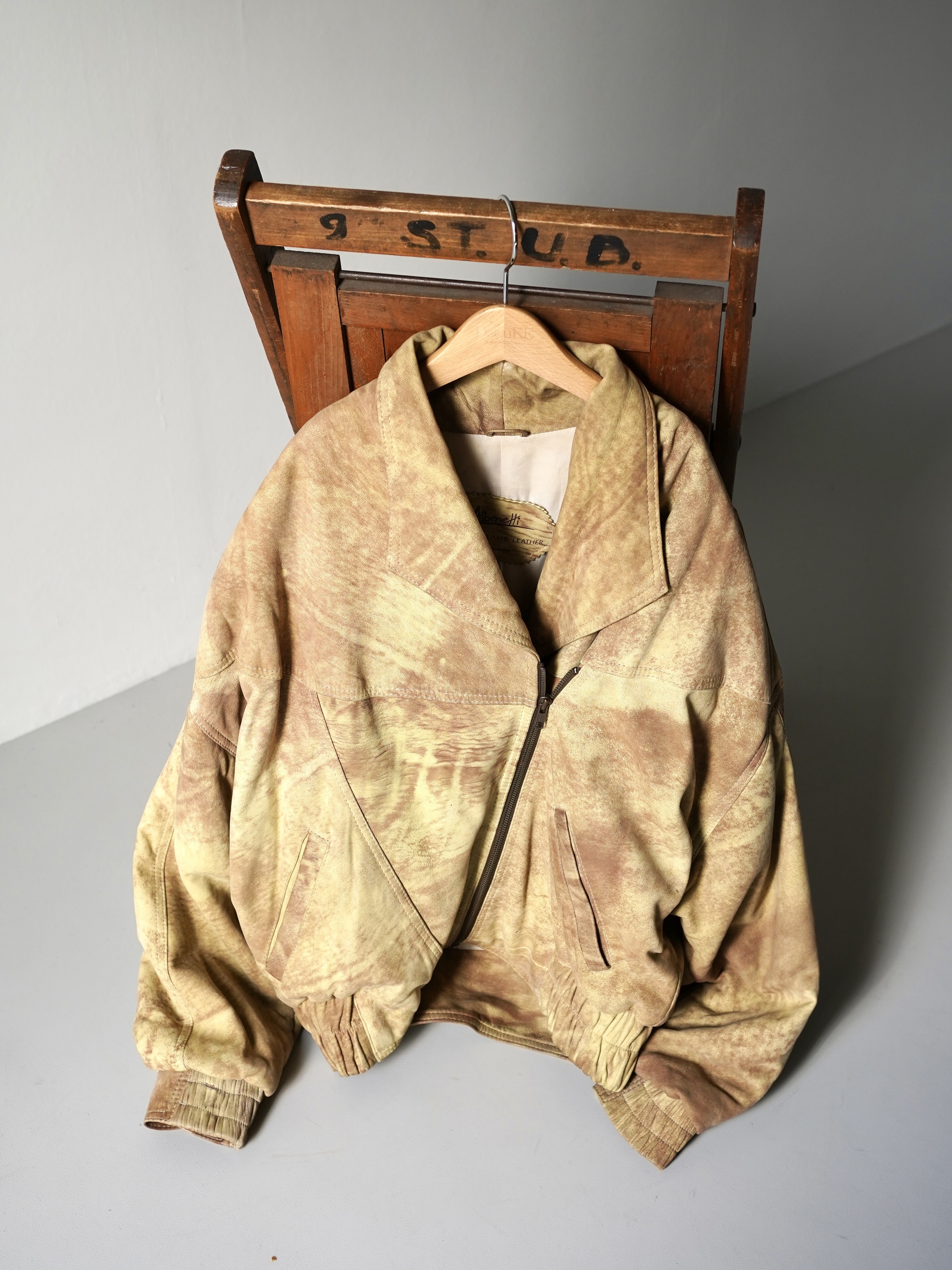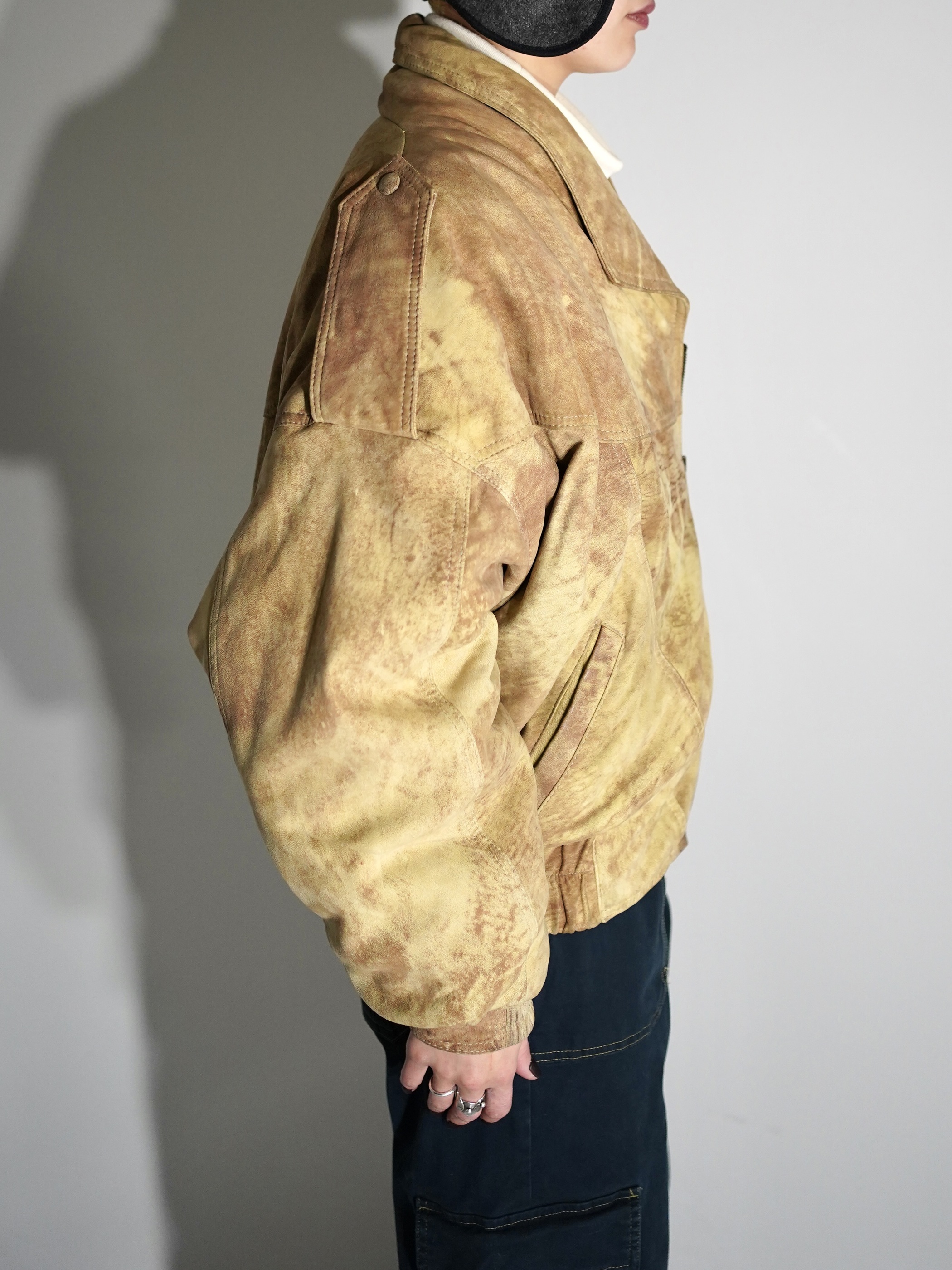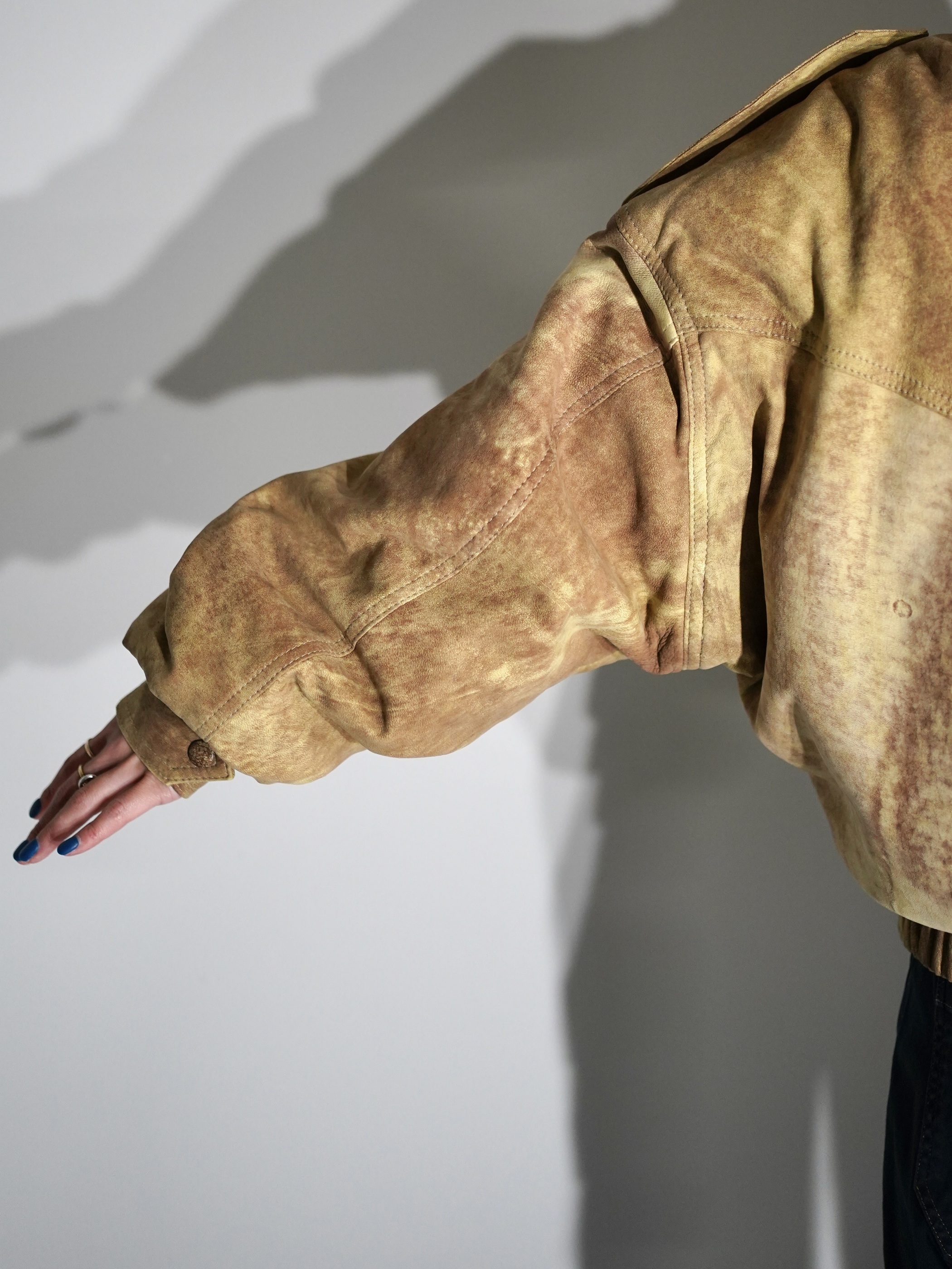 レザーの表面にムラ染めの様な加工を施したラムレザーライダースJKT