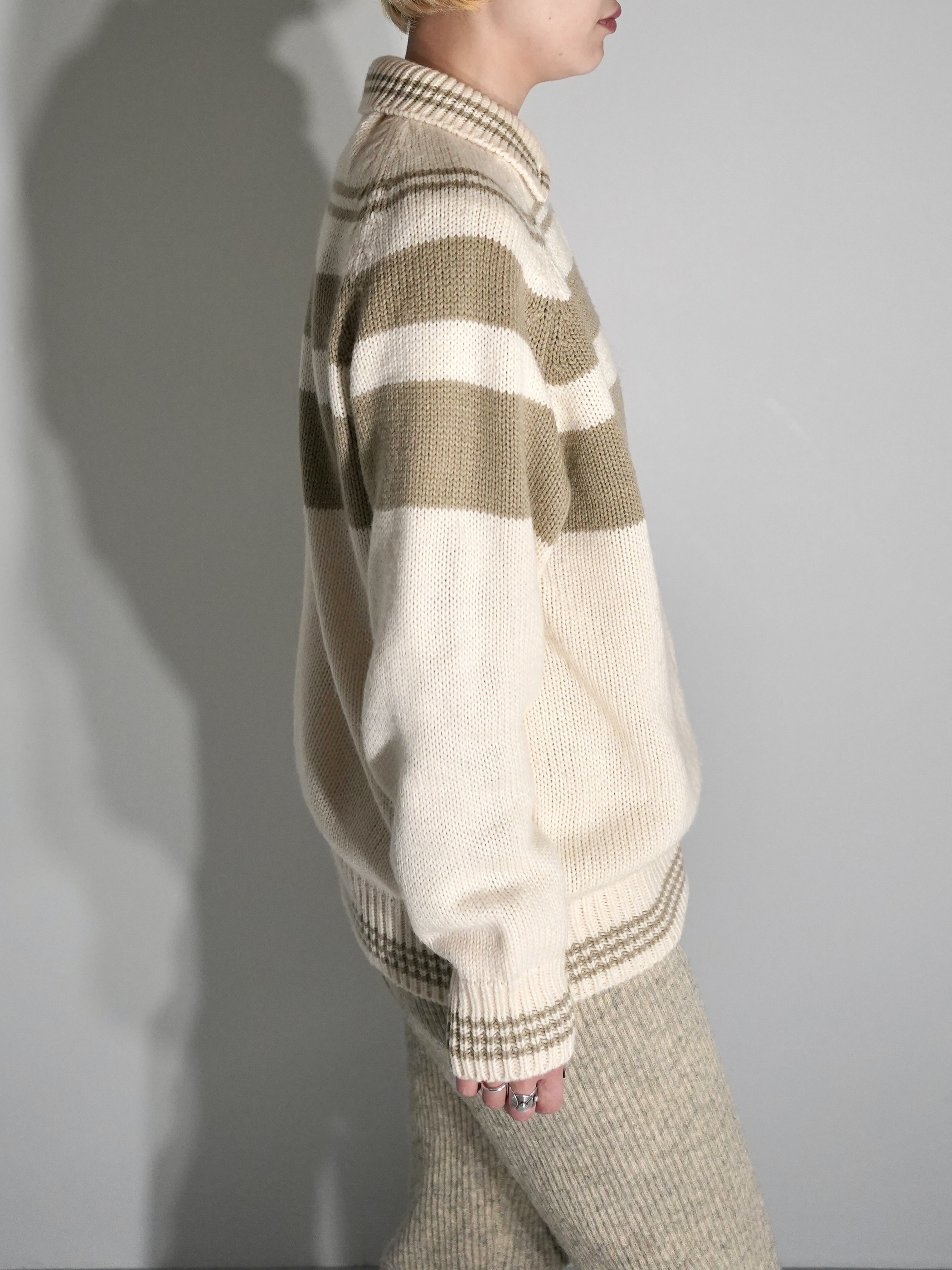 柔和なカラーリングのニットポロ