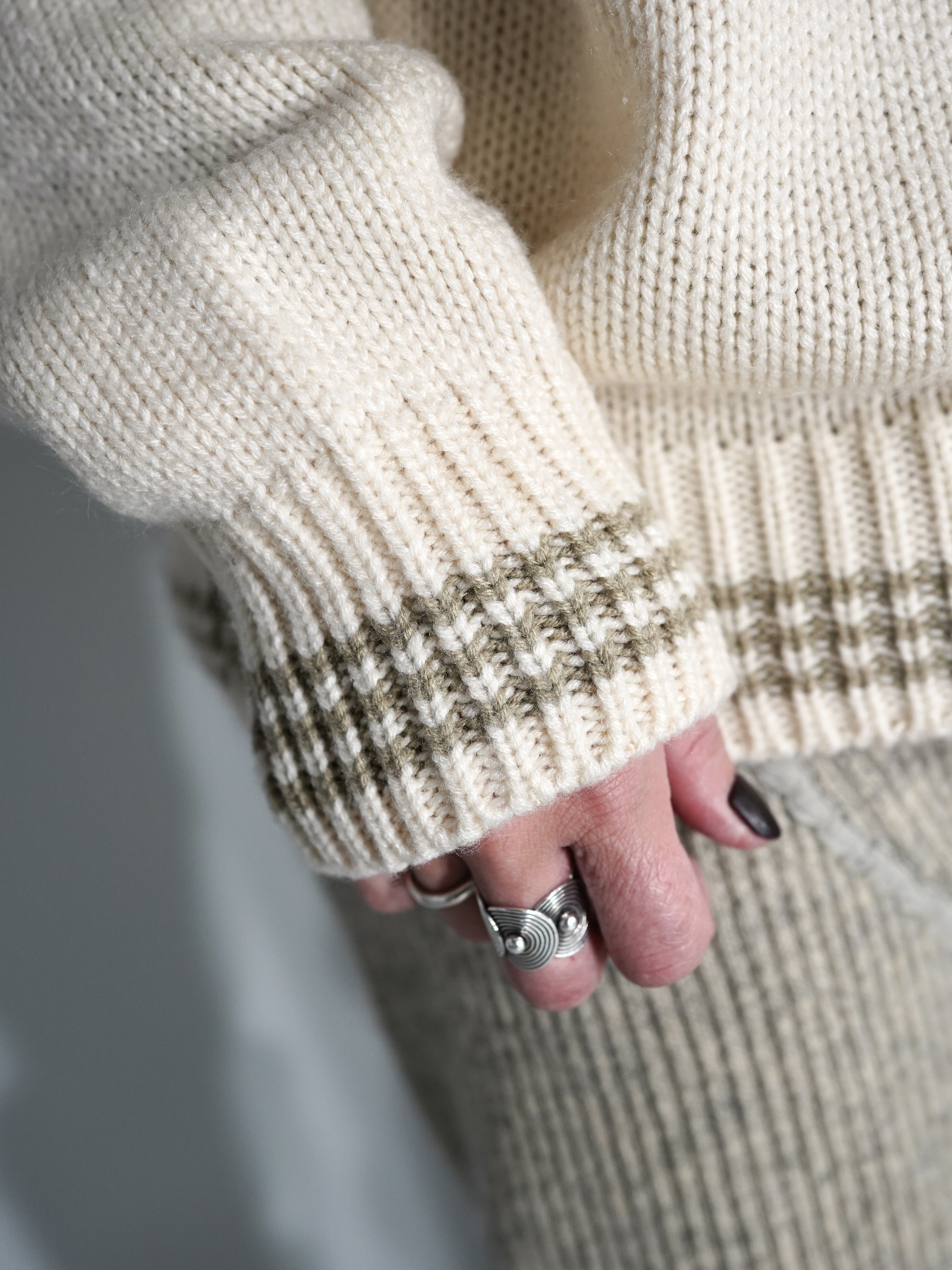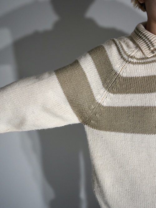 ウールにも似た印象を受ける厚みながらアクリル地を使用、チクチク感も無く着ていただけます。