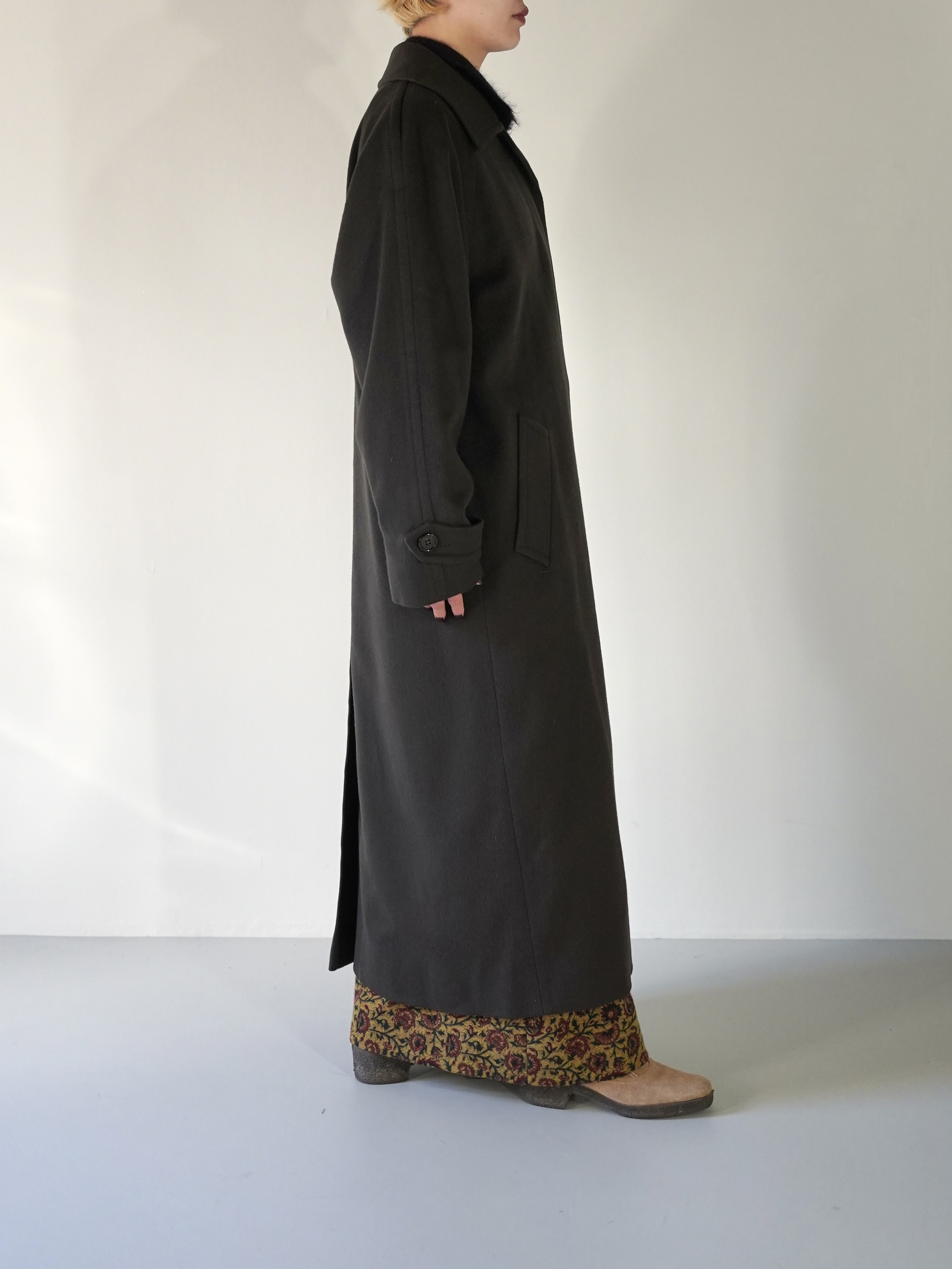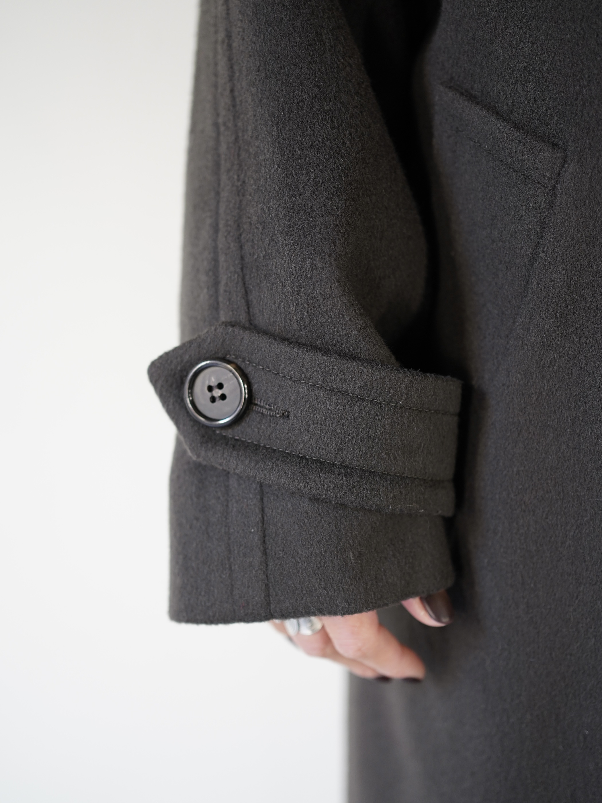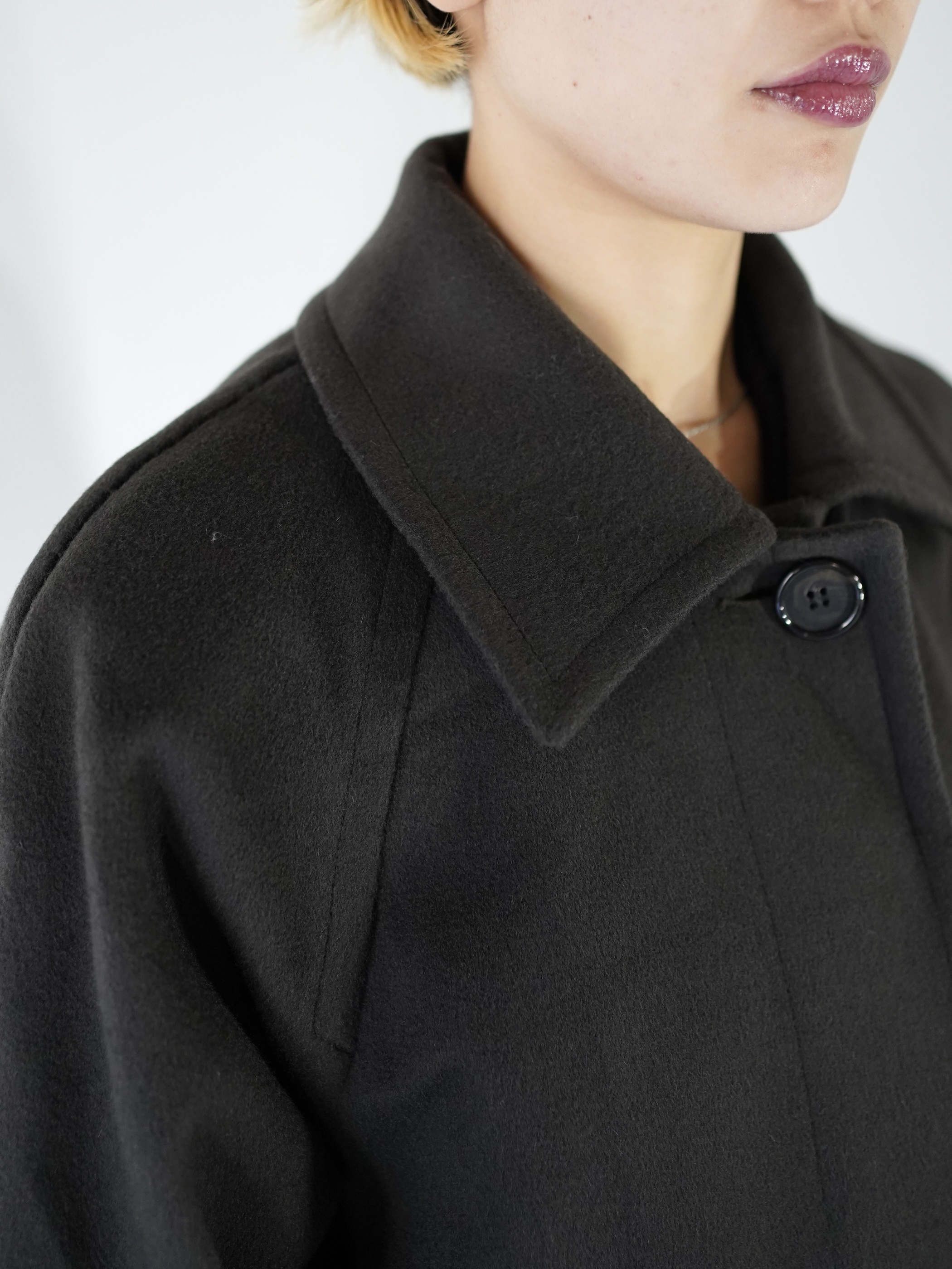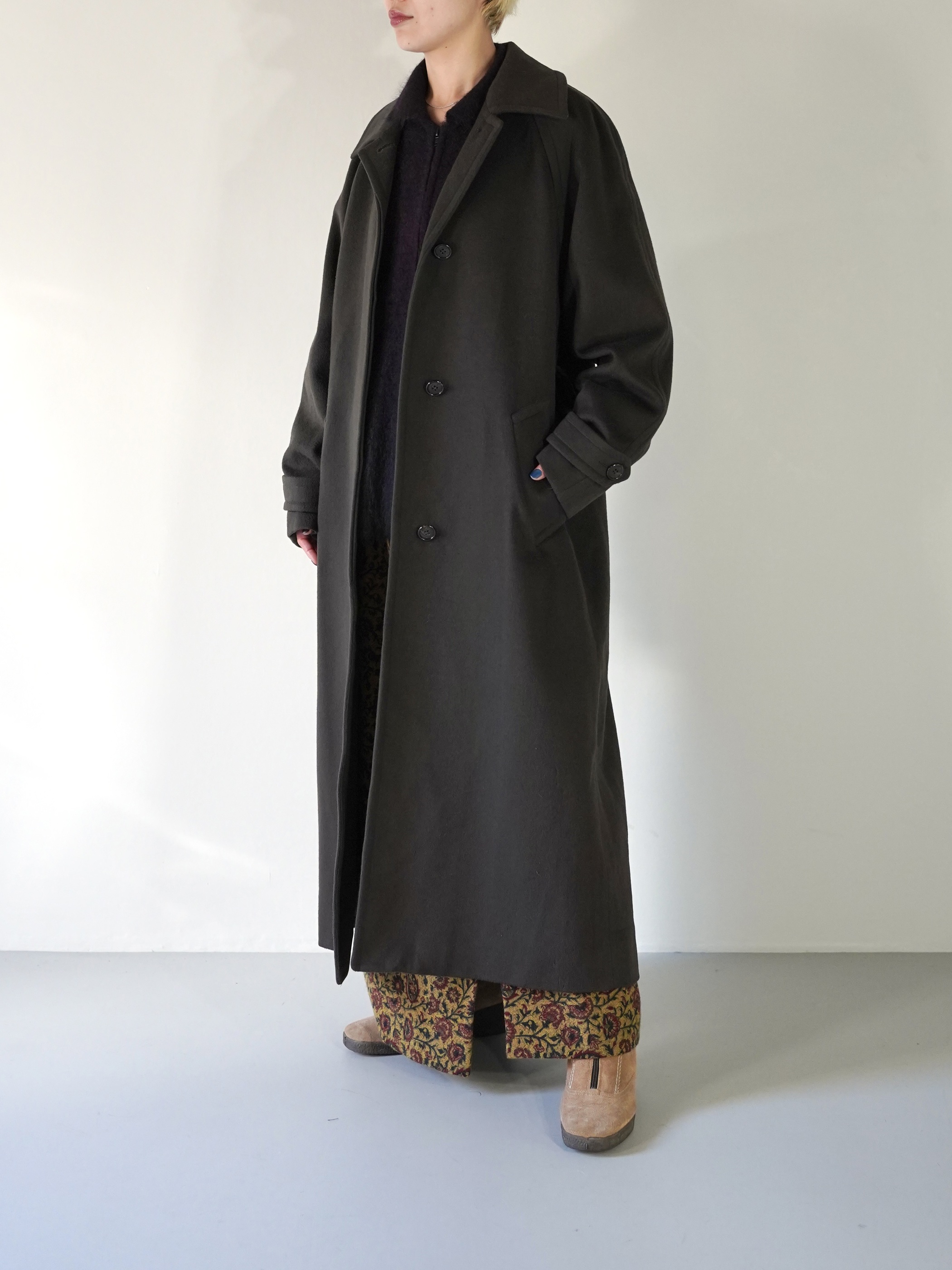 肩線の馴染みも良く、シルエットが非常に綺麗なチェスターコート