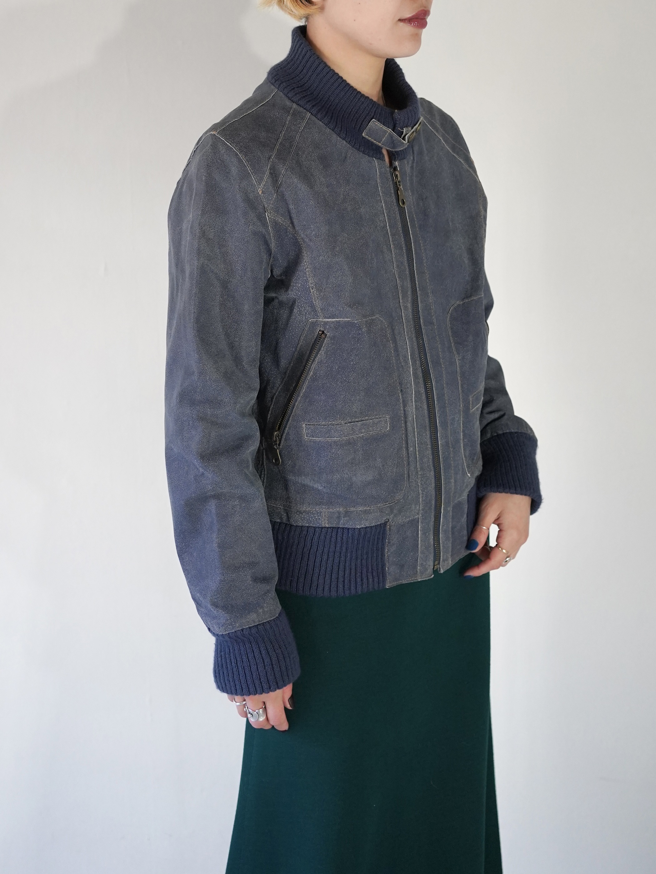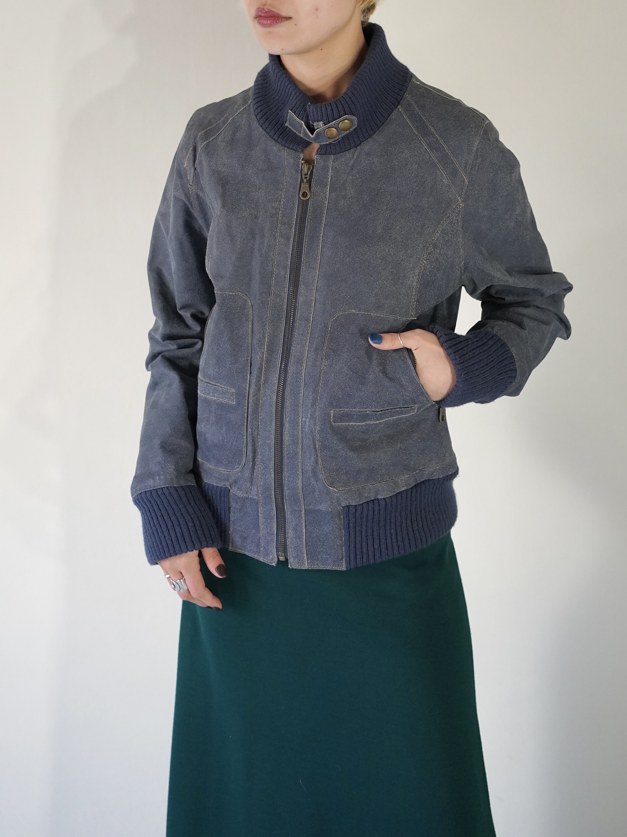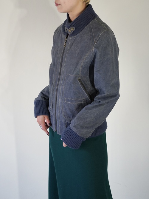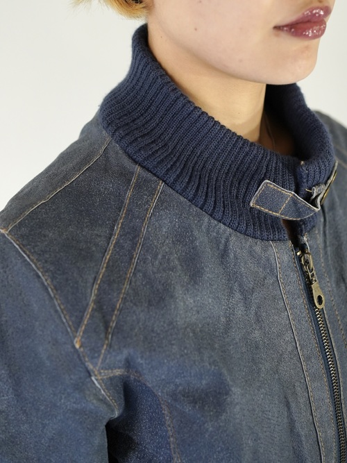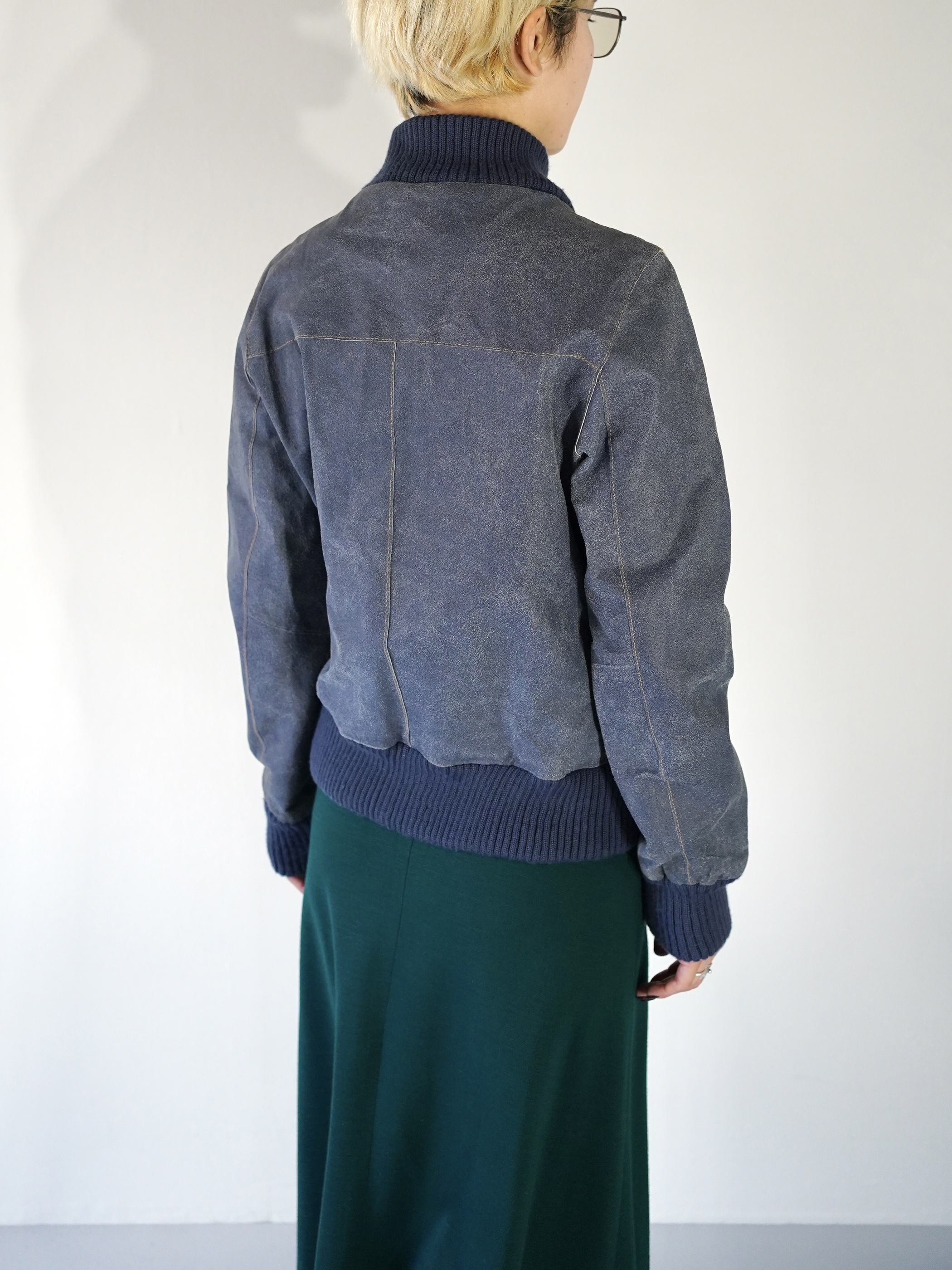 スタンド仕様になるニットリブデザインも厚みがあり面白いレザージャケット