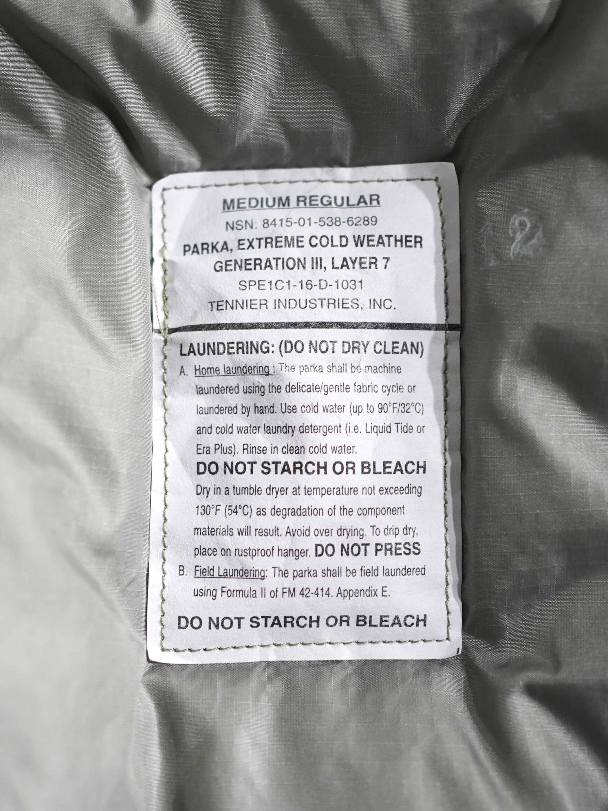 高機能中綿素材"PRIMALOFT"が使用され、7段階中最高レベルに位置するECWCS Gen3 Level7のジャケット