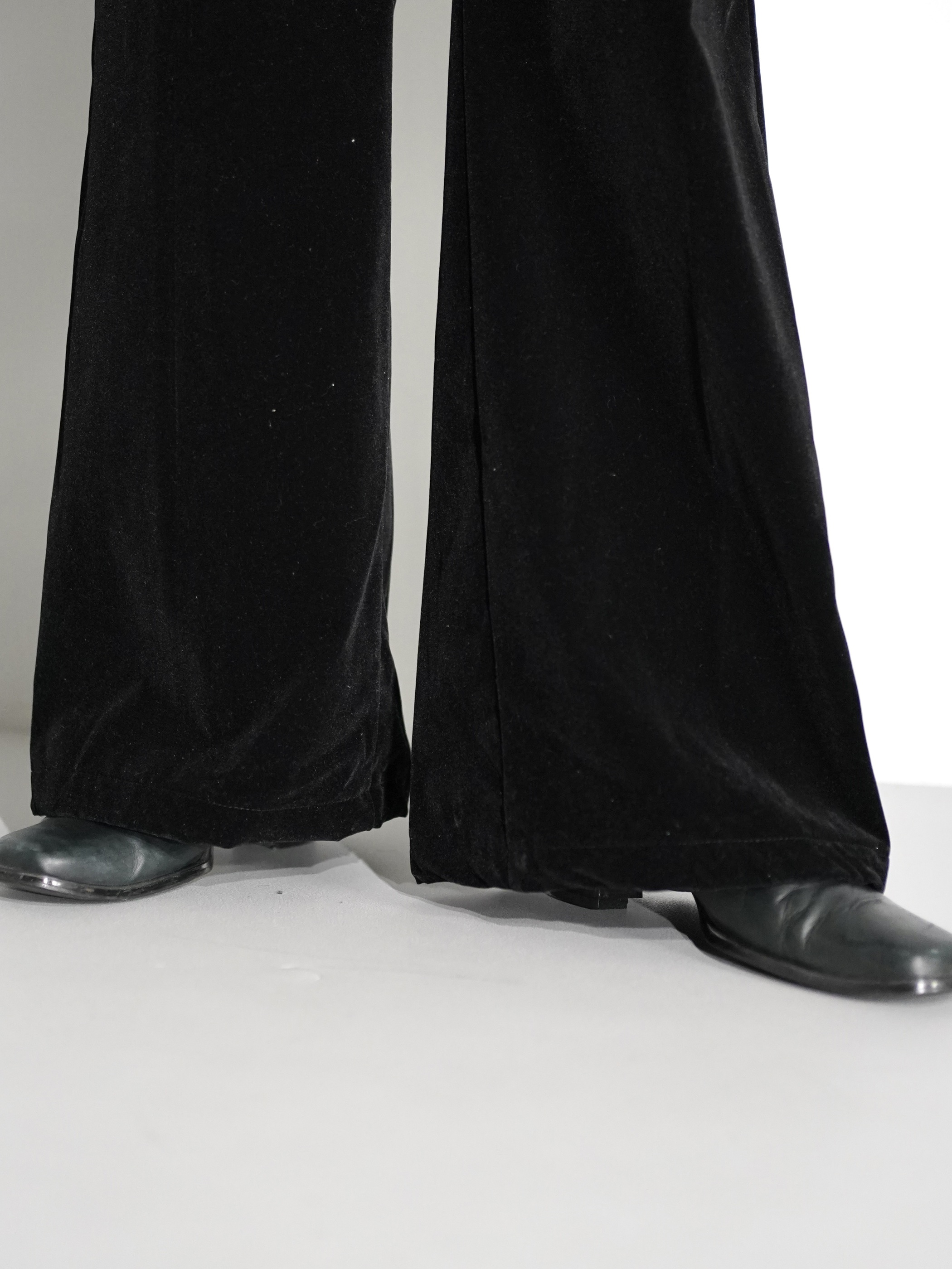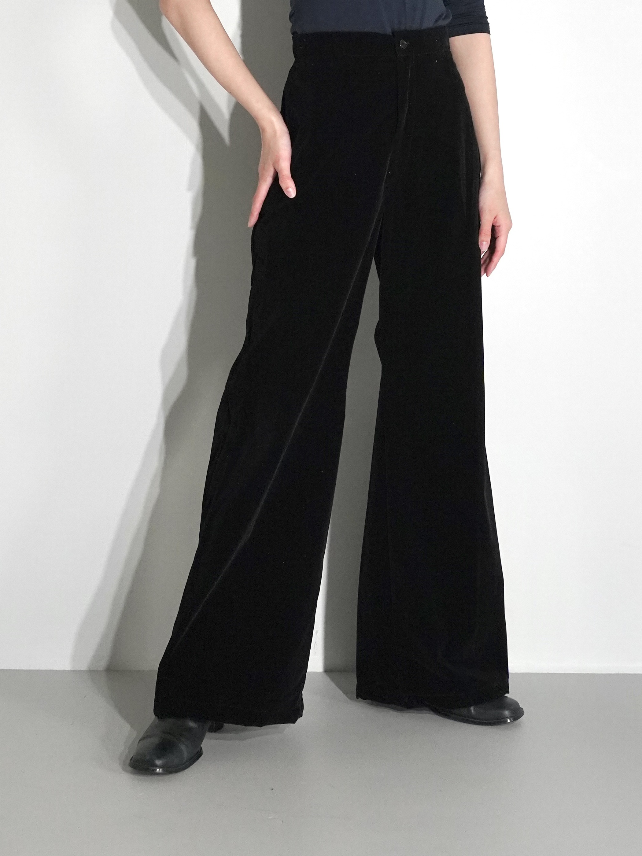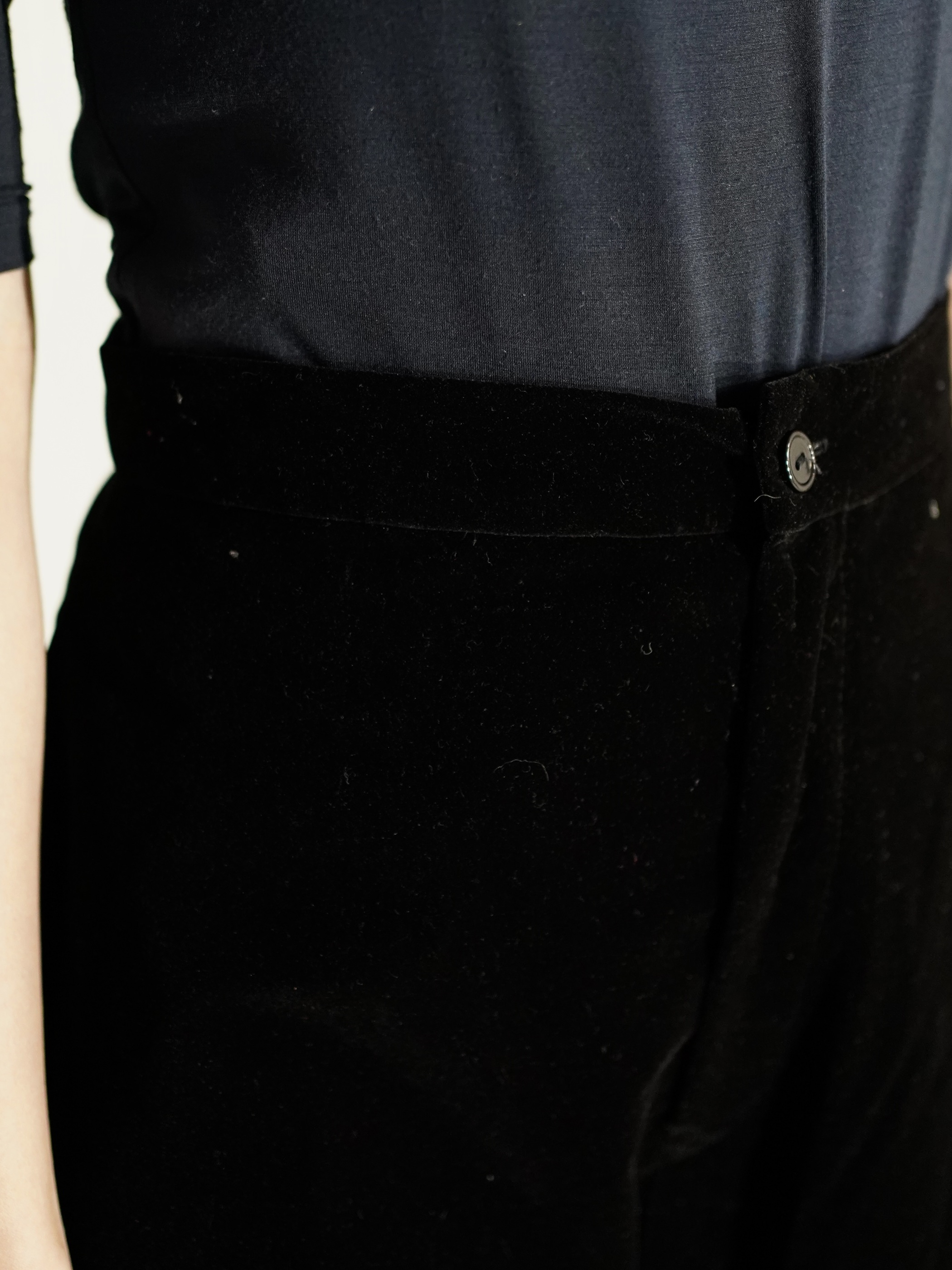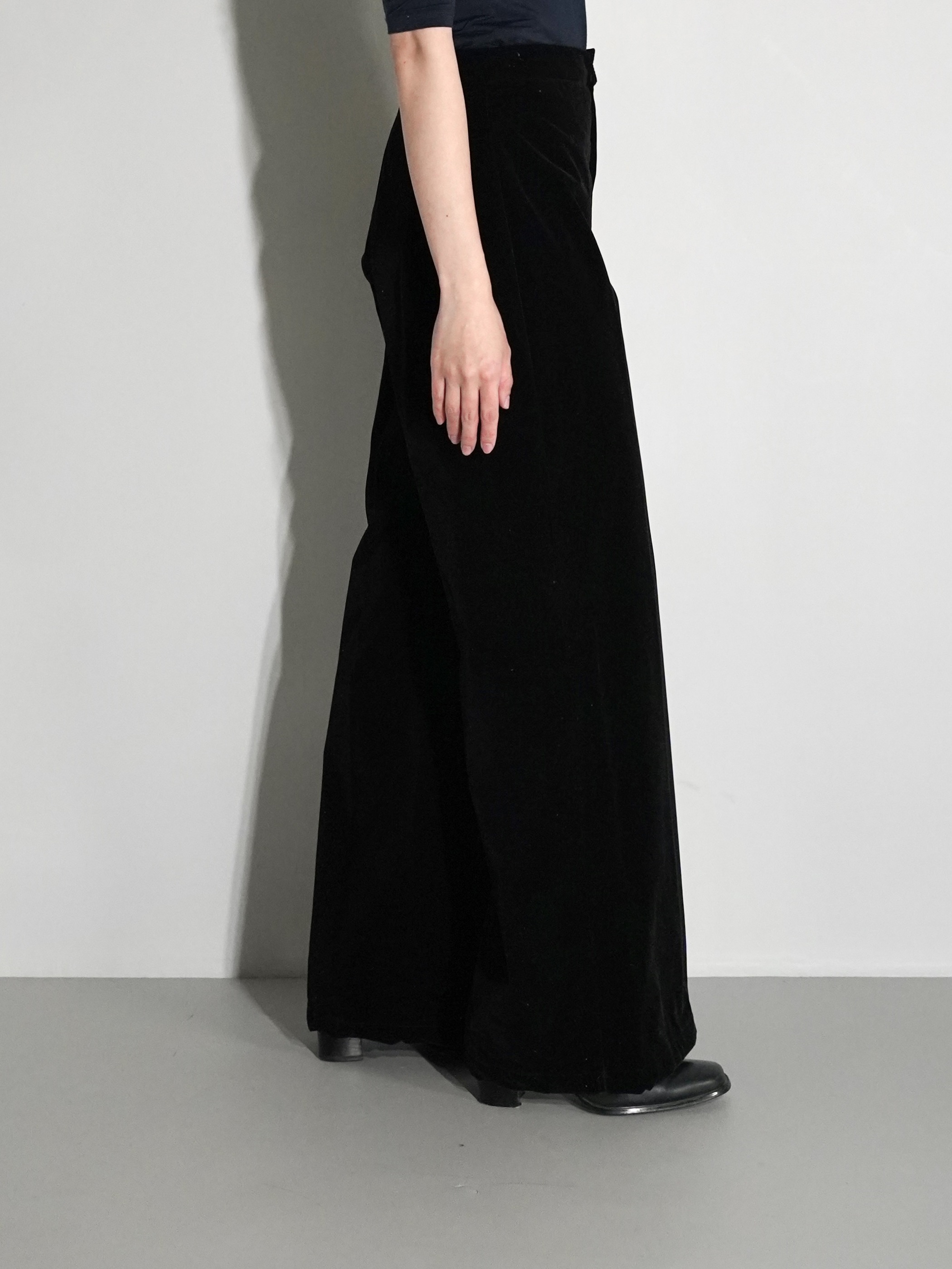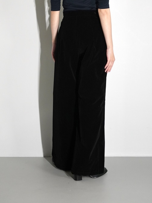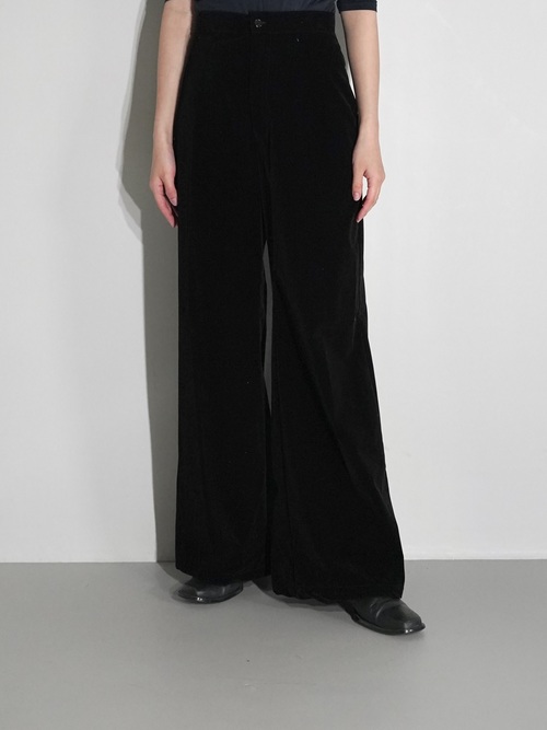無駄を省き、すっきりとした佇まいのベルベットパンツ