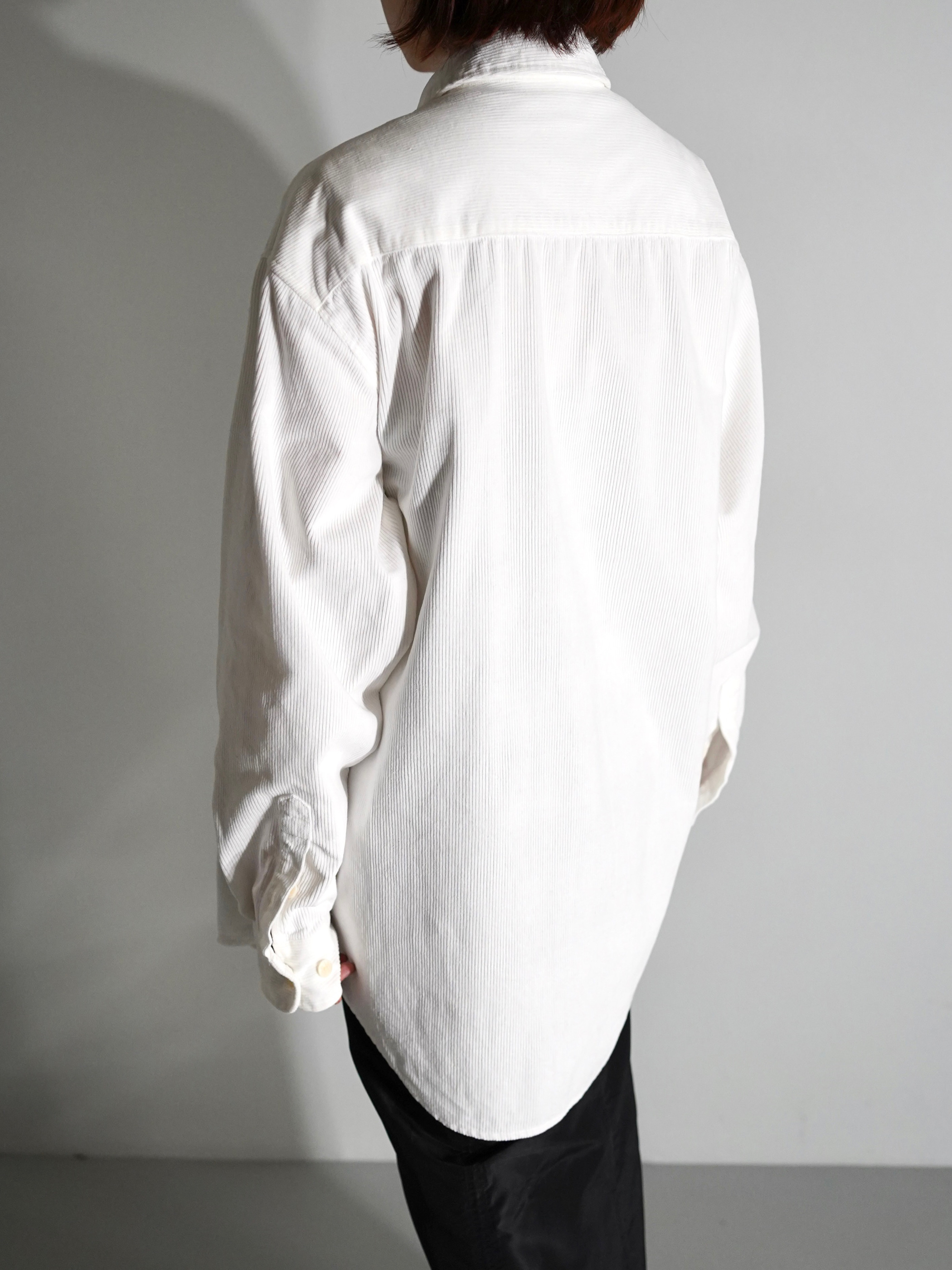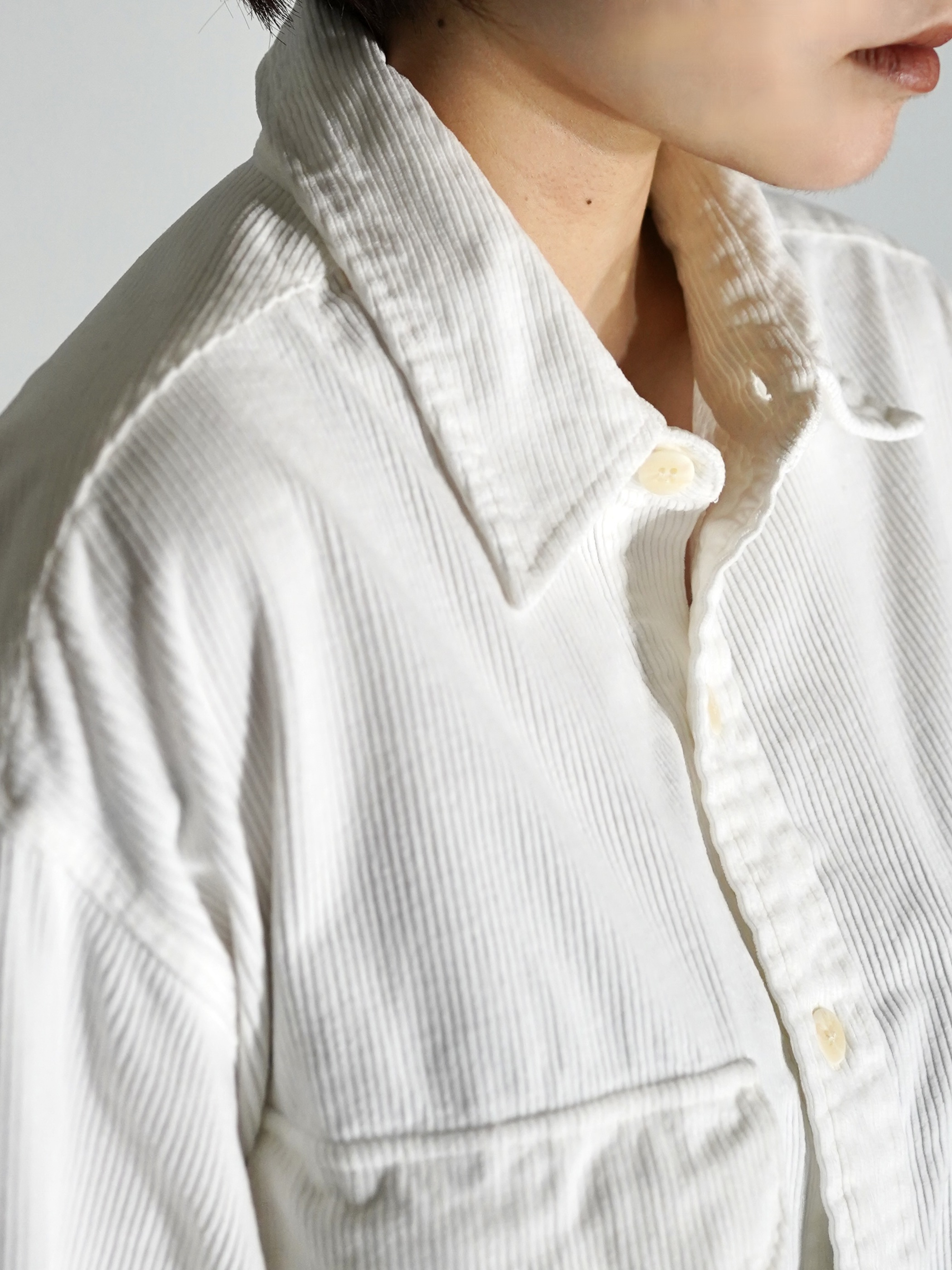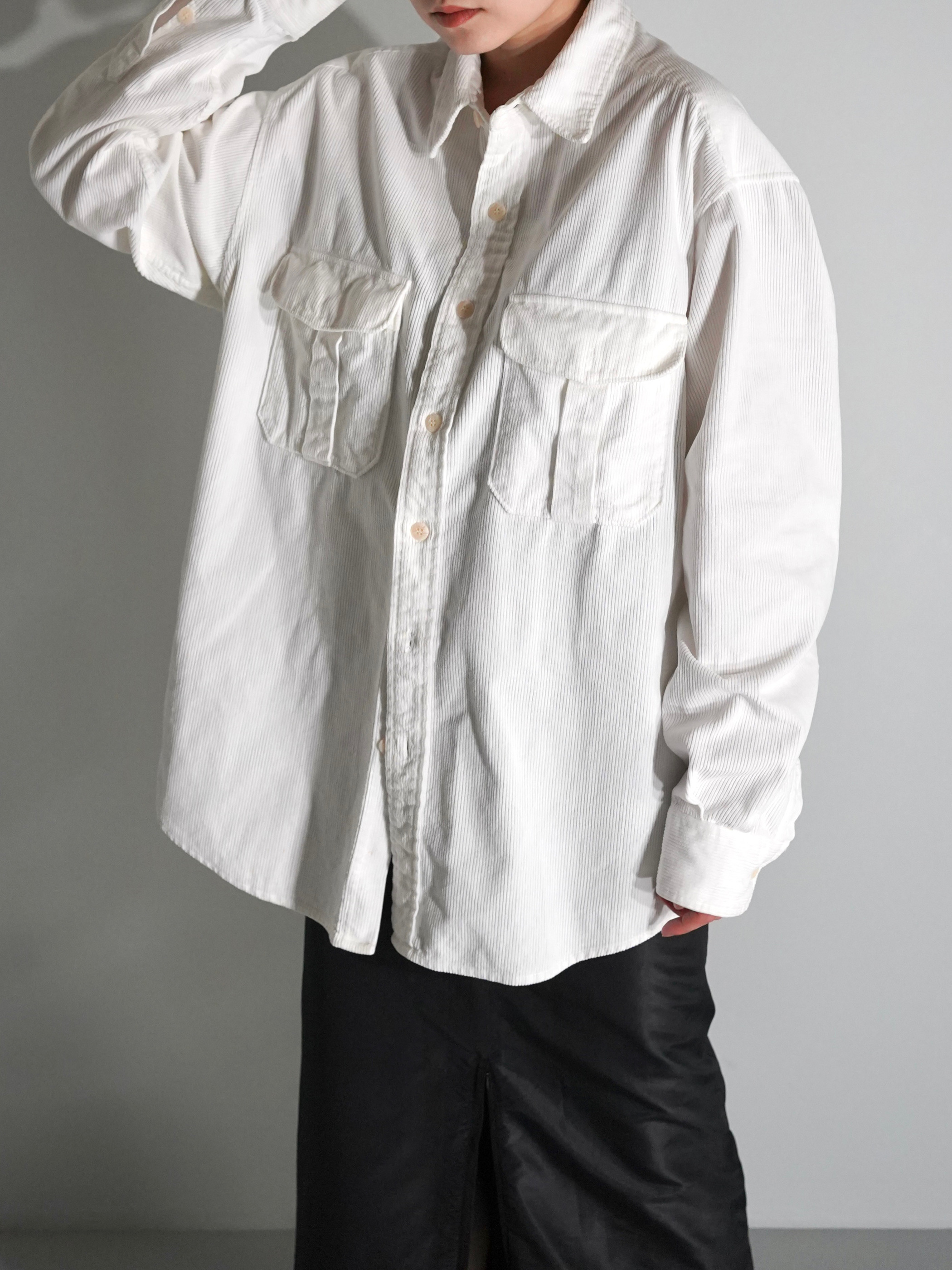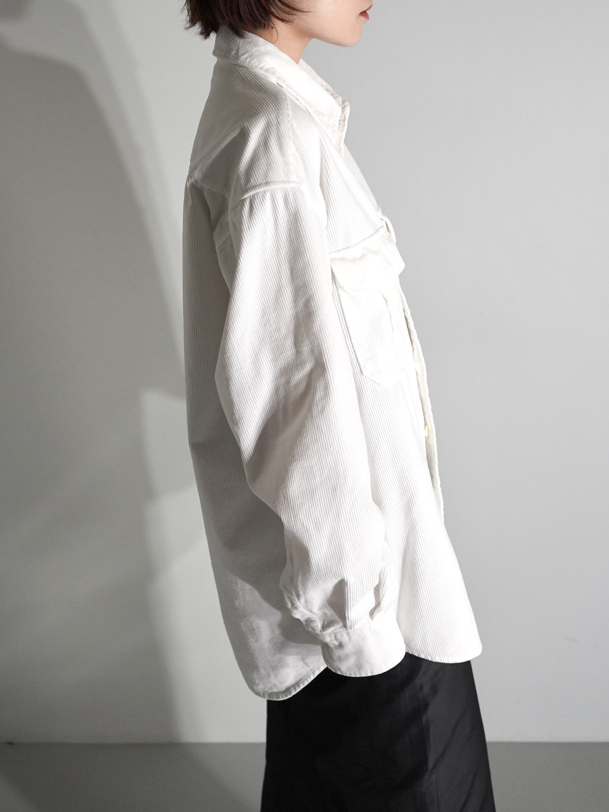 クリーンなホワイトカラーのコーデュロイシャツ