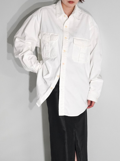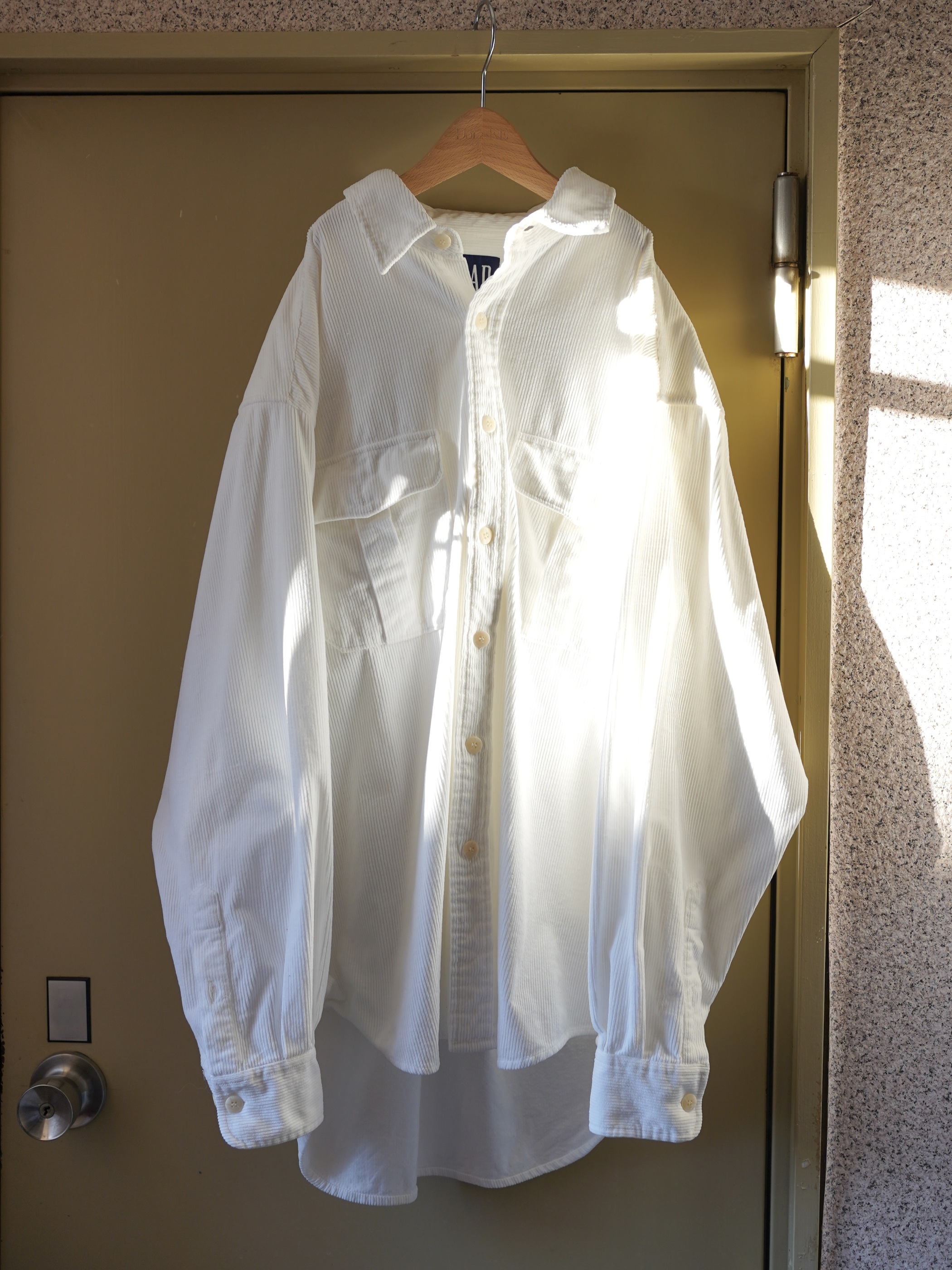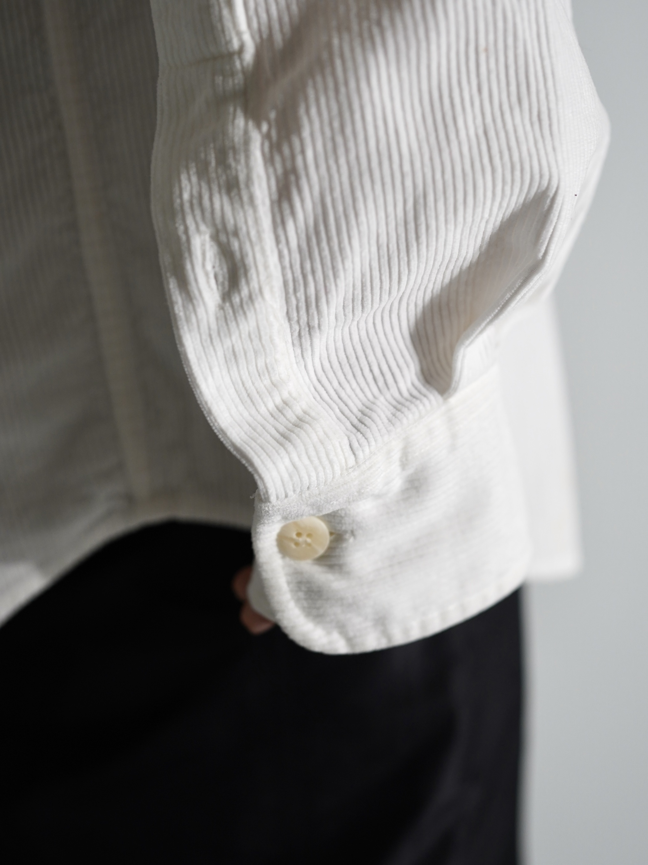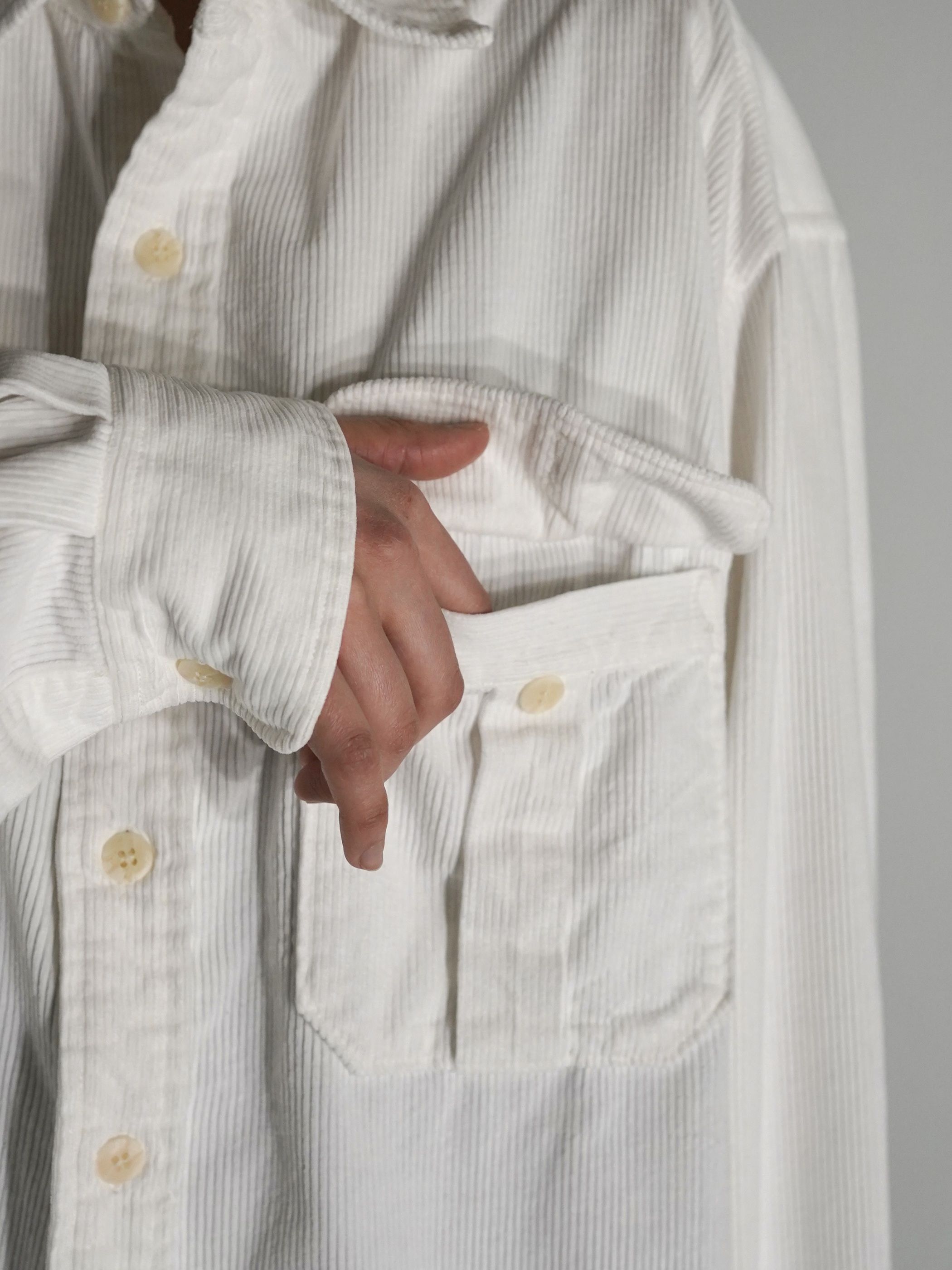 クリーンなホワイトカラーのコーデュロイシャツ