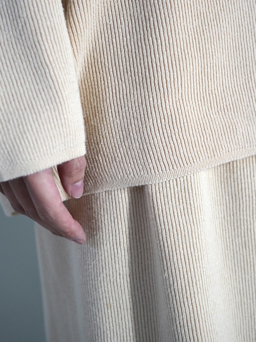 柔らかいコットンを使用したニットソーとミディ丈スカートの2ピース