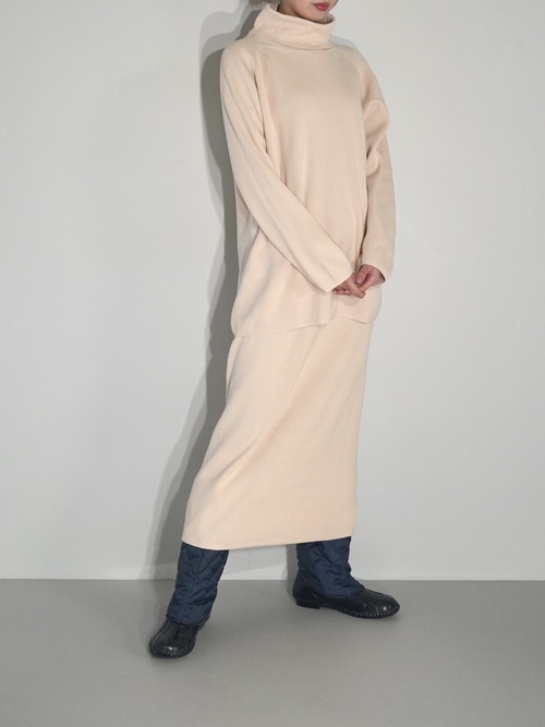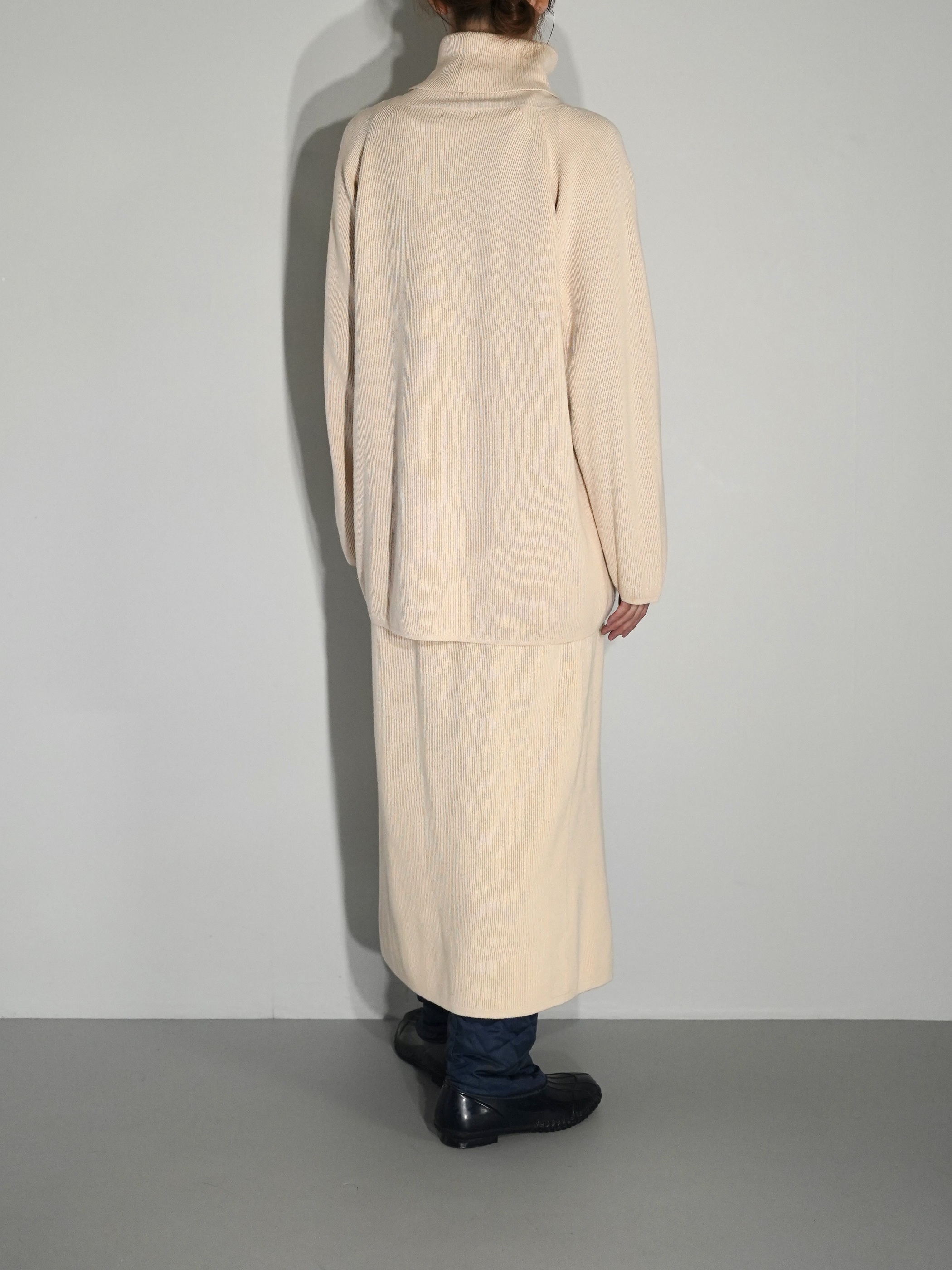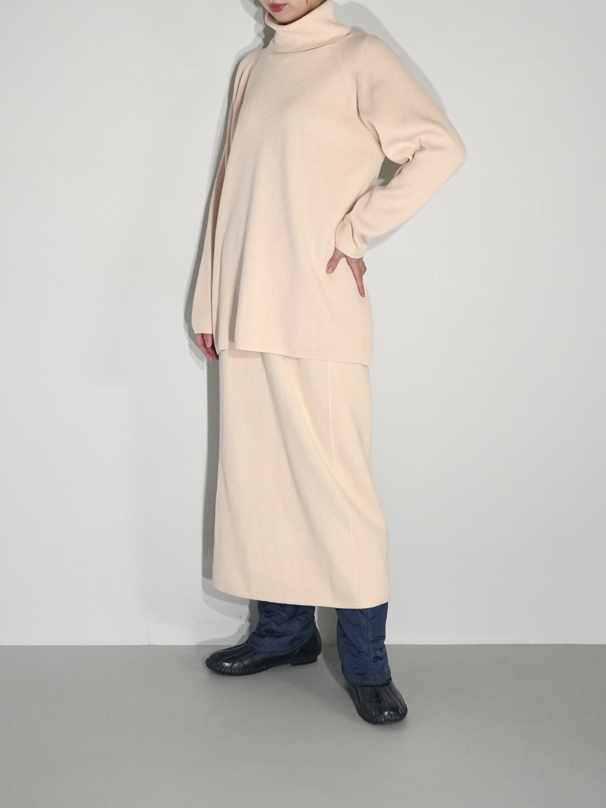 1990s Cotton Rib Turtle Neck Knit Sew & Midi Skirt Set up