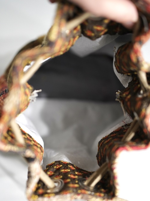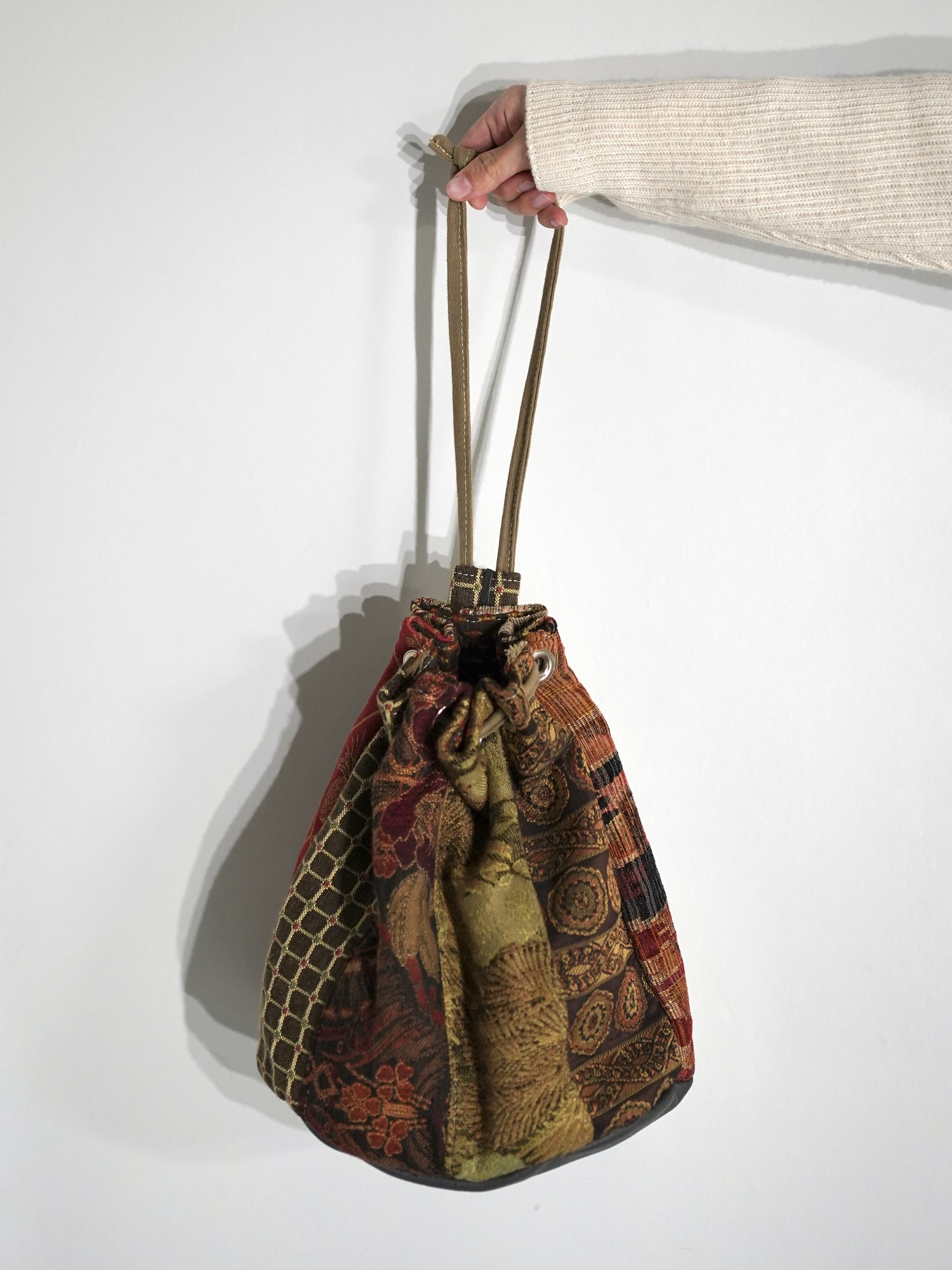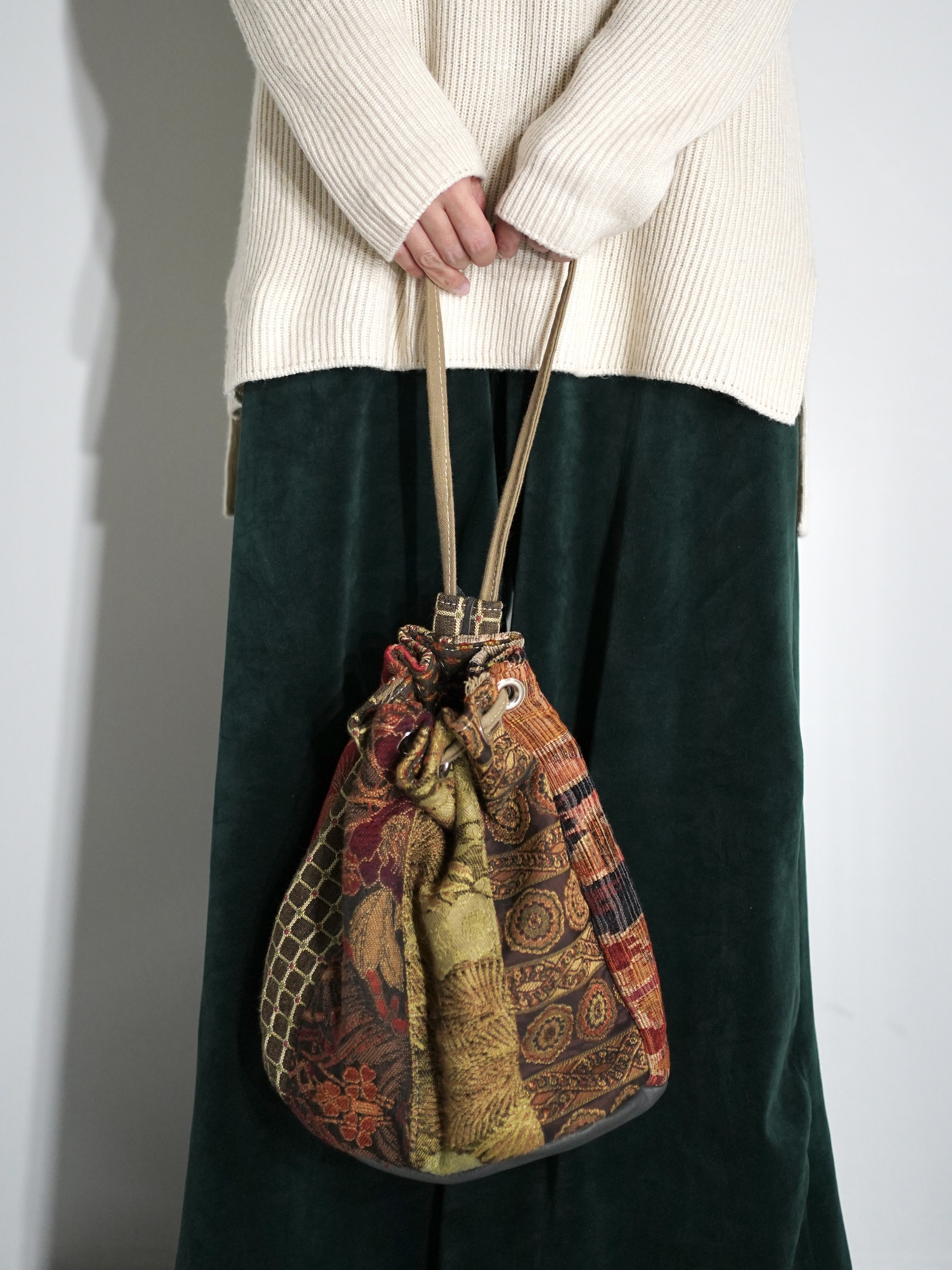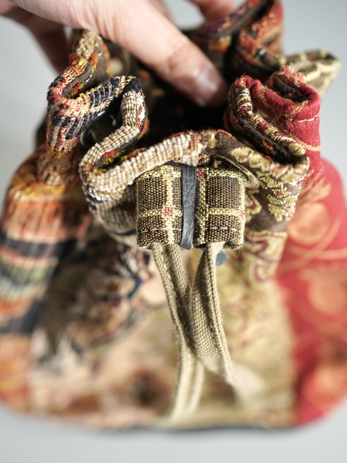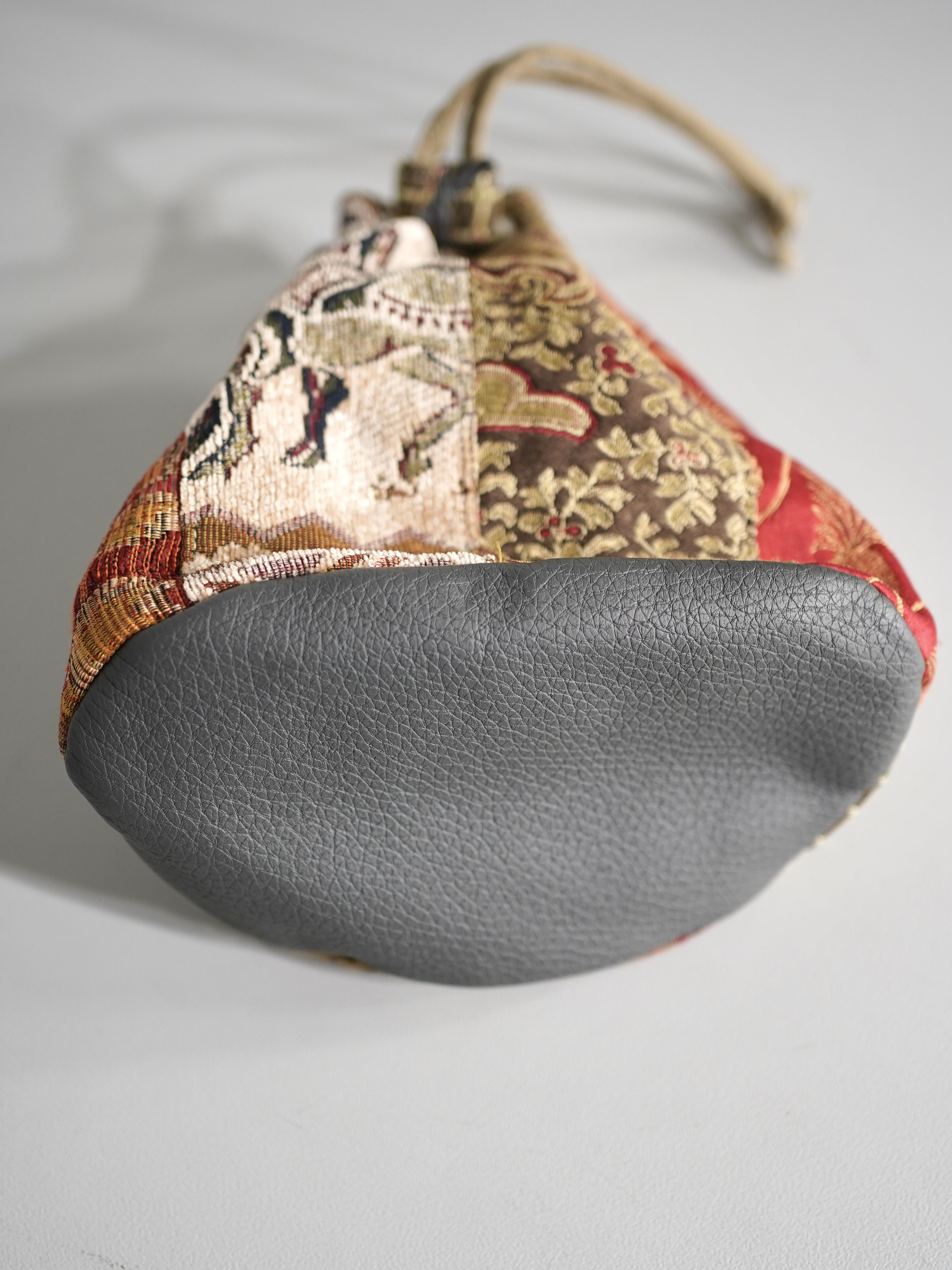 少し古い厚手のゴブラン生地で作られた巾着バック