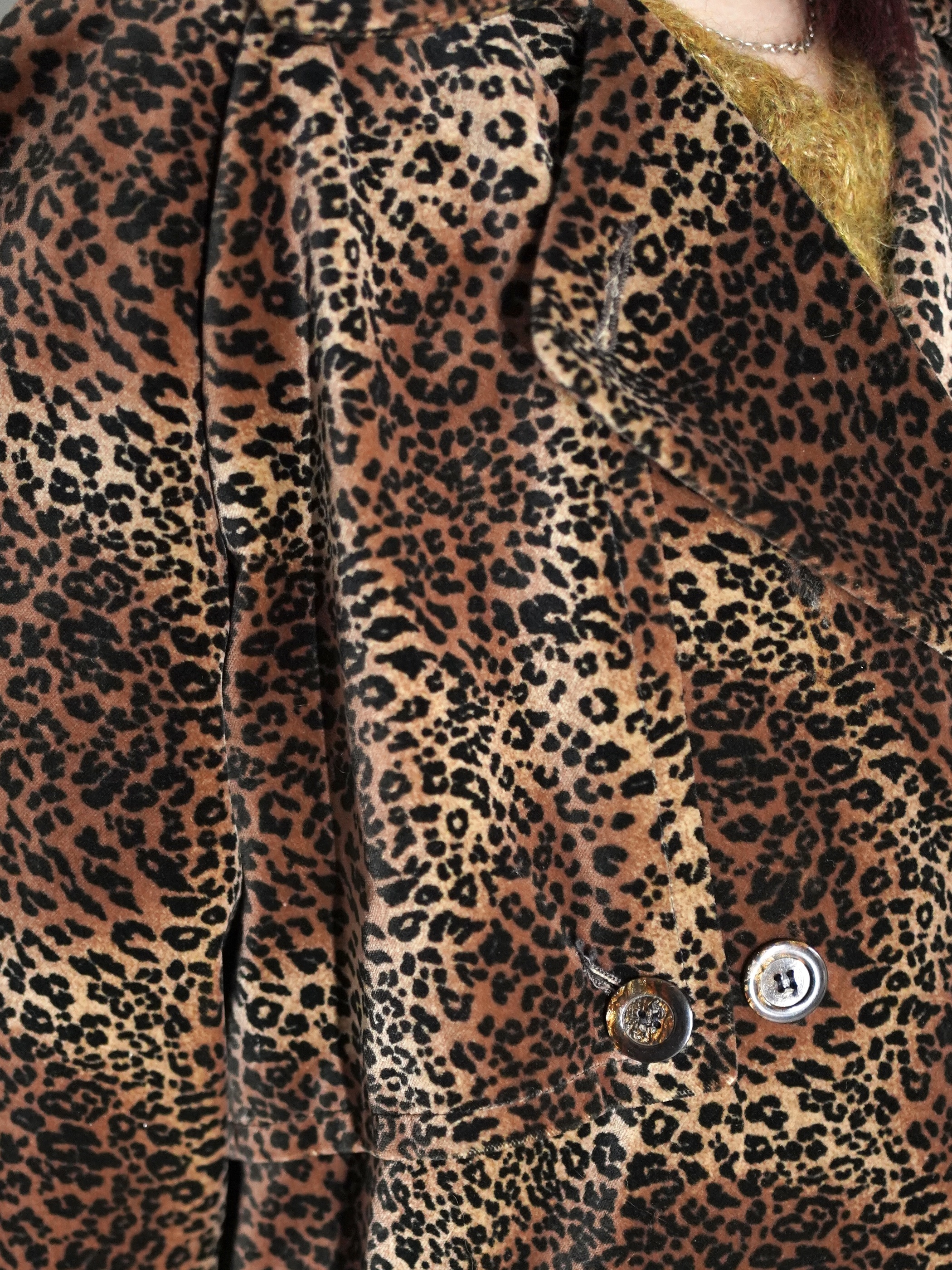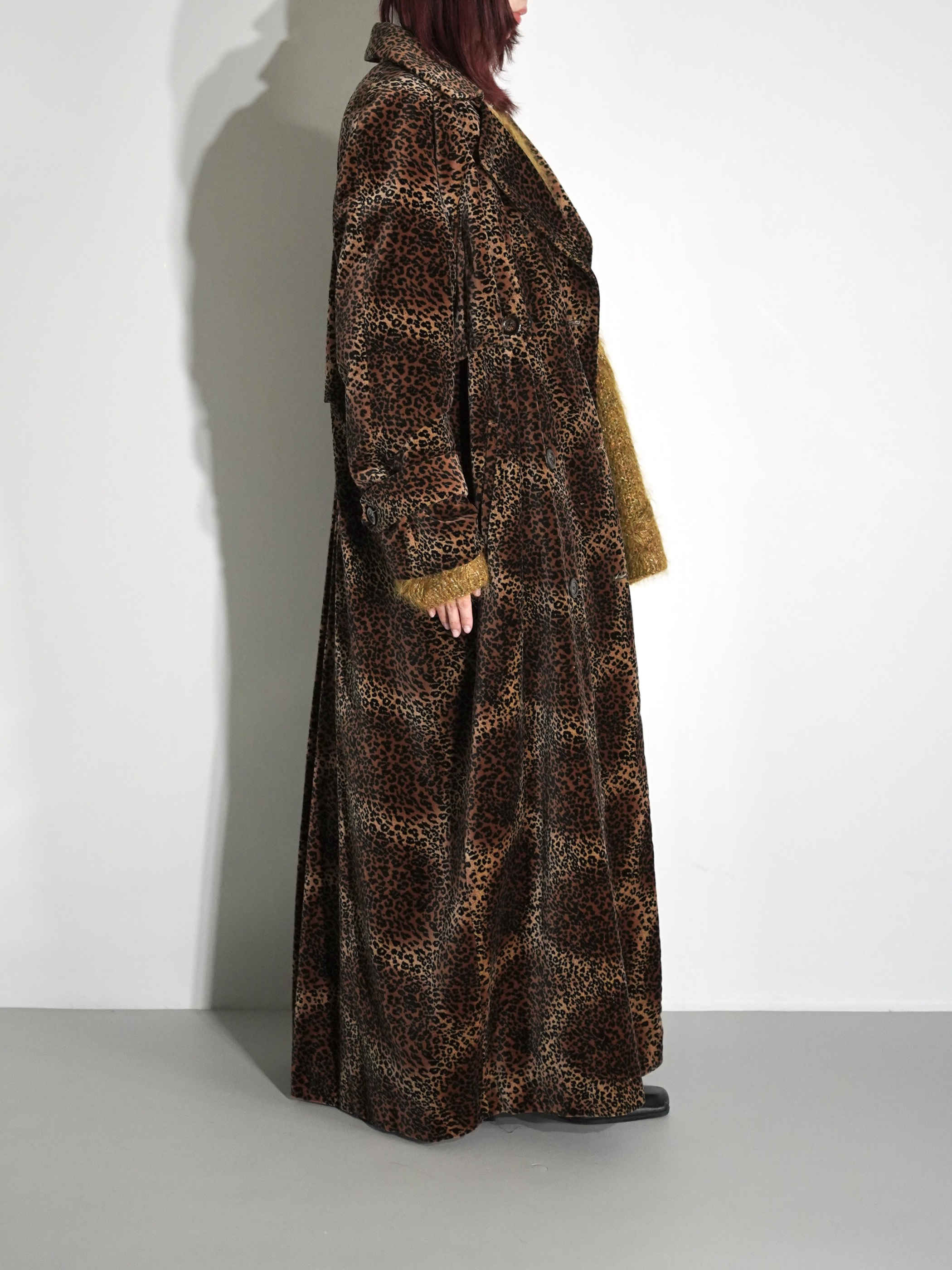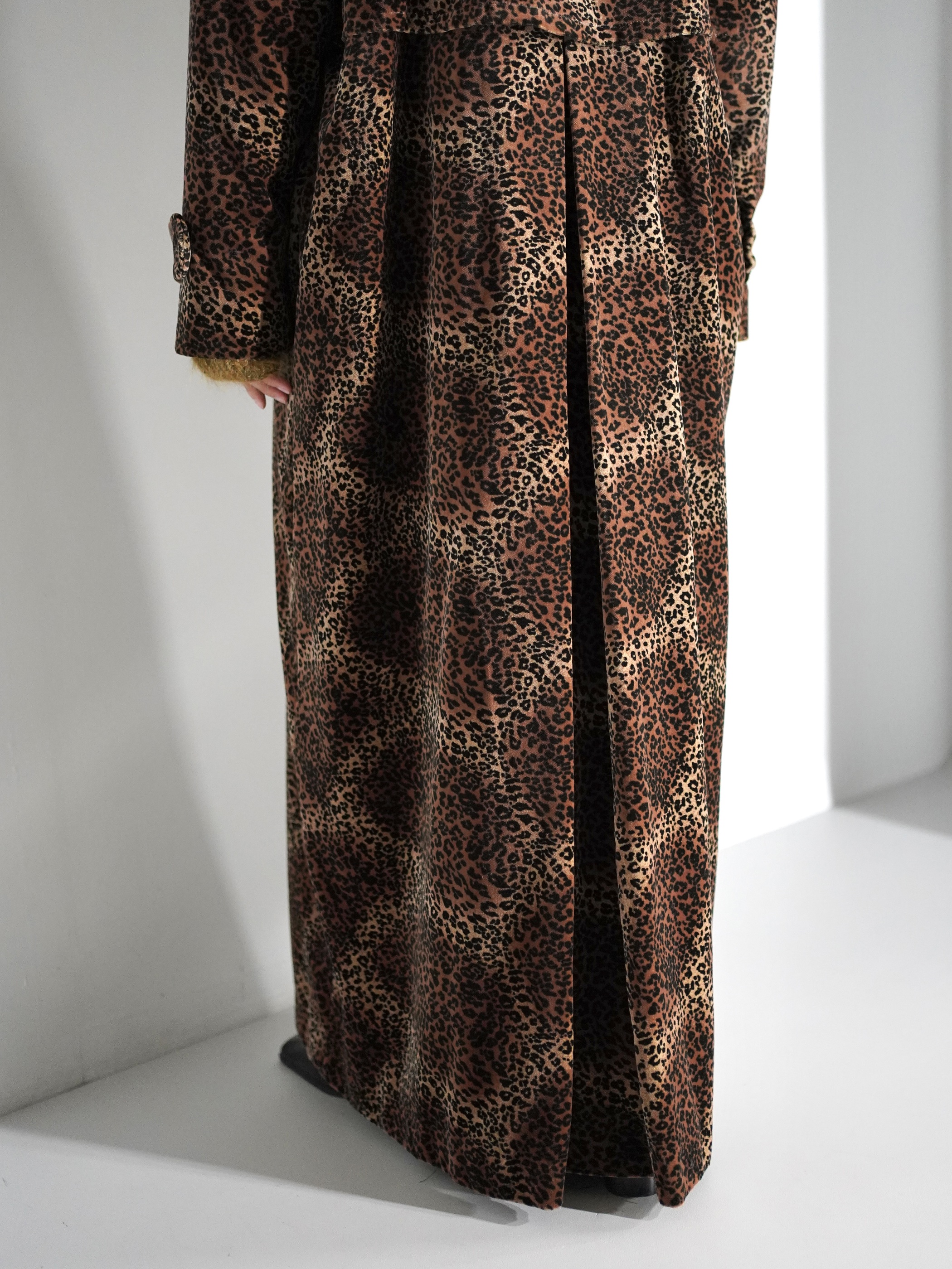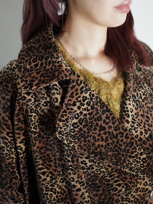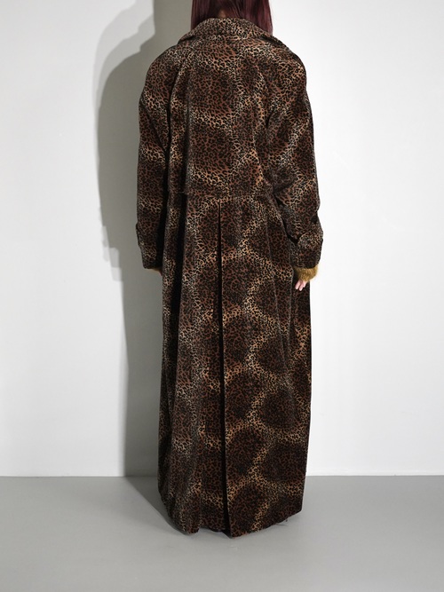 1980-90s Leopard Double Breasted Velour Long Coat