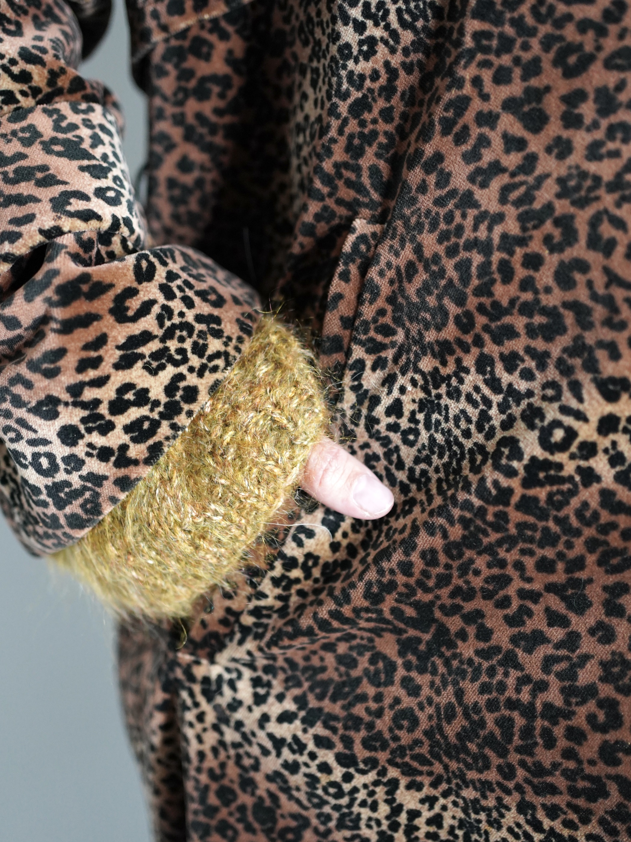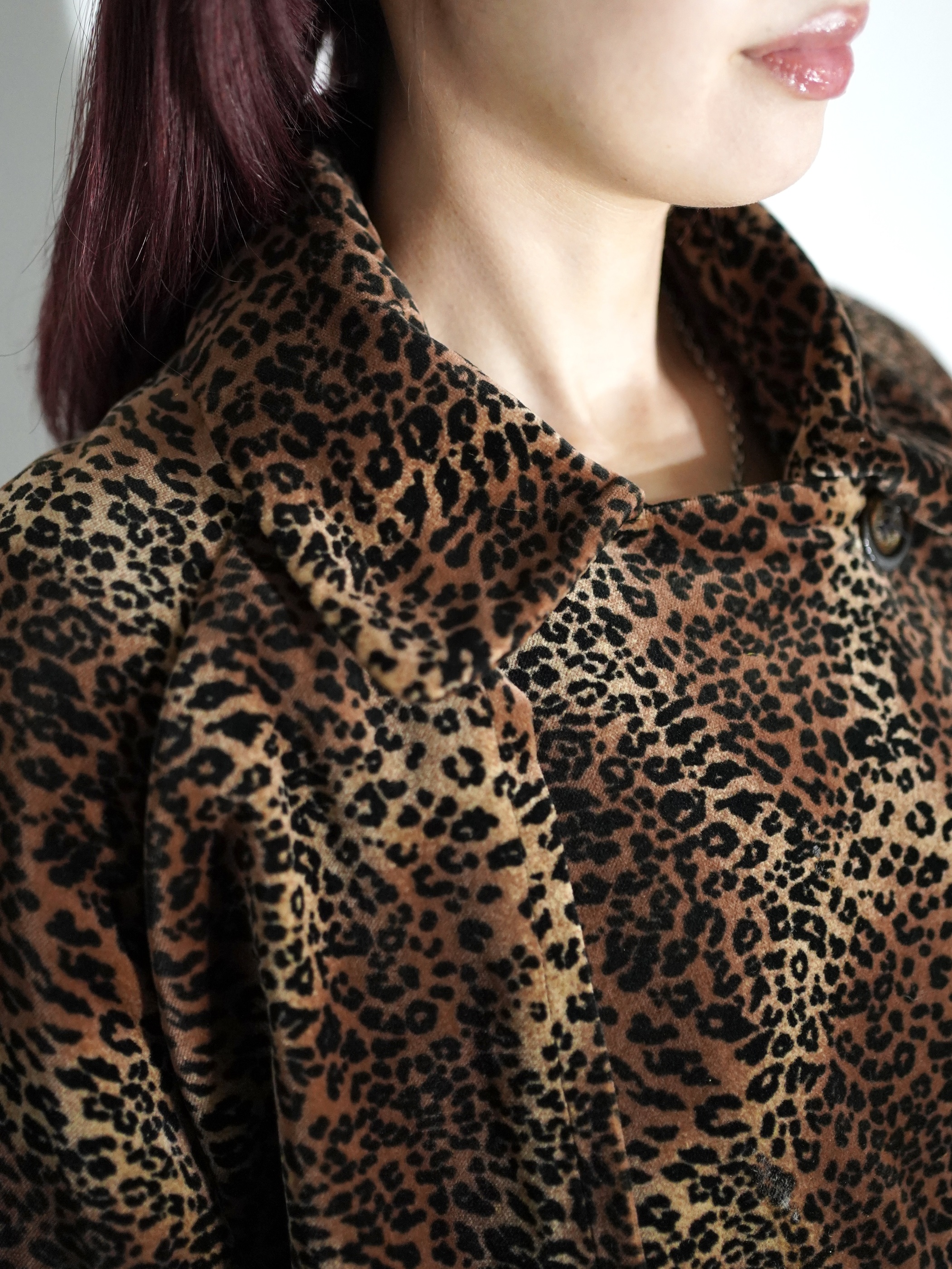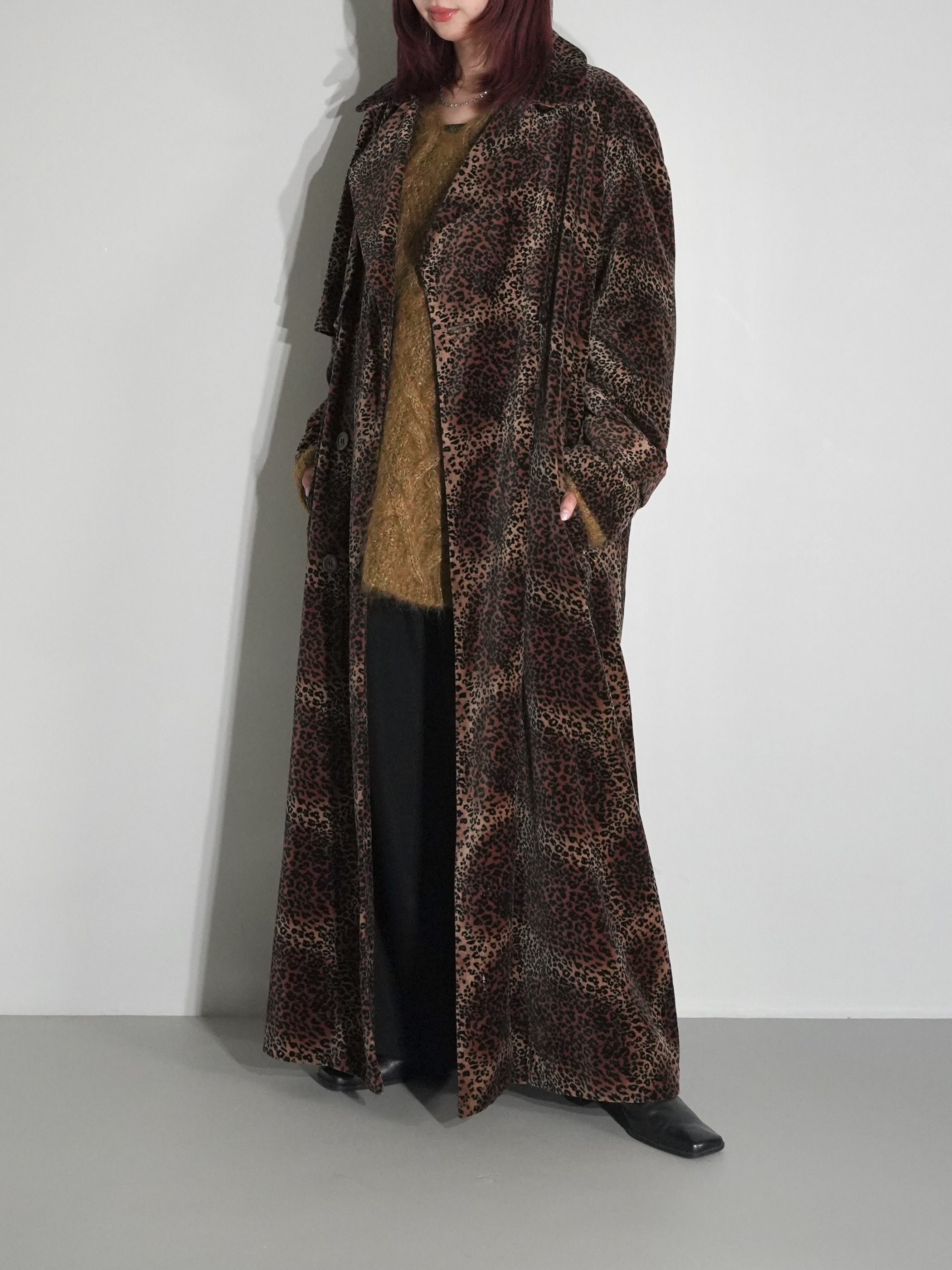 ベロア素材にてラグラン仕様でのヒョウ柄トレンチコートと言うとんでもないジャンル