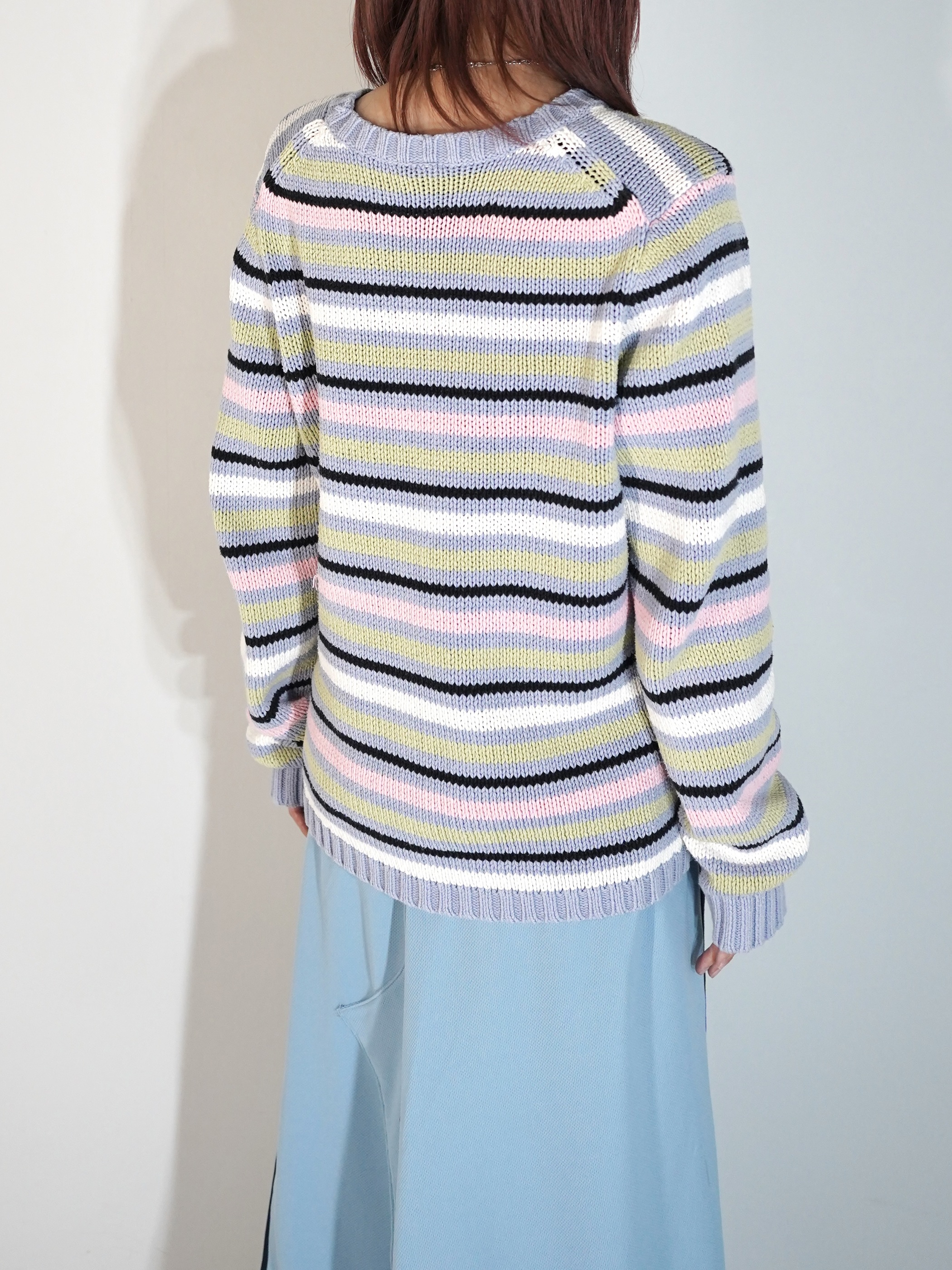 ジャケットのインナーに差し込んでも映えるカラーニットかと