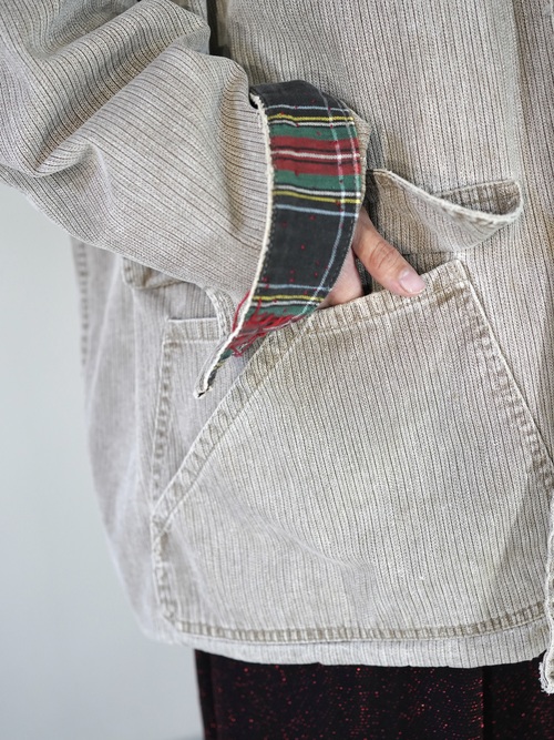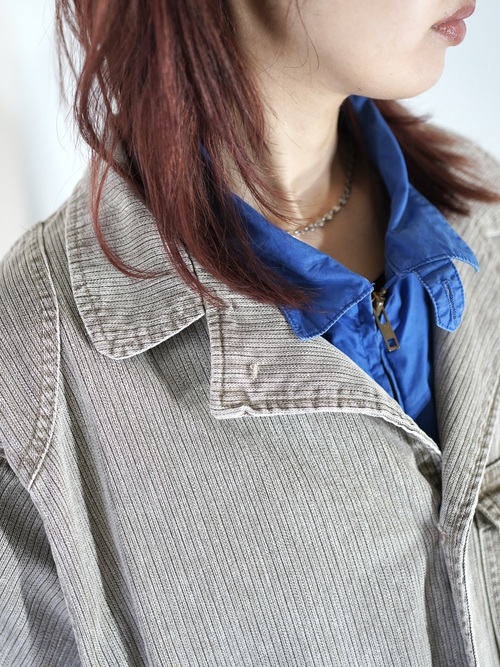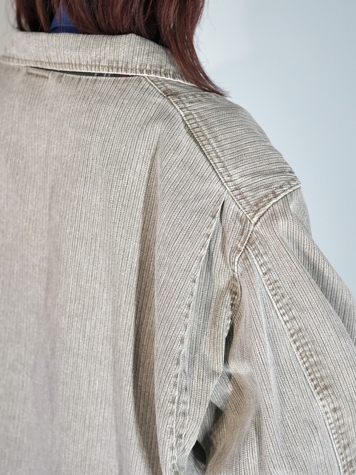 ストライプ調のダック地になり、武骨なワーク感もないスタイル